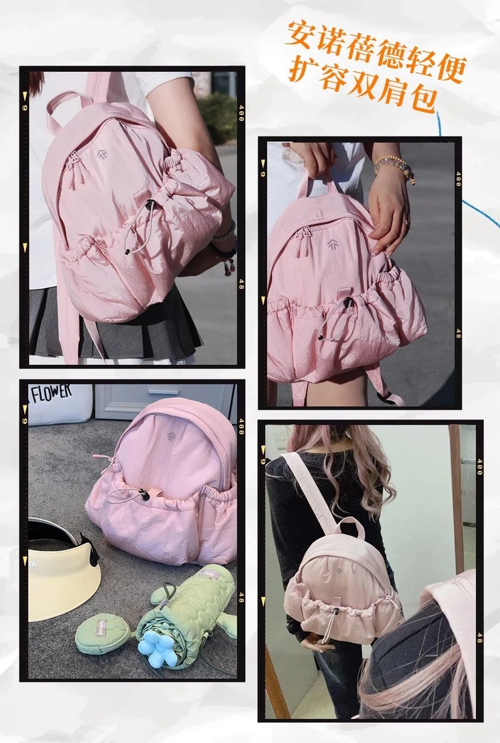 感觉已经完全不是以往印象中那种学生包的形象了,而是变成了女生们很爱背出门的时髦包款,同时还格外实用。