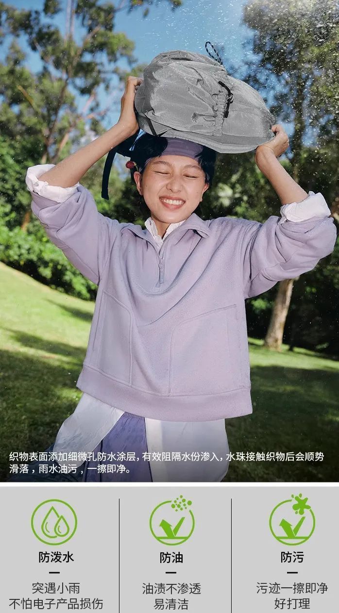偶尔遇到下雨没带伞的天气,也不用担心包包里的东西被淋湿,里面放手机、平板、相机这种电子设备都不怕。