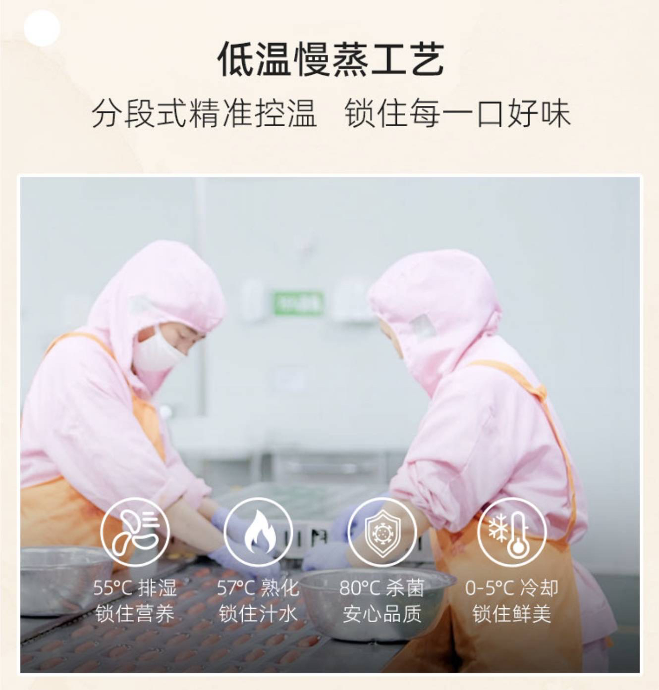 烤肠采用低温慢蒸工艺制作,机械化全自动蒸煮。多段式精准控温层层入味,低温无菌环境真空包装。这一口烤肠,吃的就是美味与安心!!