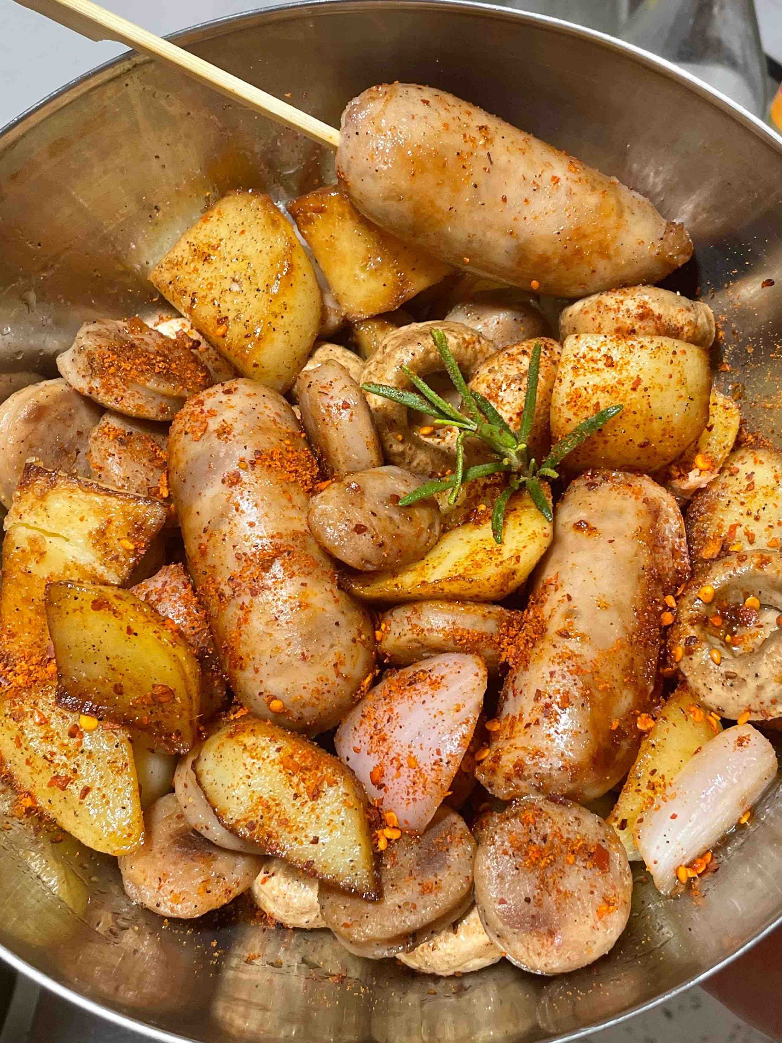肉香中带一点点黑胡椒的辛辣,很有层次感,吃多少都不腻,整体微辣甘鲜~