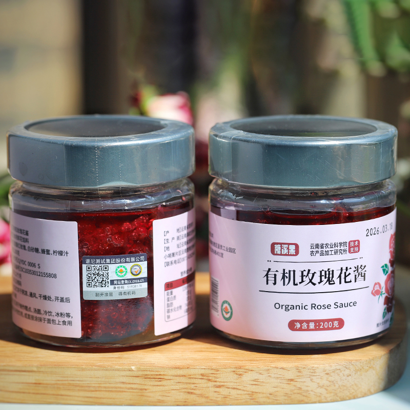 云南【有机玫瑰花酱】精选有机重瓣红玫瑰,自然发酵180天,玫瑰酱汁花香柔和悠长、甜而不腻,不含防腐剂、不添加食用香精、不添加色素,有机认证!