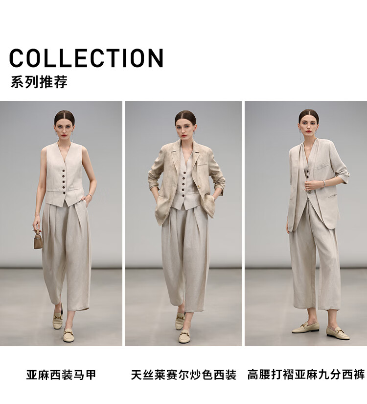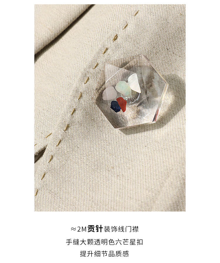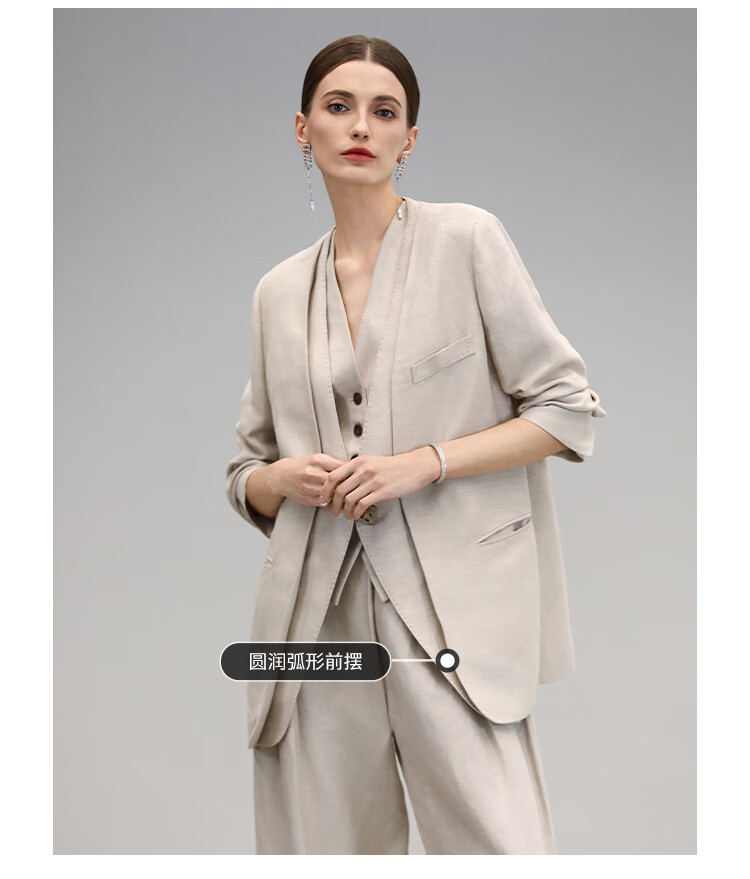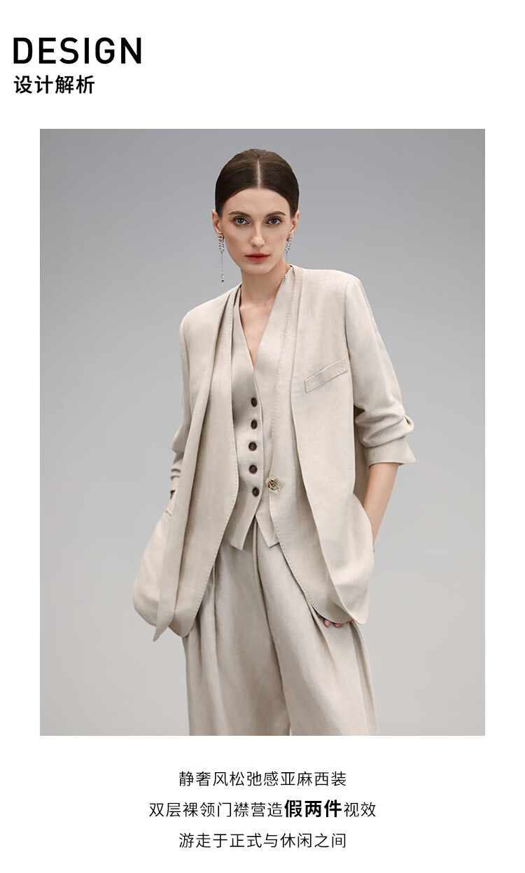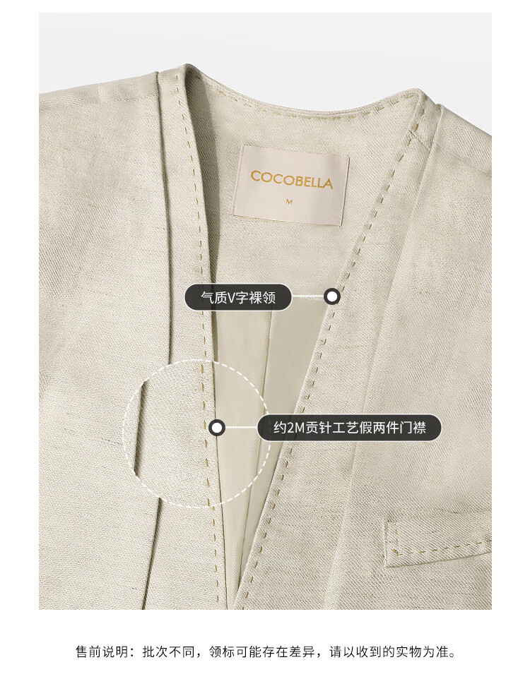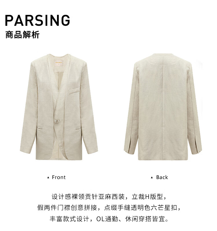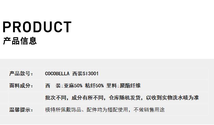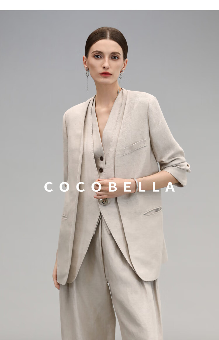 COCOBELLA重工贡针假两件亚麻西装女气质通勤裸领西服SI3001
