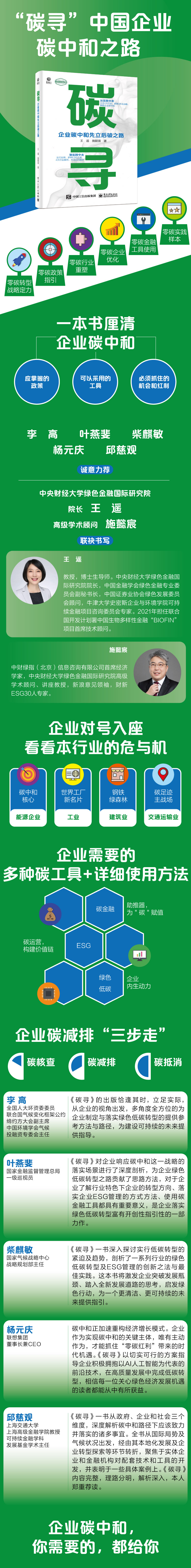 1.详细提供企业碳中和路径2.将企业划分为化石能源、工业、建筑、交通运输四大板块并对各板块可持续发展思路作具体阐述3.提出企业低碳发展"三步走”思路:碳核查、碳减排、碳抵消4.从战略规划、组织运营、风险管控三个层面阐述企业的绿色与ESG 发展路径5.介绍企业视角下的碳交易路径,阐明企业通过碳交易实现碳中和转型的具体机制以企业低碳转型路径与ESG管理方法为核心,借助碳金融工具,帮助企业从基础认知一步步加深对“ 低碳转型”“气候风险”“ESG 管理”的理解。分析四大行业,帮助企业本地发展寻求碳减排“三步走”、资源有效利用、履行社会责任以及高质量企业管理为企业提供实际的执行参考。提供不同行业案例,企业易学易用。本书旨在通过激发企业创新思路,协助重点行业企业转危为机,引导其谋求适宜的发展路径,实现经济高质量增长和可持续价值创造的双赢成果。