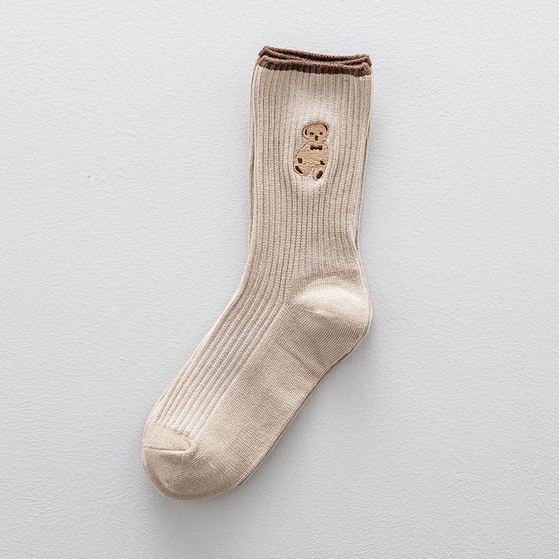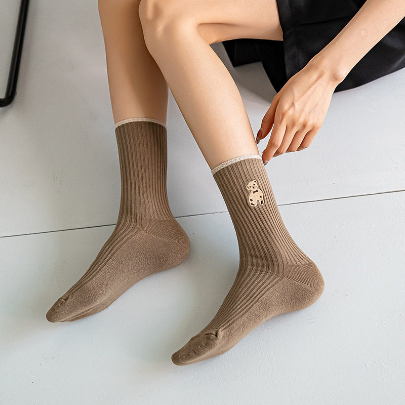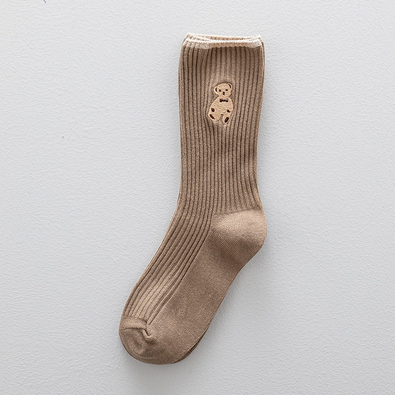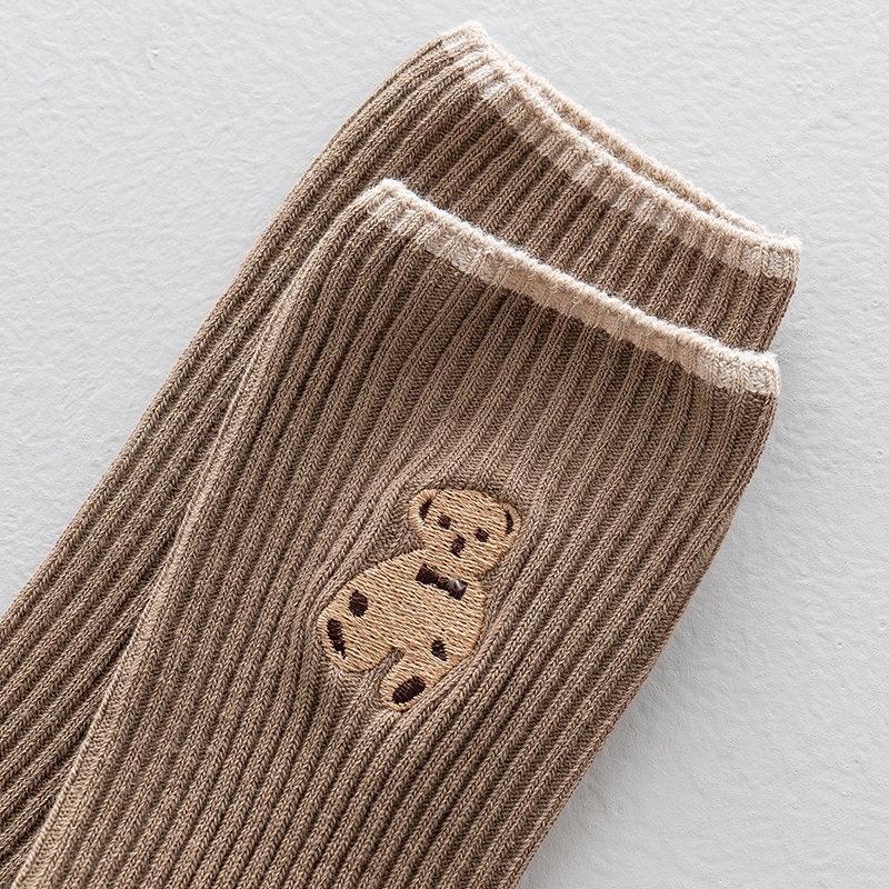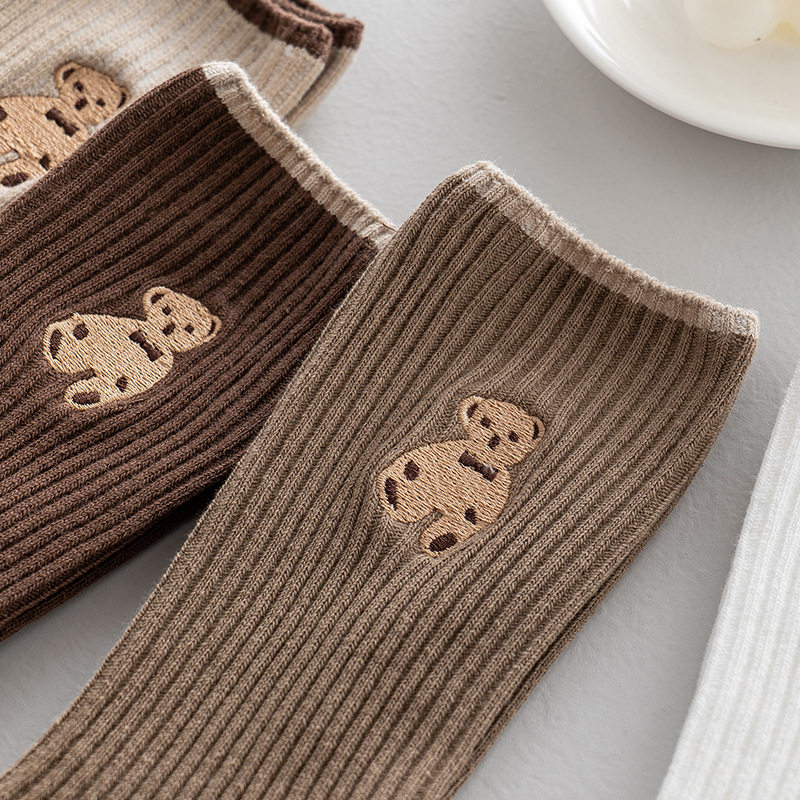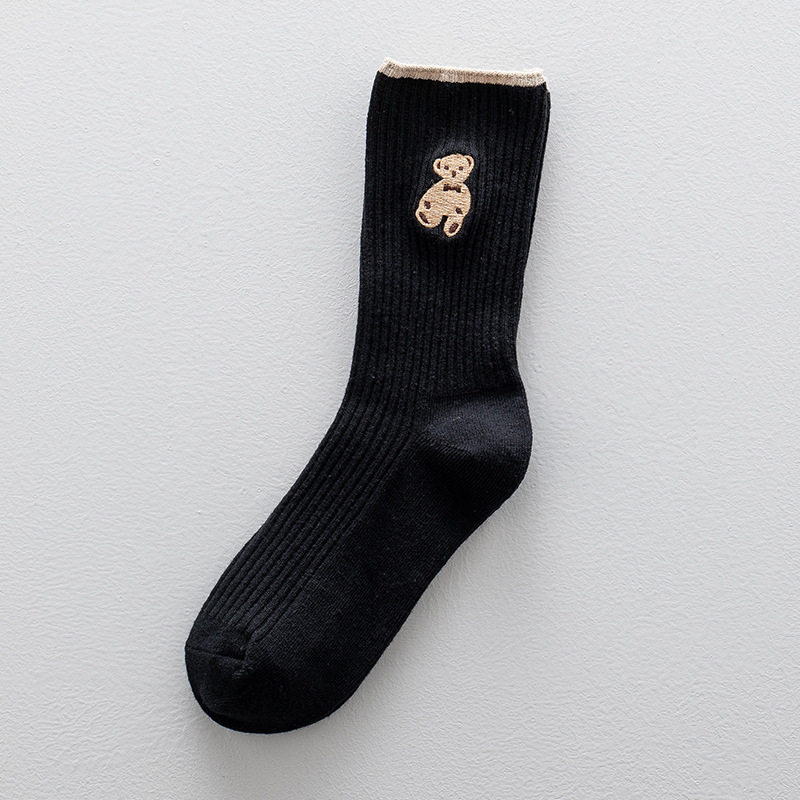 高端刺绣小熊棉袜,刺绣工艺无论从美观还是品质感都要高于印花,成本高。