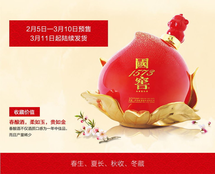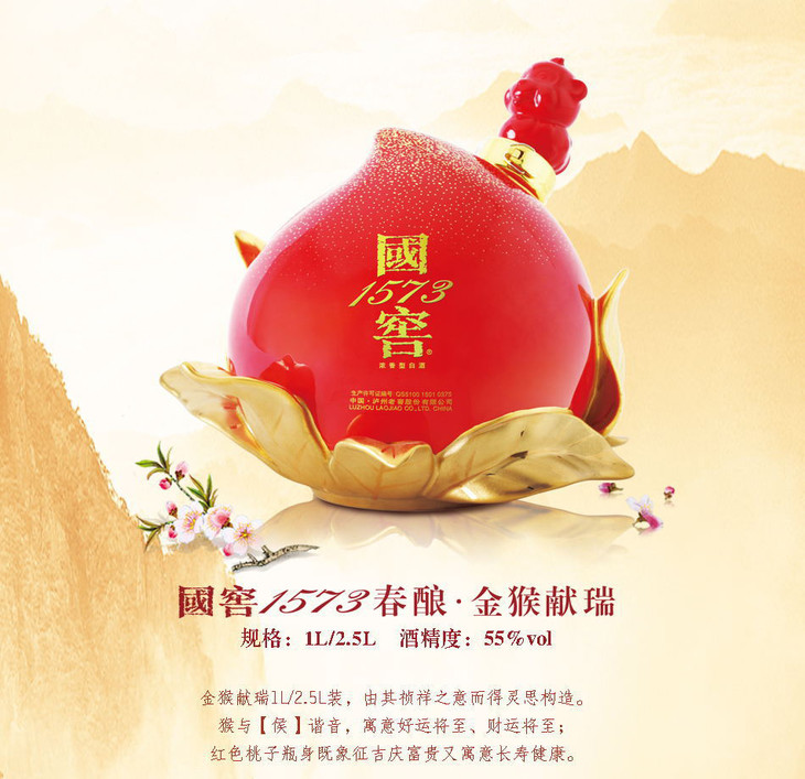 55度 国窖1573 春酿 金猴献瑞 1L 泸州老窖官方旗舰店