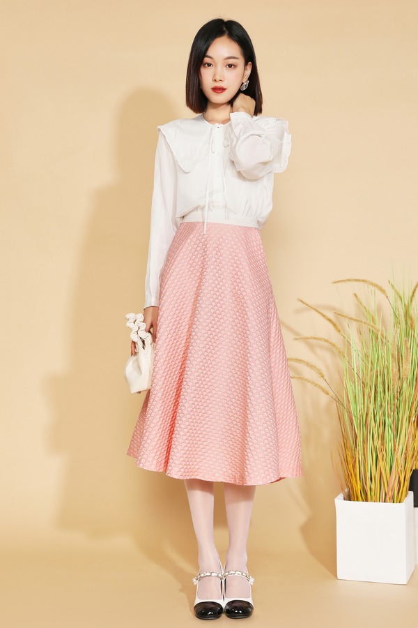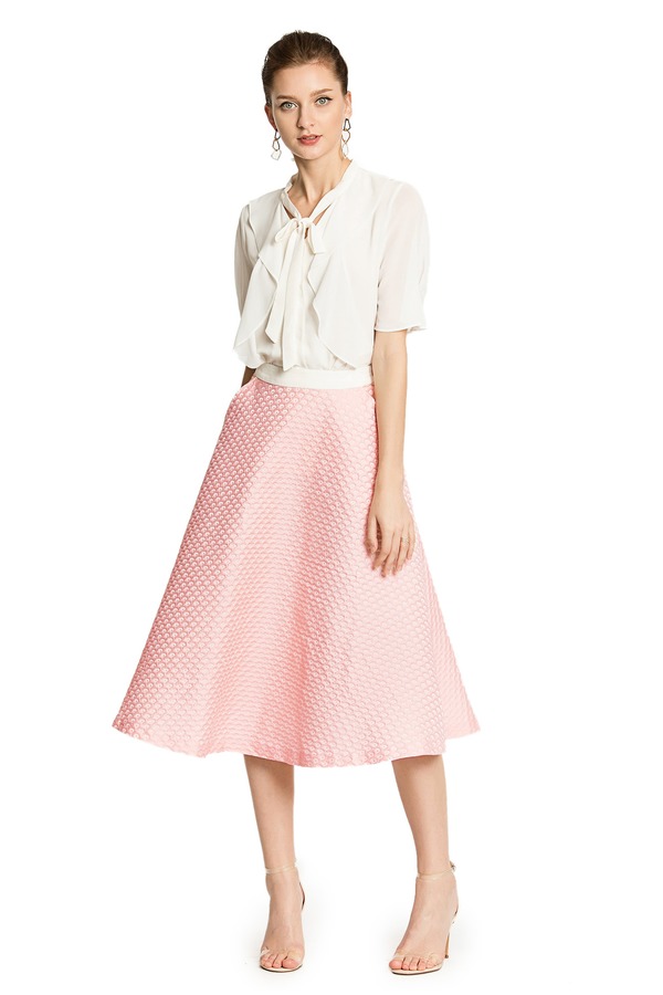 DEL CHEN 粉色肌理感A型半身裙 2534