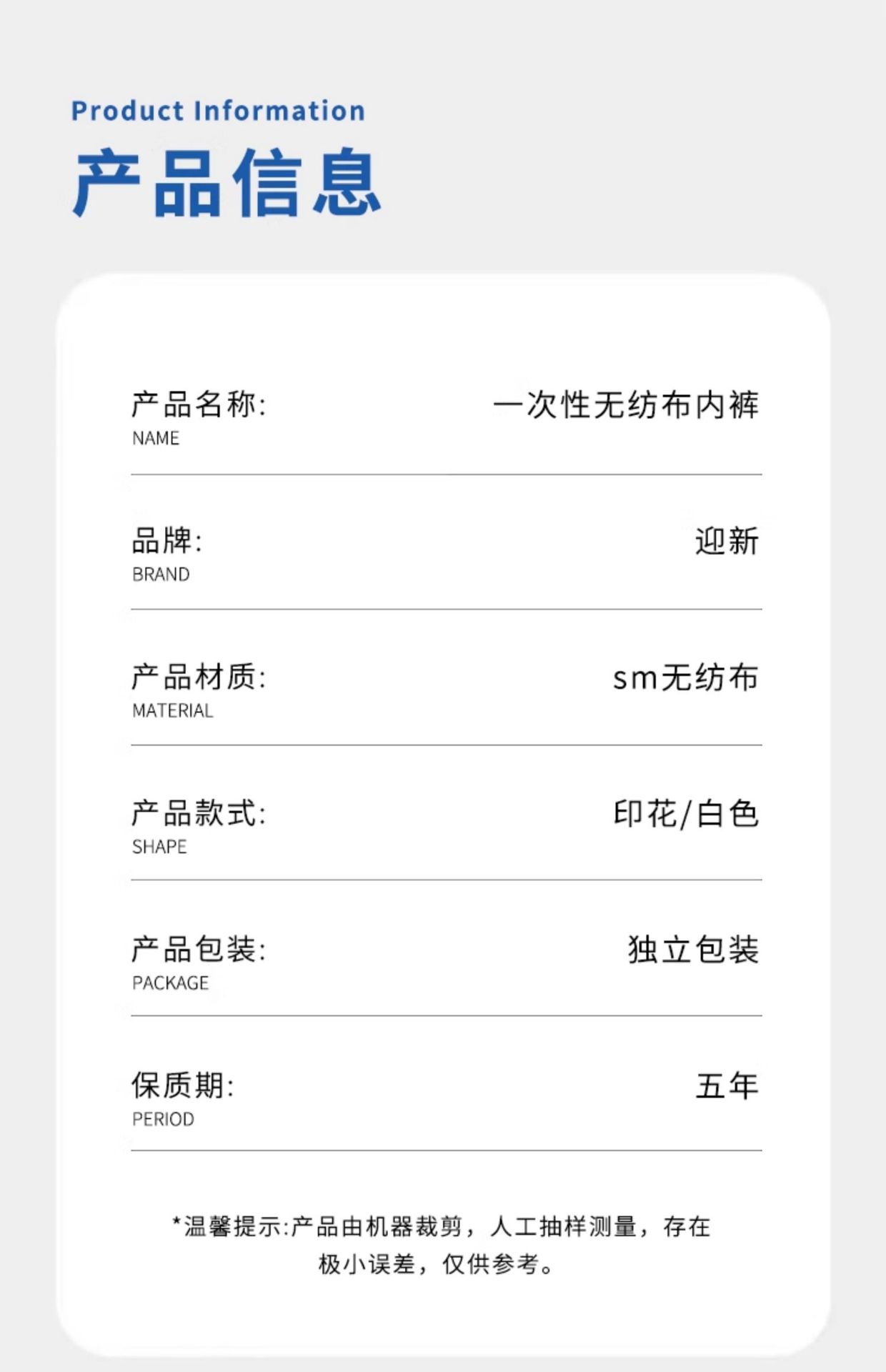 一次性内裤独立包装男女士汗蒸桑拿美容院洗浴熏蒸短裤加大裤头 商品缩略图0 一次性内裤独立包装男女士汗蒸桑拿美容院洗浴熏蒸短裤加大裤头 商品缩略图1 一次性内裤独立包装男女士汗蒸桑拿美容院洗浴熏蒸短裤加大裤头 商品缩略图2 一次性内裤独立包装男女士汗蒸桑拿美容院洗浴熏蒸短裤加大裤头 商品缩略图3 一次性内裤独立包装男女士汗蒸桑拿美容院洗浴熏蒸短裤加大裤头 商品缩略图4