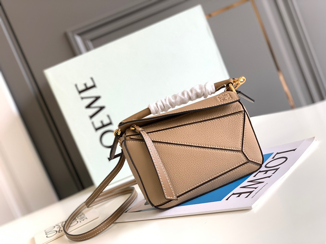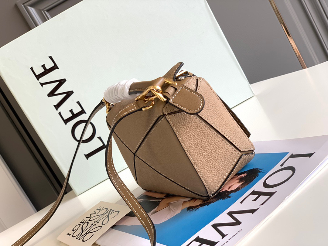 Loe*we🔥爆款Puzzle mini出货🎉迷你几何采用进口珠地小牛皮运用了独特剪裁 搭配平纹拼接而成其独特荔枝皮纹路👿人字纹图案棉帆布衬里 全钢原厂五金配件搭而成⚡️包身的创新长方形状 舒适的触感和实用性 超实用的体积 简直不可抗拒,女神必备💥💥💥size:18*12.5*8cm 型号:061838