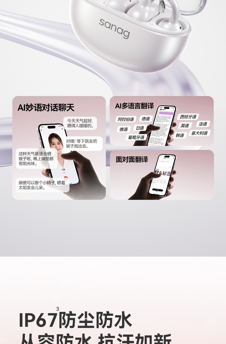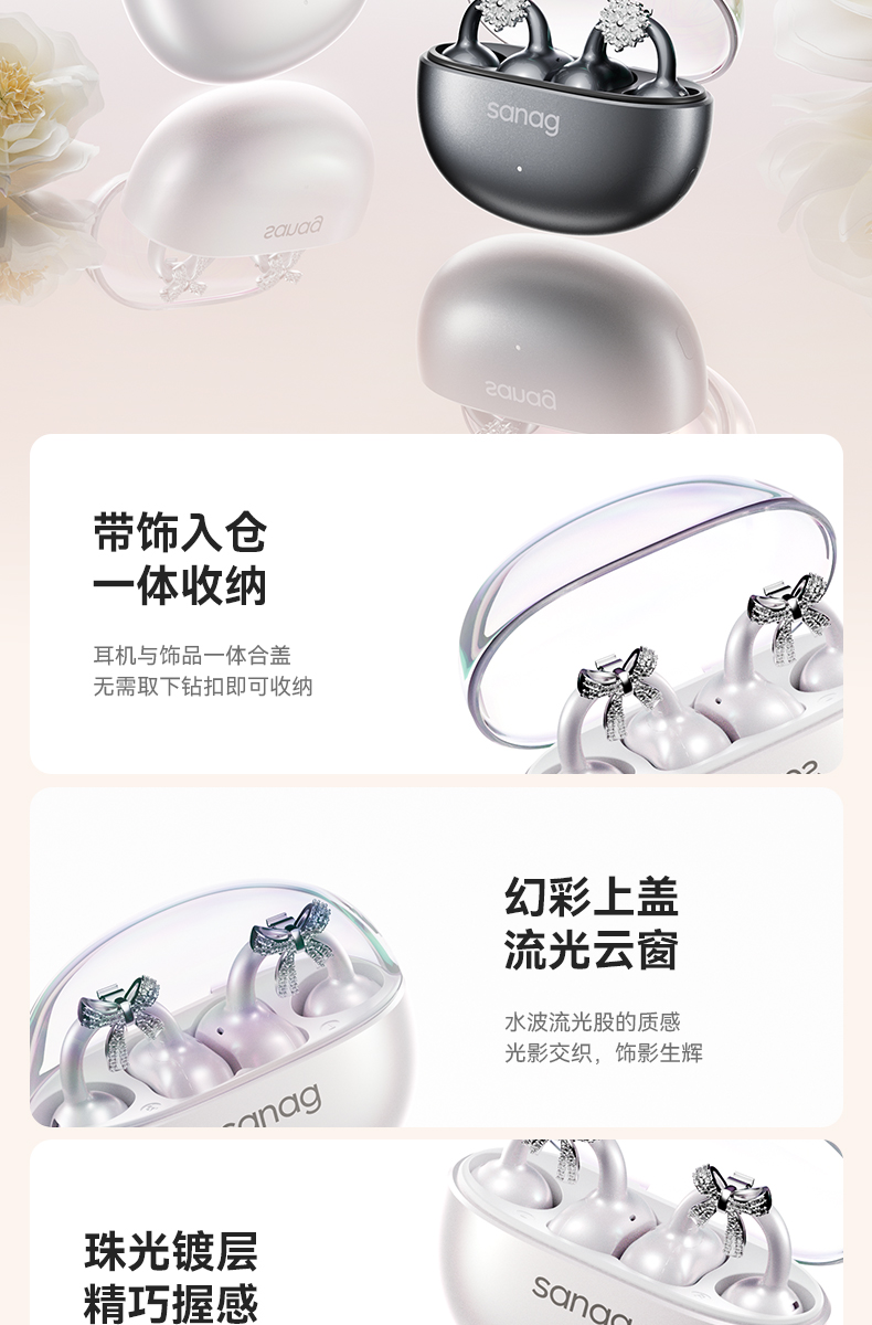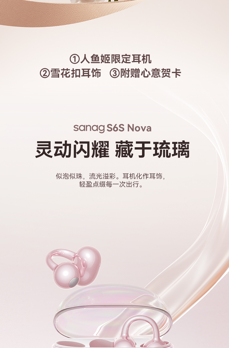 塞那S6SNova人鱼姬蓝牙耳机耳夹式2025新款无线Ai骨传导开放运动耳机