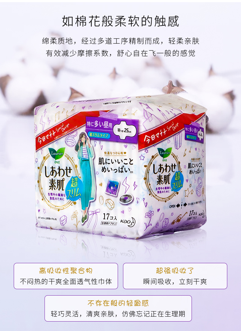 KJ 日本进口花王乐而雅系列 卫生巾快速吸收柔软日用姨妈巾 25cm*17片