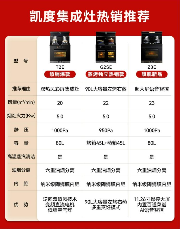 凯度G2SE集成灶家用蒸烤箱一体灶变频左烤右蒸燃气灶