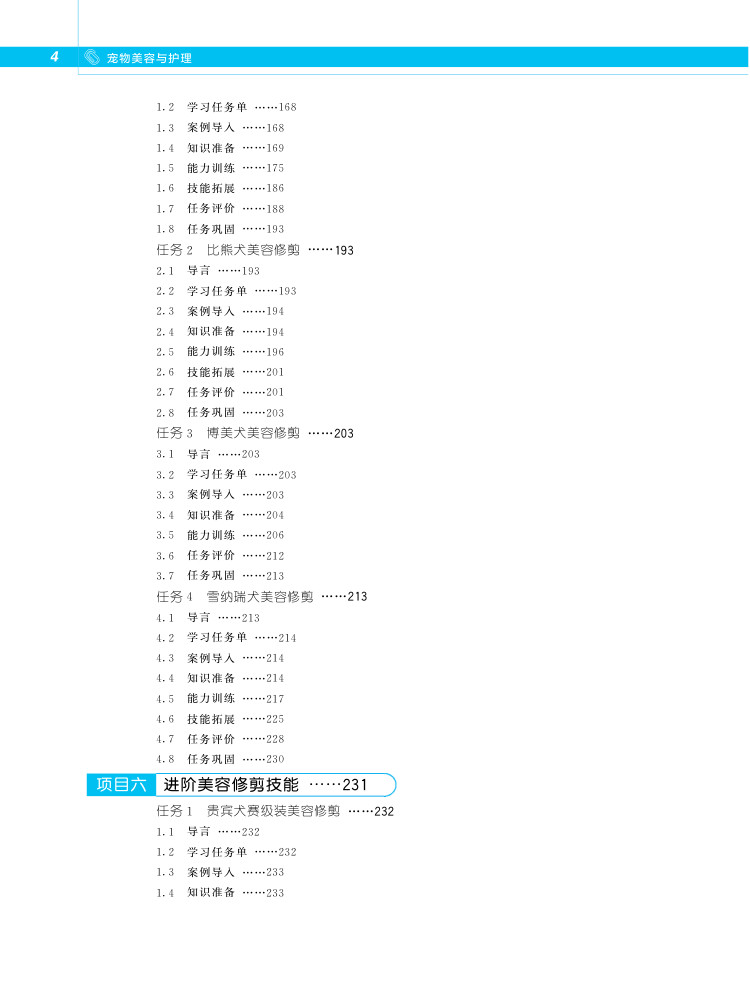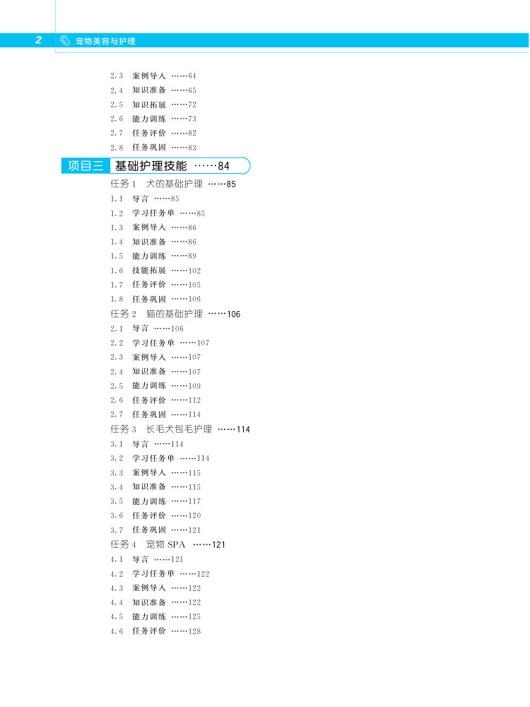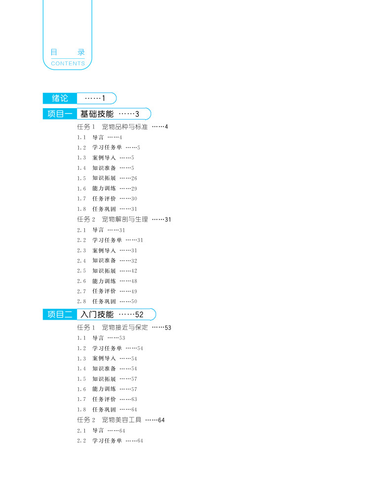 本教材为畜牧类专业及宠物类专业的专业基础课教材,本书是沧州职业技术学院及近10余所院校相关教师共同教学科研的结晶。全书分为模块一宠物美容基础知识、模块二宠物基础知识、模块三走近宠物美容、模块四基础护理、模块五犬的造型修剪、模块六犬的特殊美容、模块七猫的基础护理、模块八美容工艺品制作、模块九宠物店的选址与经营。全书以实际生产过程为教学内容,采用项目任务及相关学习情境,针对性较强,具有一定的实际指导意义。全书采用融合媒体编写形式,全书配备数字资源、视频微课等。有利于师生教与学。本书作者团队属多个省市区,具有广泛的适应性,教材内容结合多地多域,普适性较强。