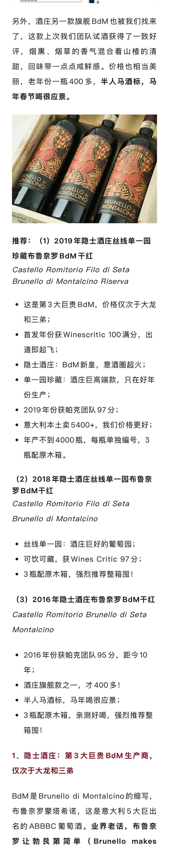 意大利托斯卡纳2016年隐士酒庄布鲁奈罗桑娇维塞干红