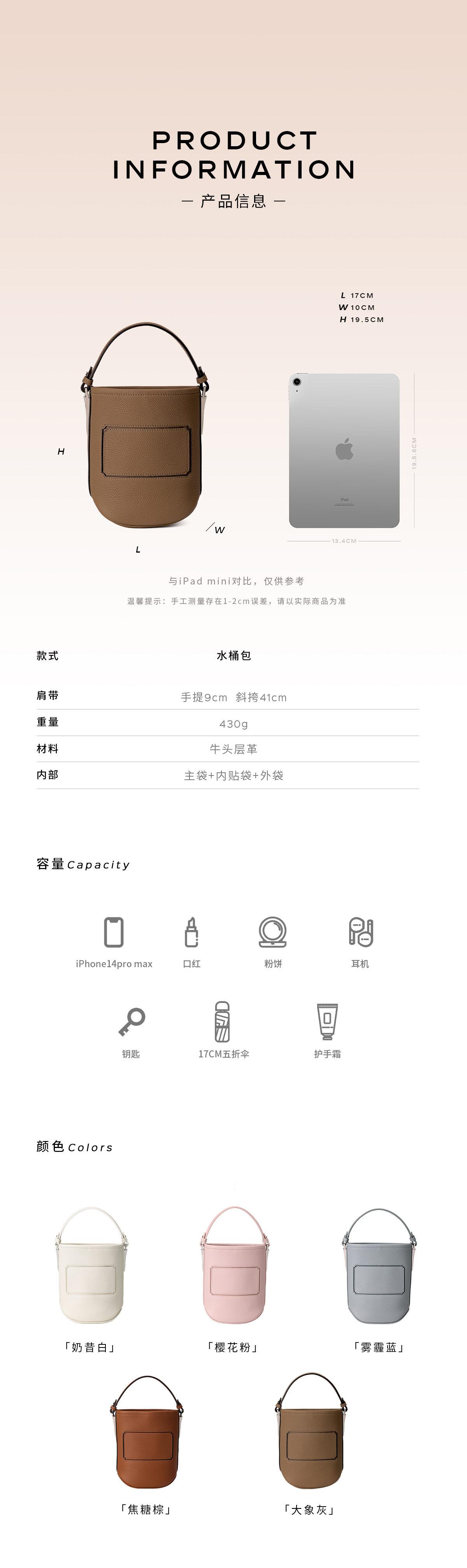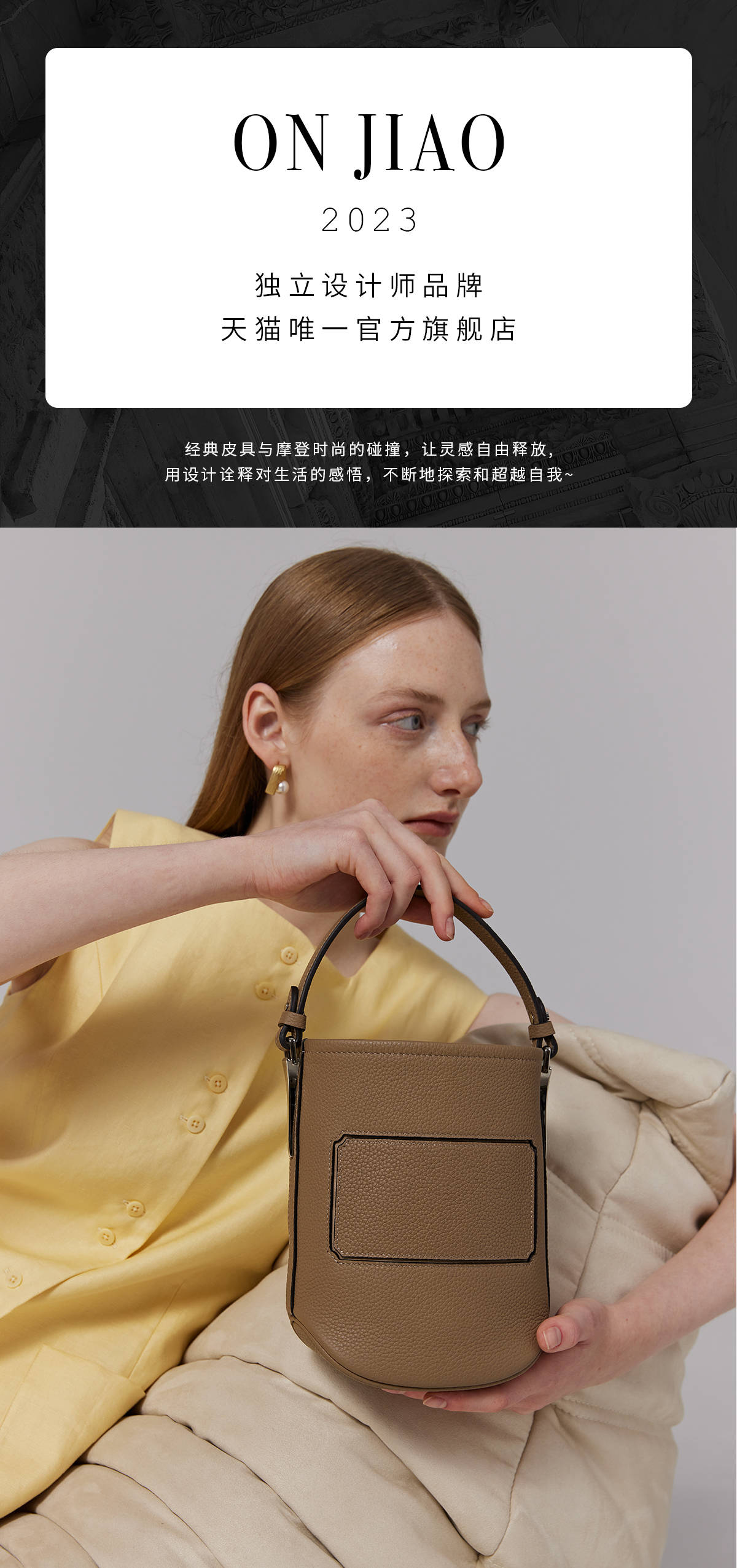 【柔见定制专属】ON JIAO头层牛皮小号手提水桶包女小众设计单肩包斜挎包包