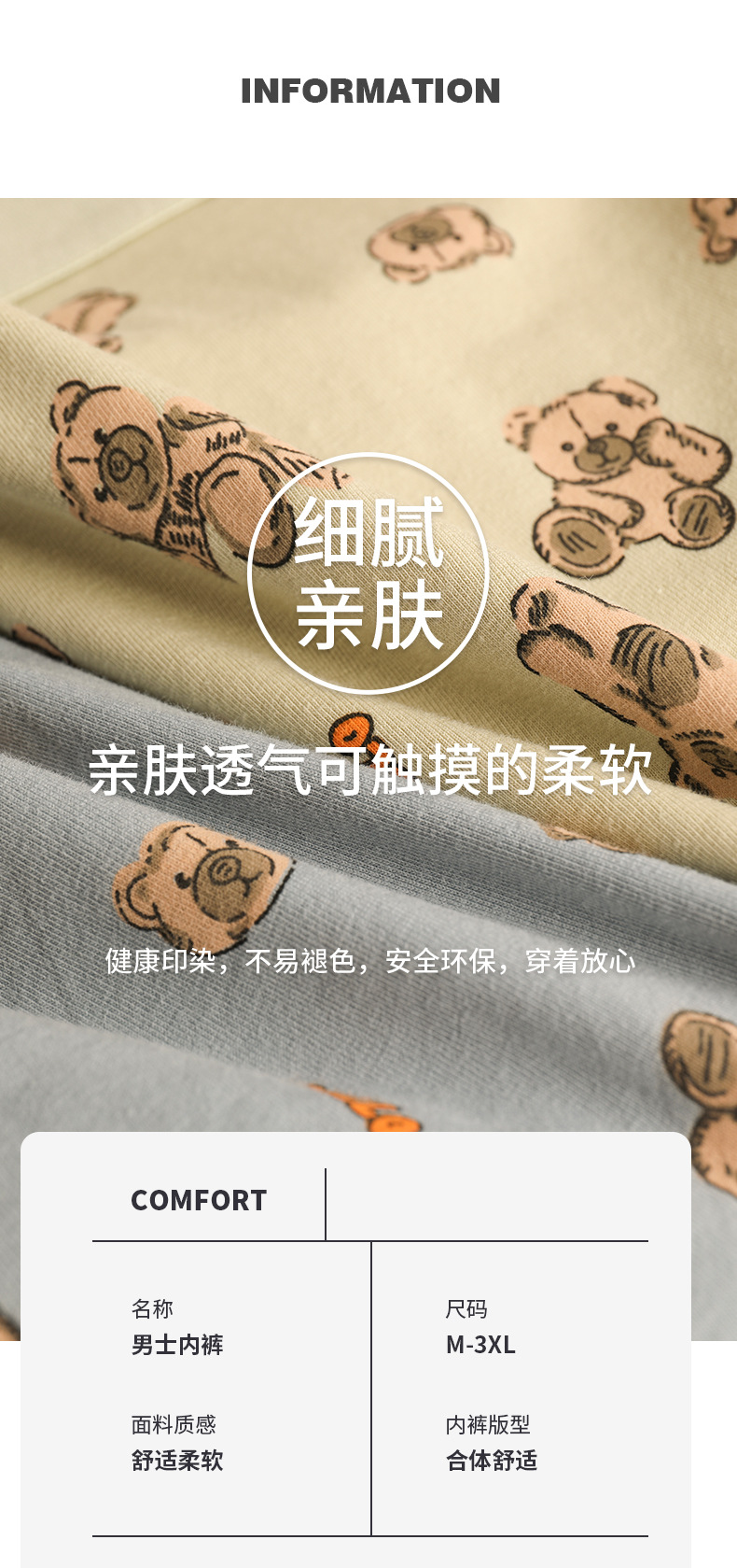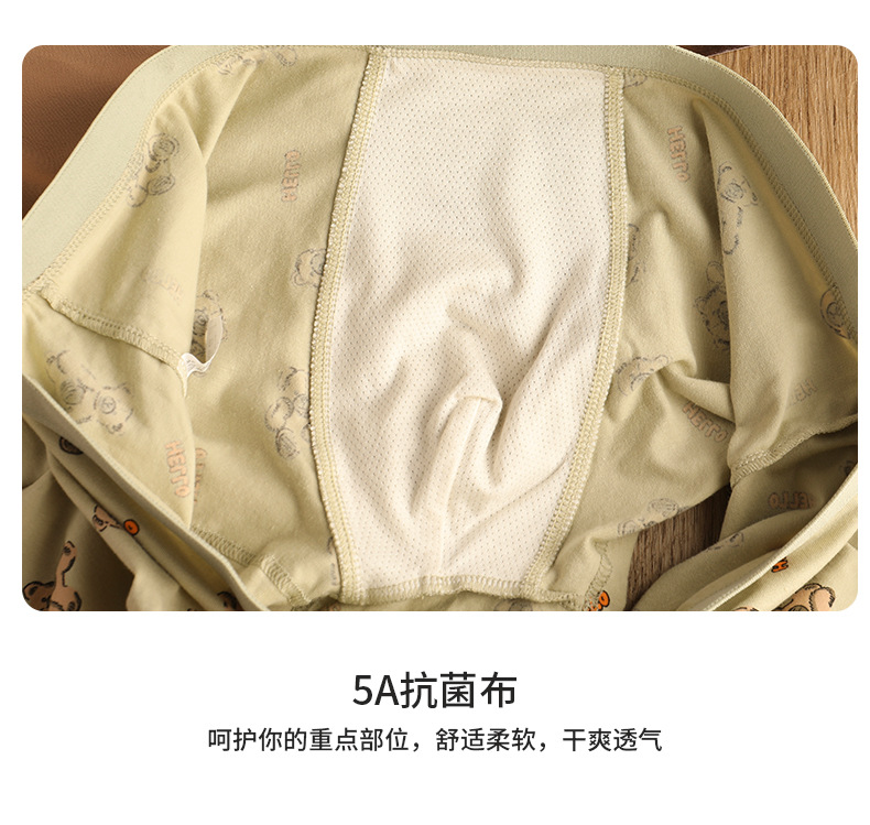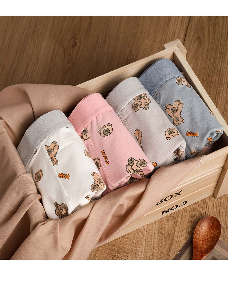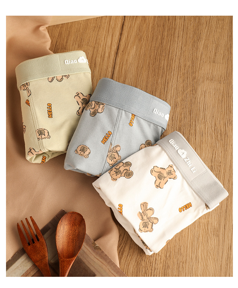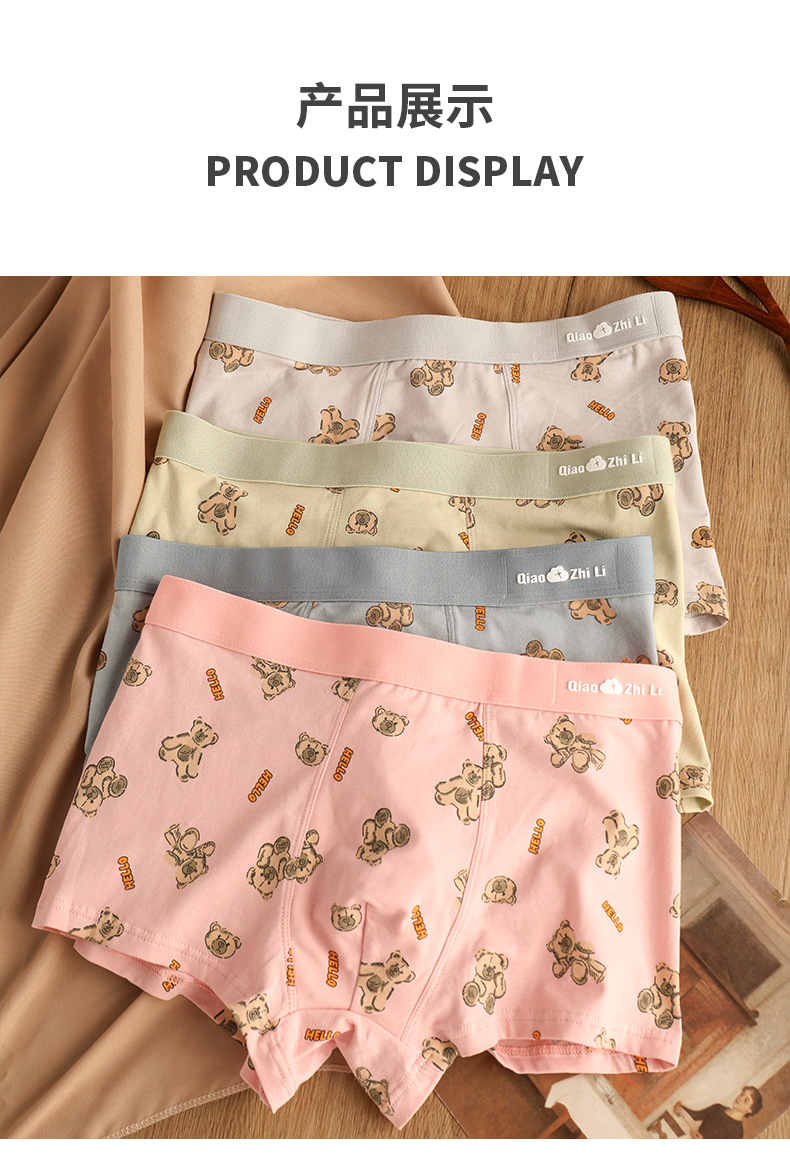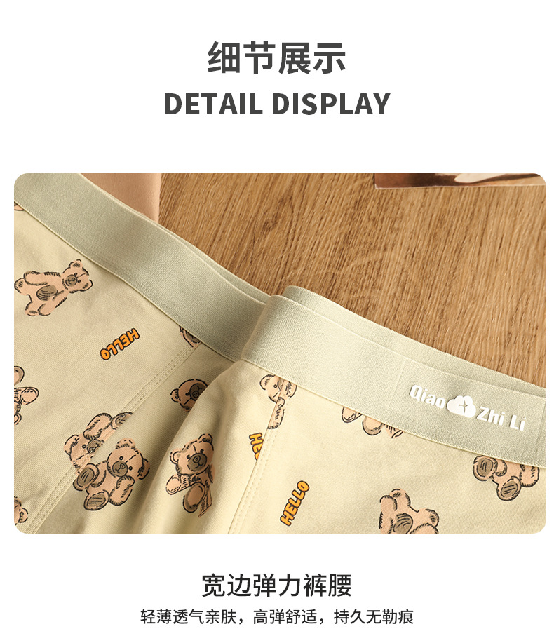 猛男粉 纯棉男士内裤男平角裤 可爱卡通小熊 透气中腰青年男生四角裤头裤衩
