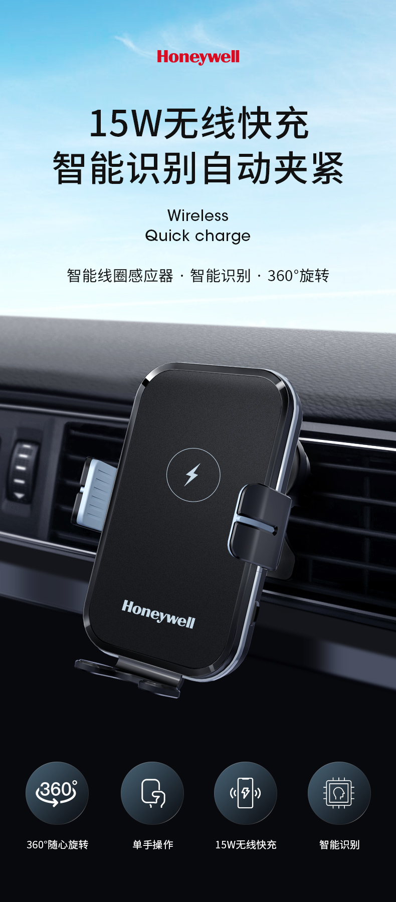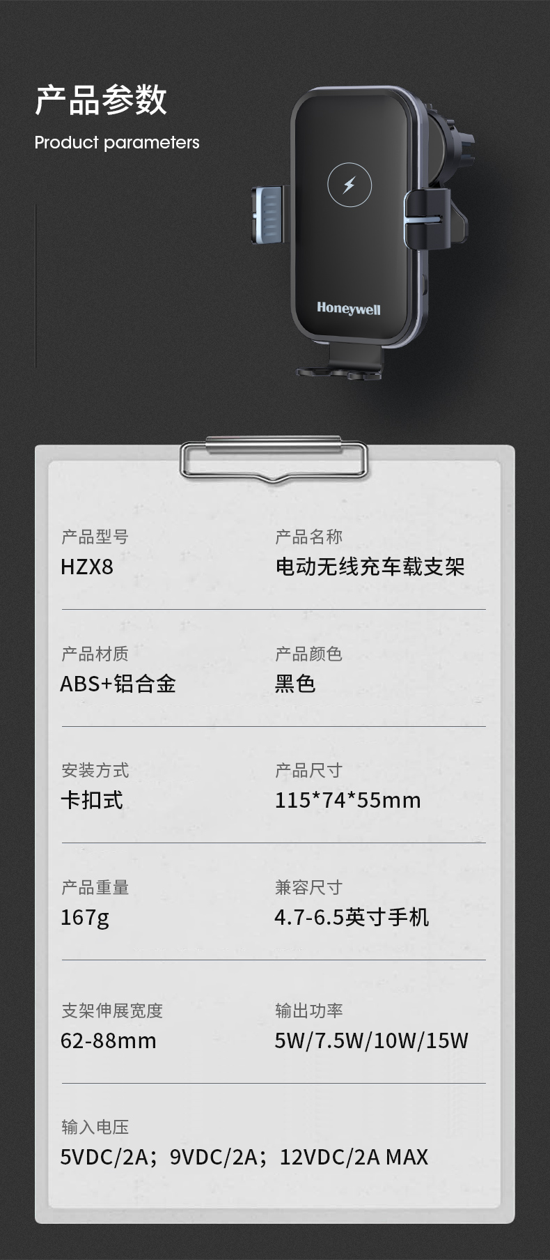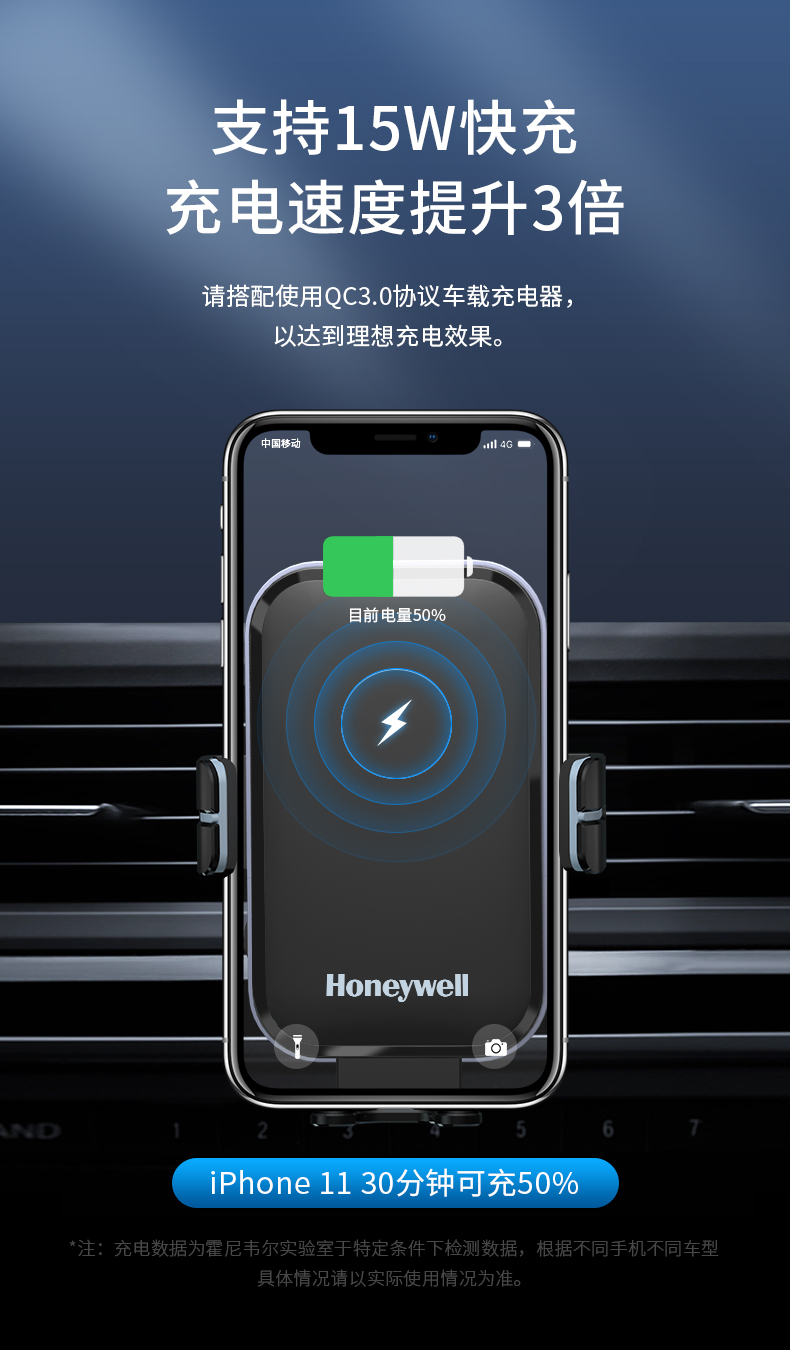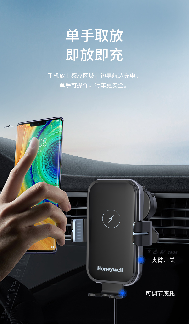 霍尼韦尔车载充电支架无线快充15W-HZX8
