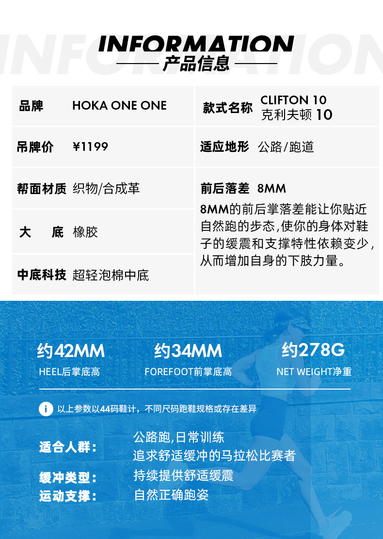 HOKA ONE ONE 男款 Clifton 10 克利夫顿10 缓震路跑鞋