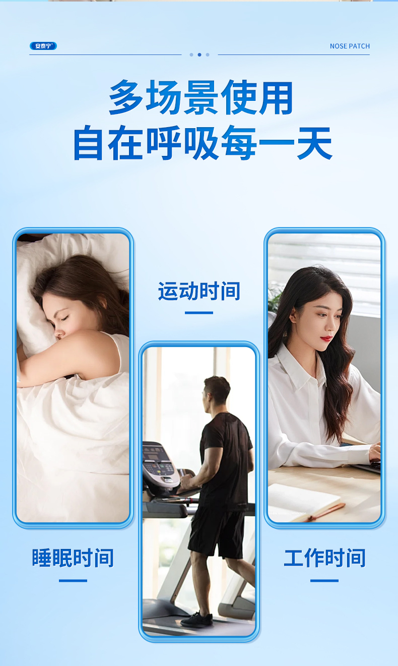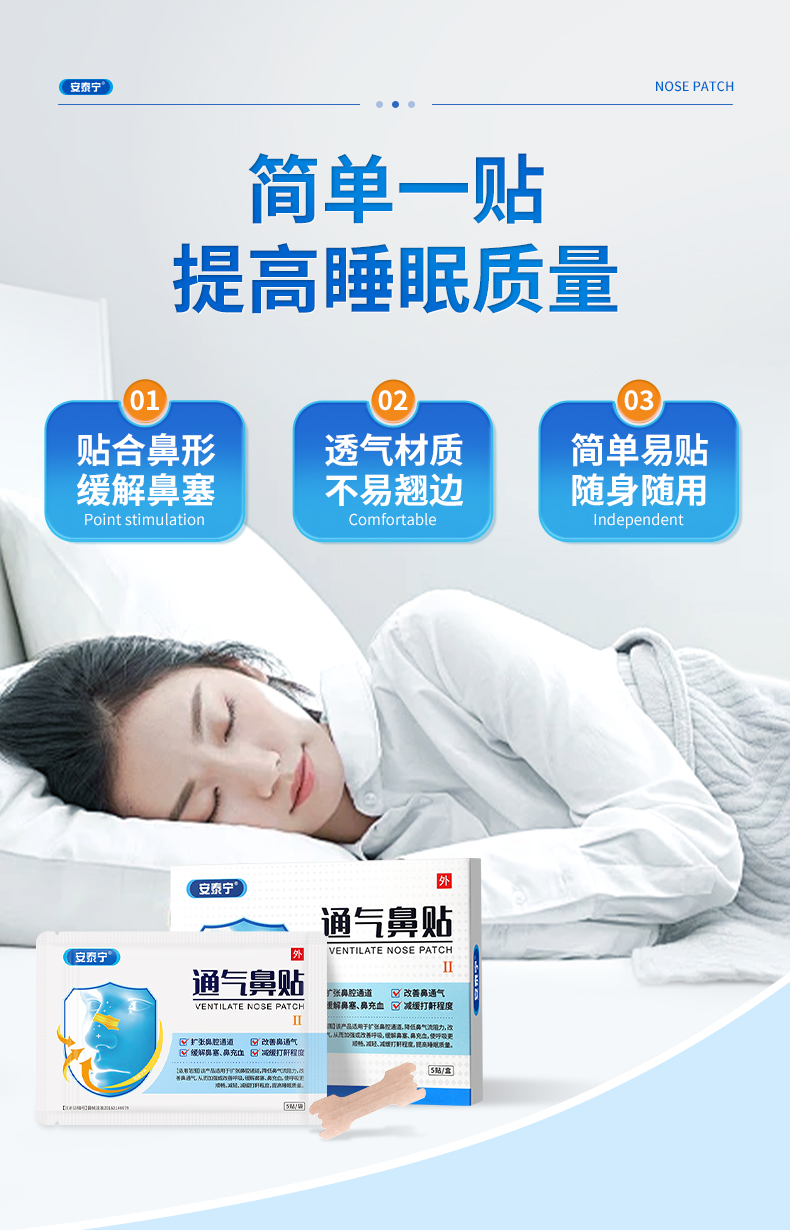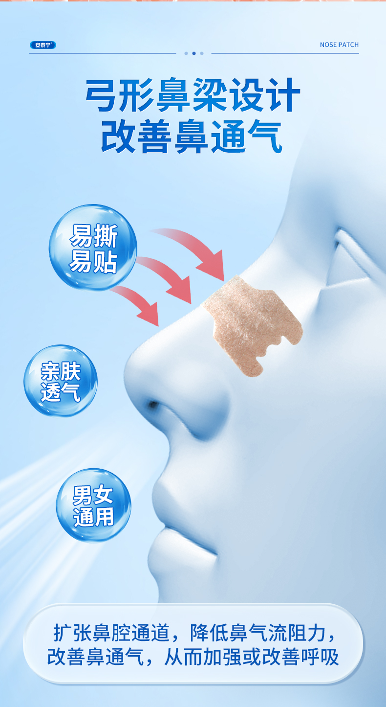 安泰宁通气鼻贴改善呼吸缓解鼻塞鼻充血睡觉打鼾减轻鼾声官方正品