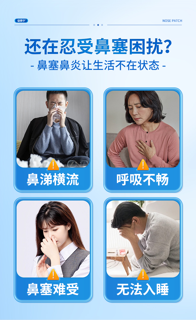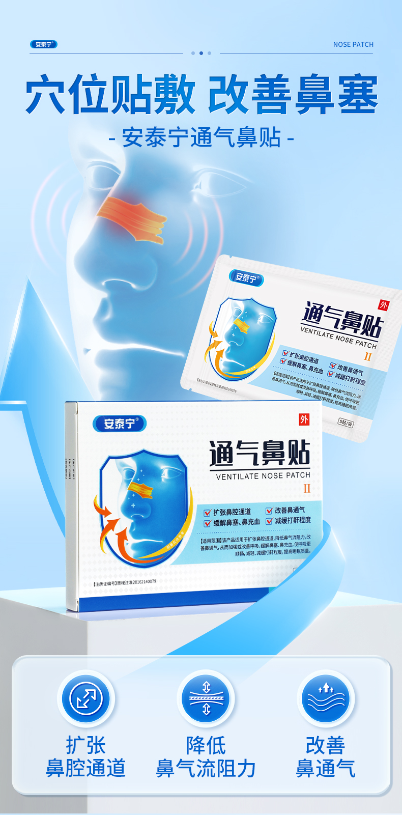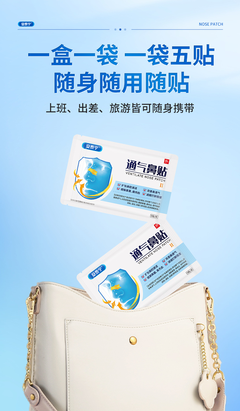 安泰宁通气鼻贴改善呼吸缓解鼻塞鼻充血睡觉打鼾减轻鼾声官方正品