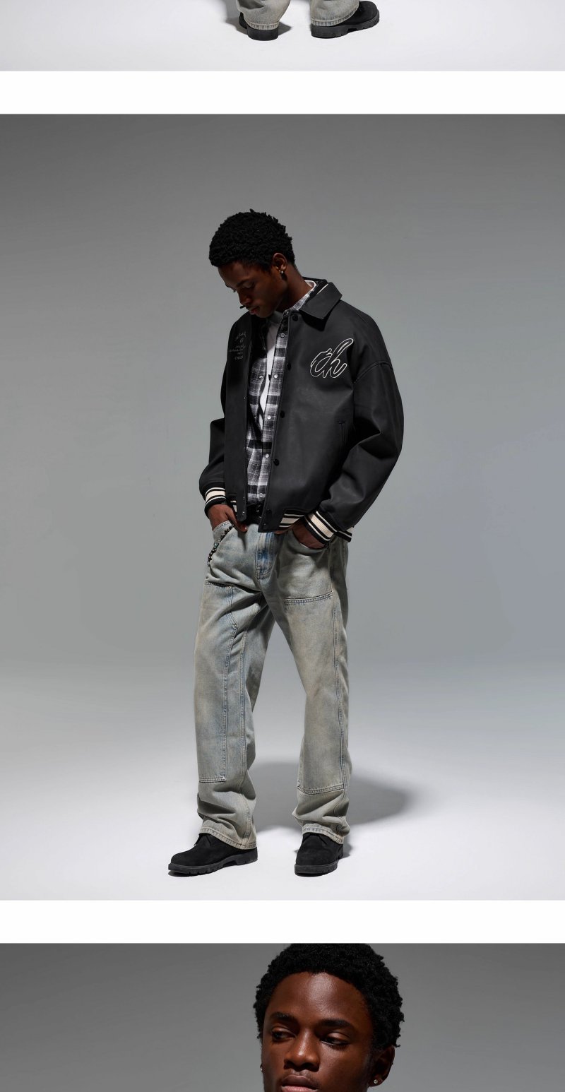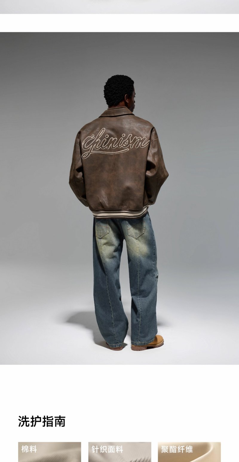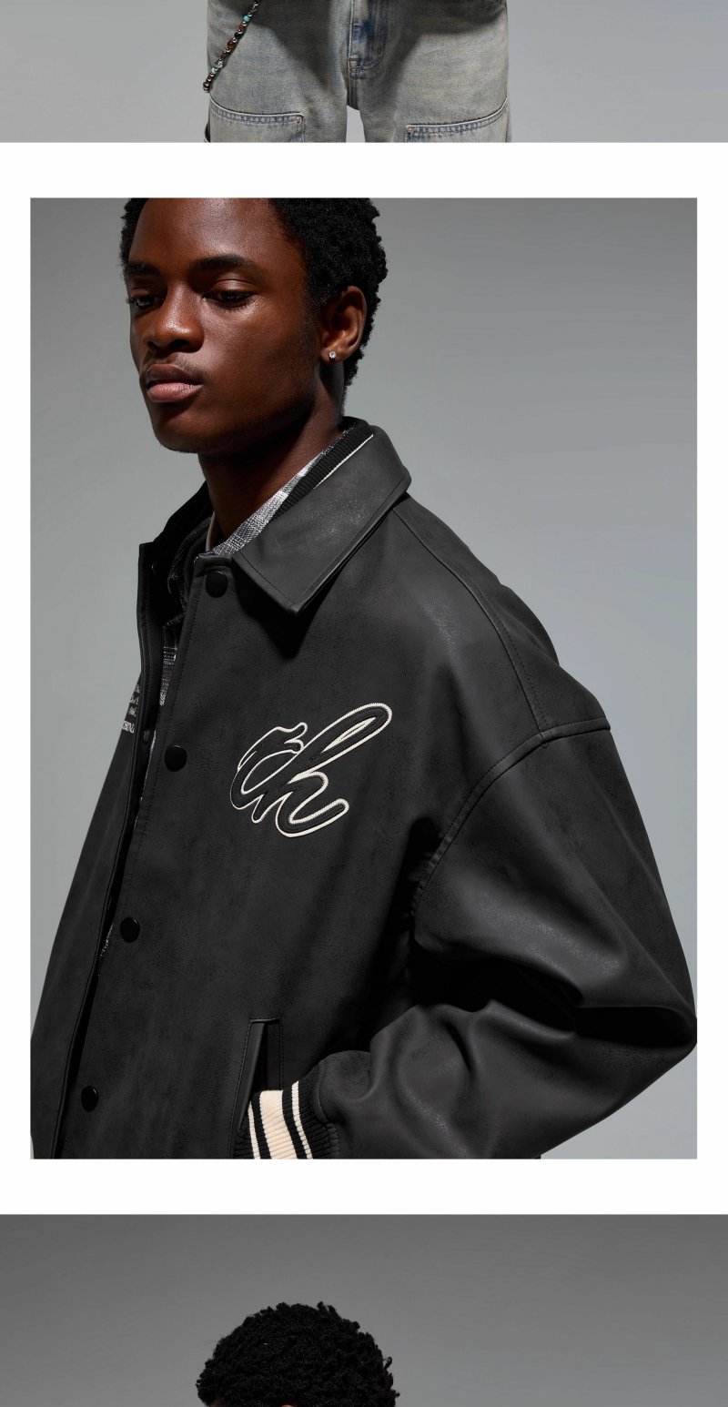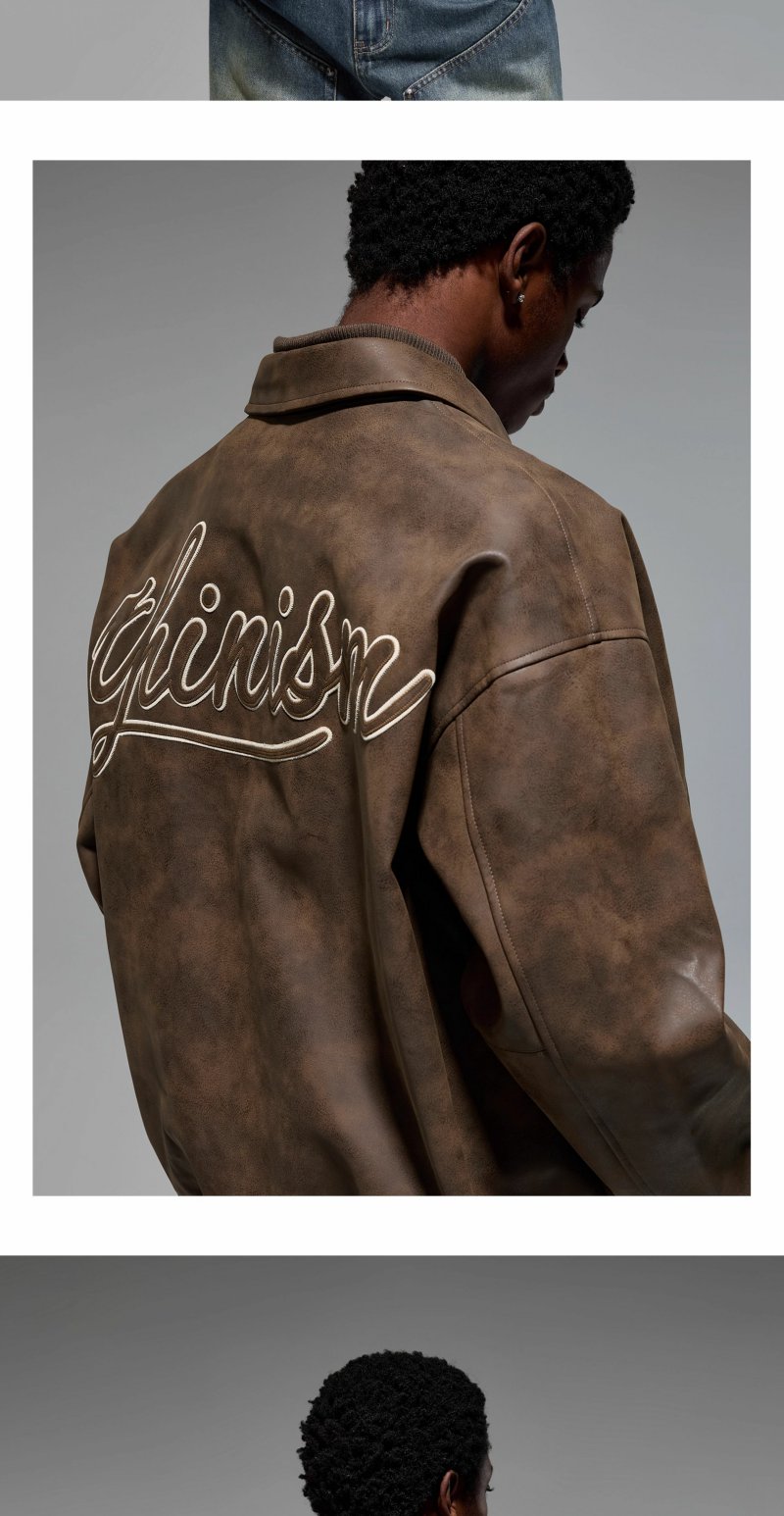 CHINISM赤尘 岩纹翻领pu皮夹克男春秋美式皮衣男士棒球服红色外套