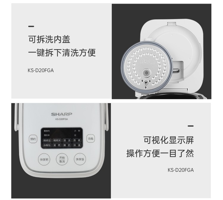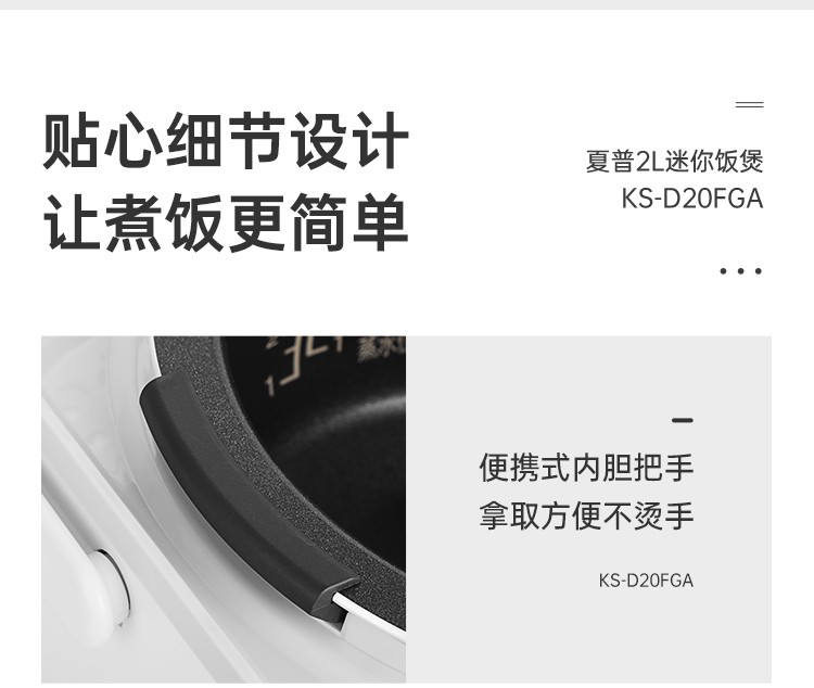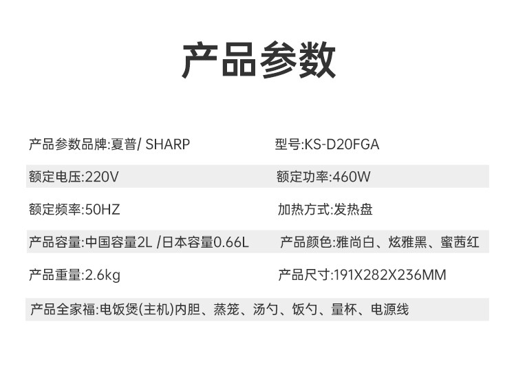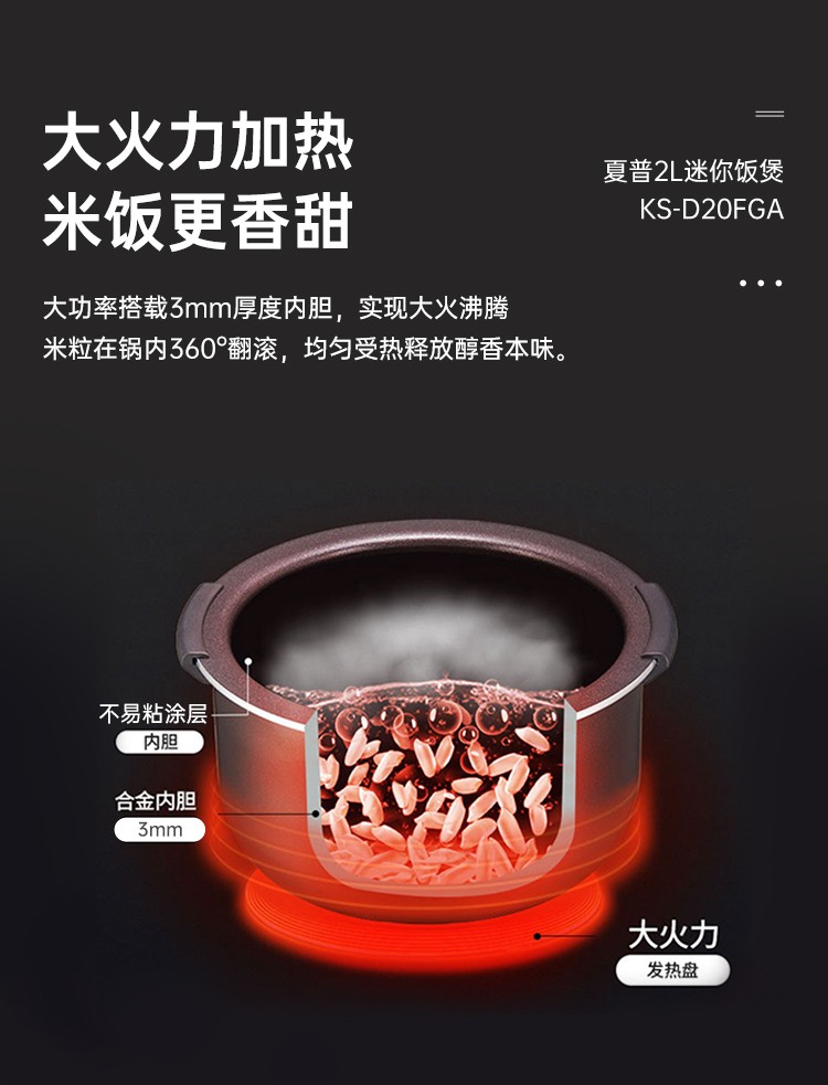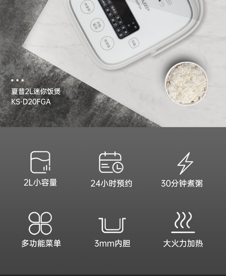 【28min快速煮饭】日本夏普电饭煲 2L KS-D20FGA