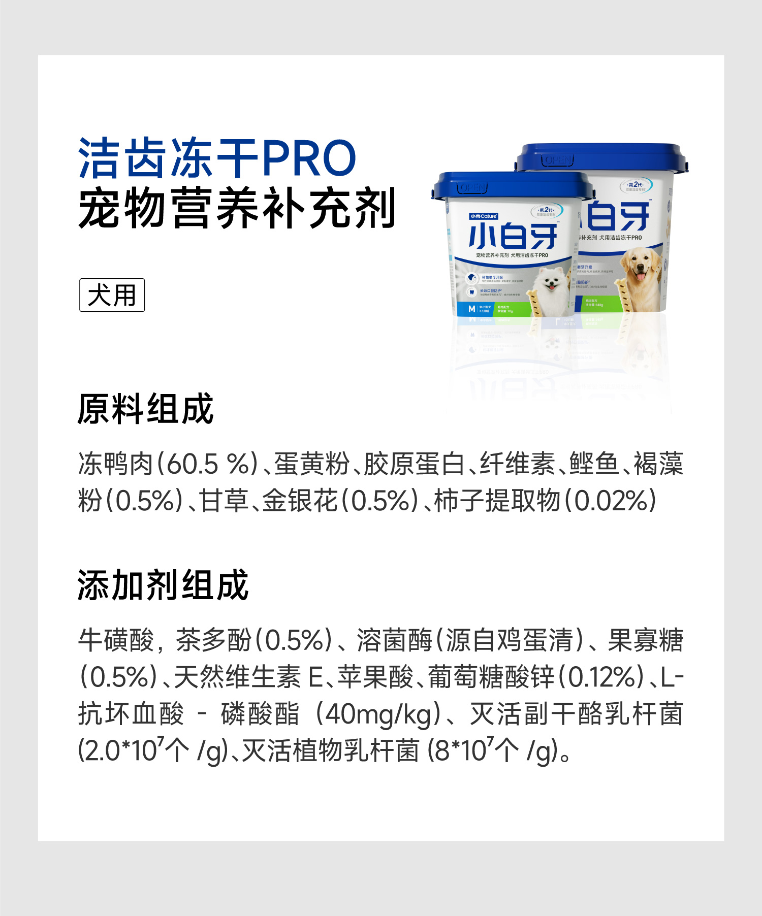 - 【十年专注宠物功能食品】 从宠物口腔呵护、功能冻干、功能主食到临床营养方案, 我们始终秉承科学与专业的精神,只为宠物的健康,让陪伴更长久。