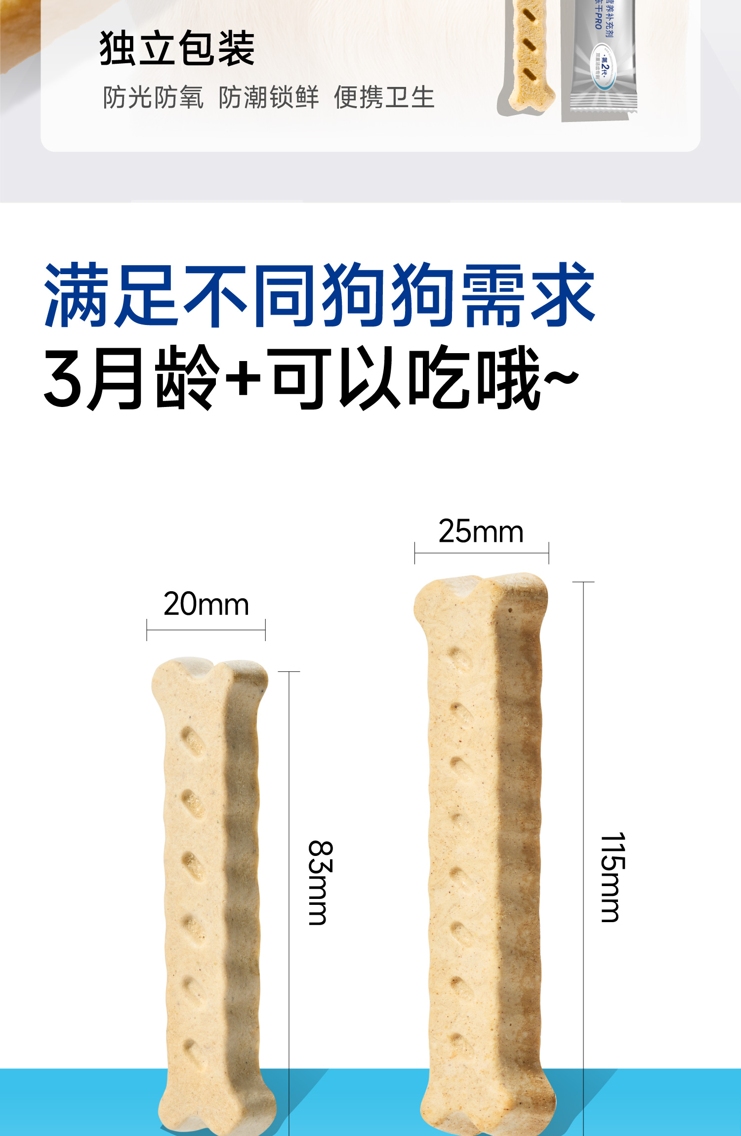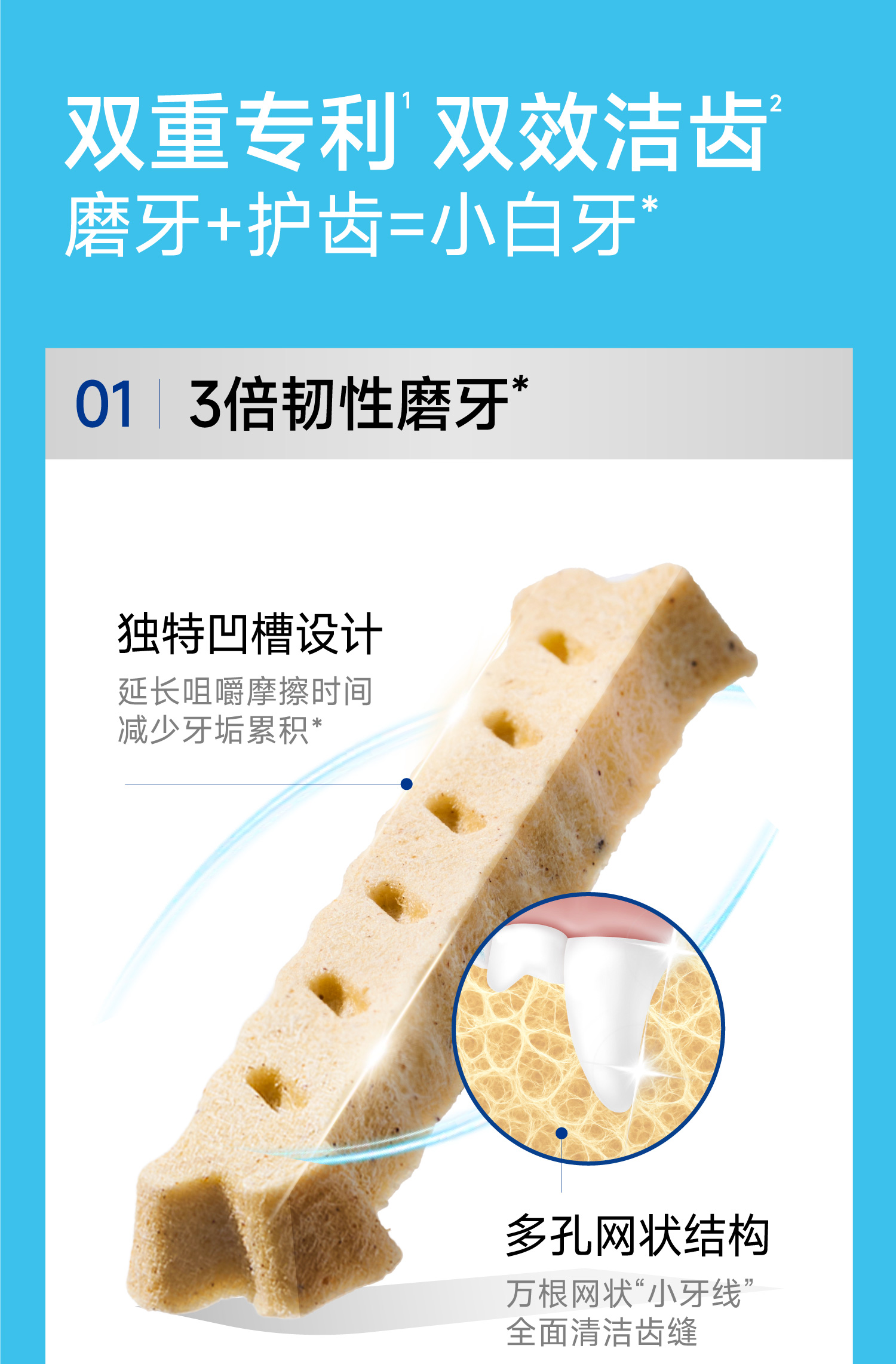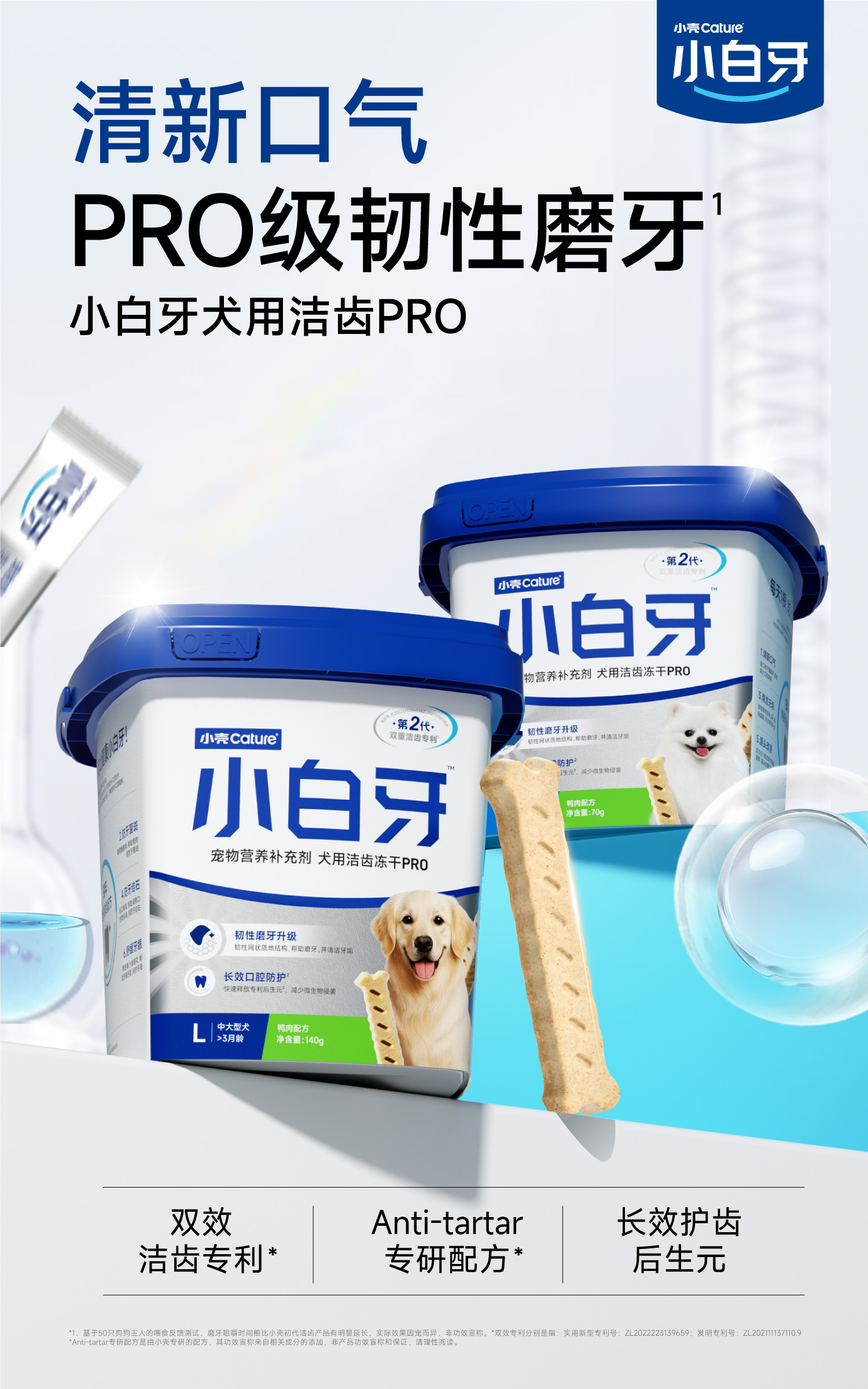 🎁[年货节]小白牙犬用洁齿冻干PRO,零食磨牙棒,韧性双效洁齿