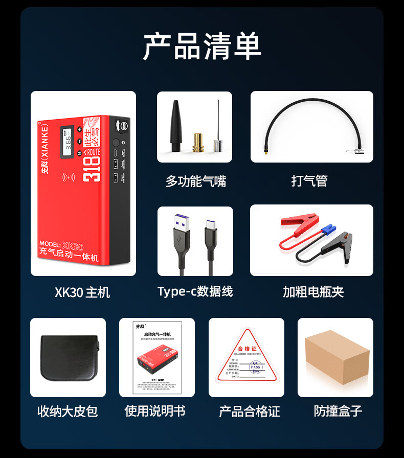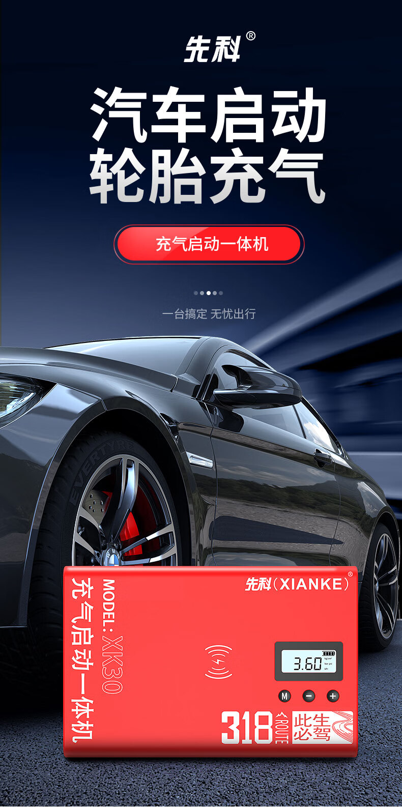 先科(XIANKE)XK30汽车应急启动电源充气泵一体机 搭电宝汽车电瓶充电器打气泵启动充气一体机 100061050060