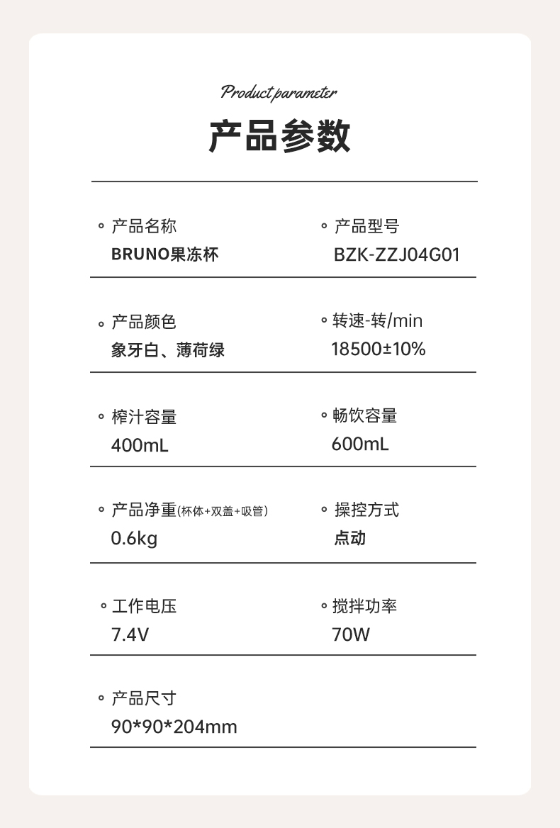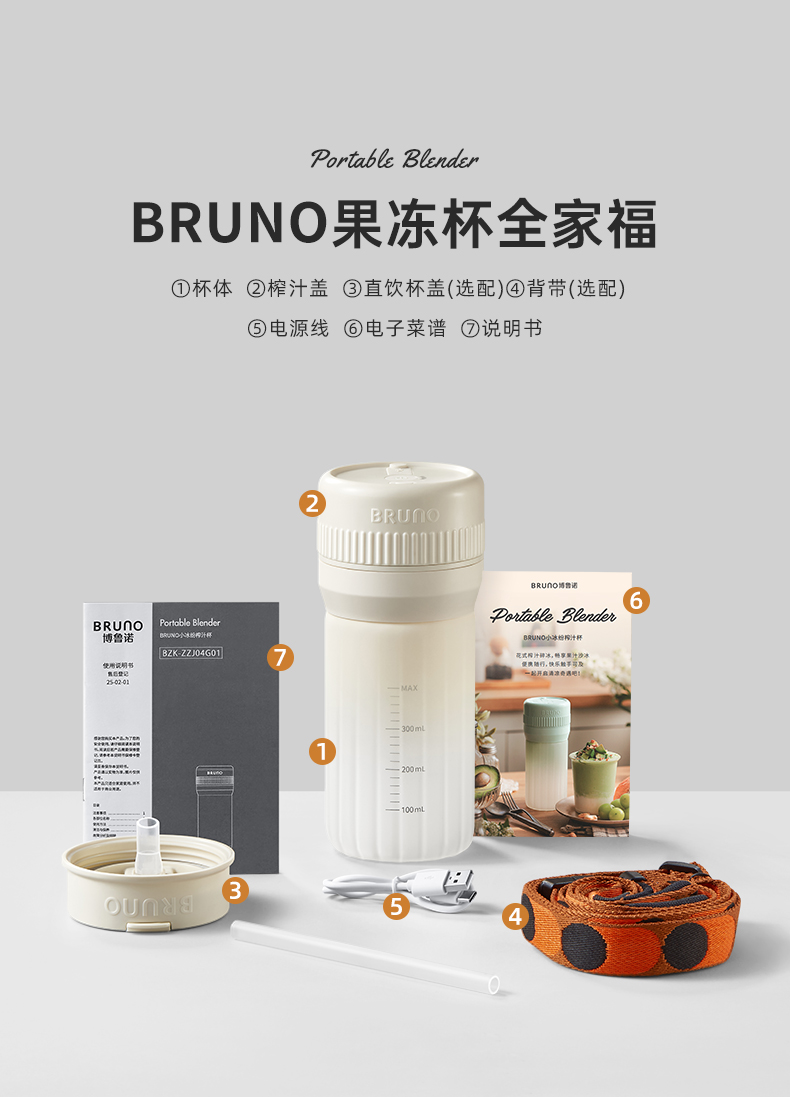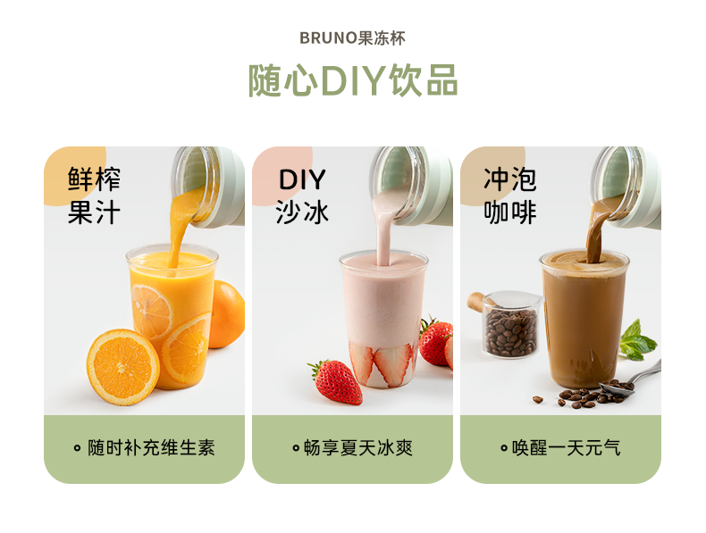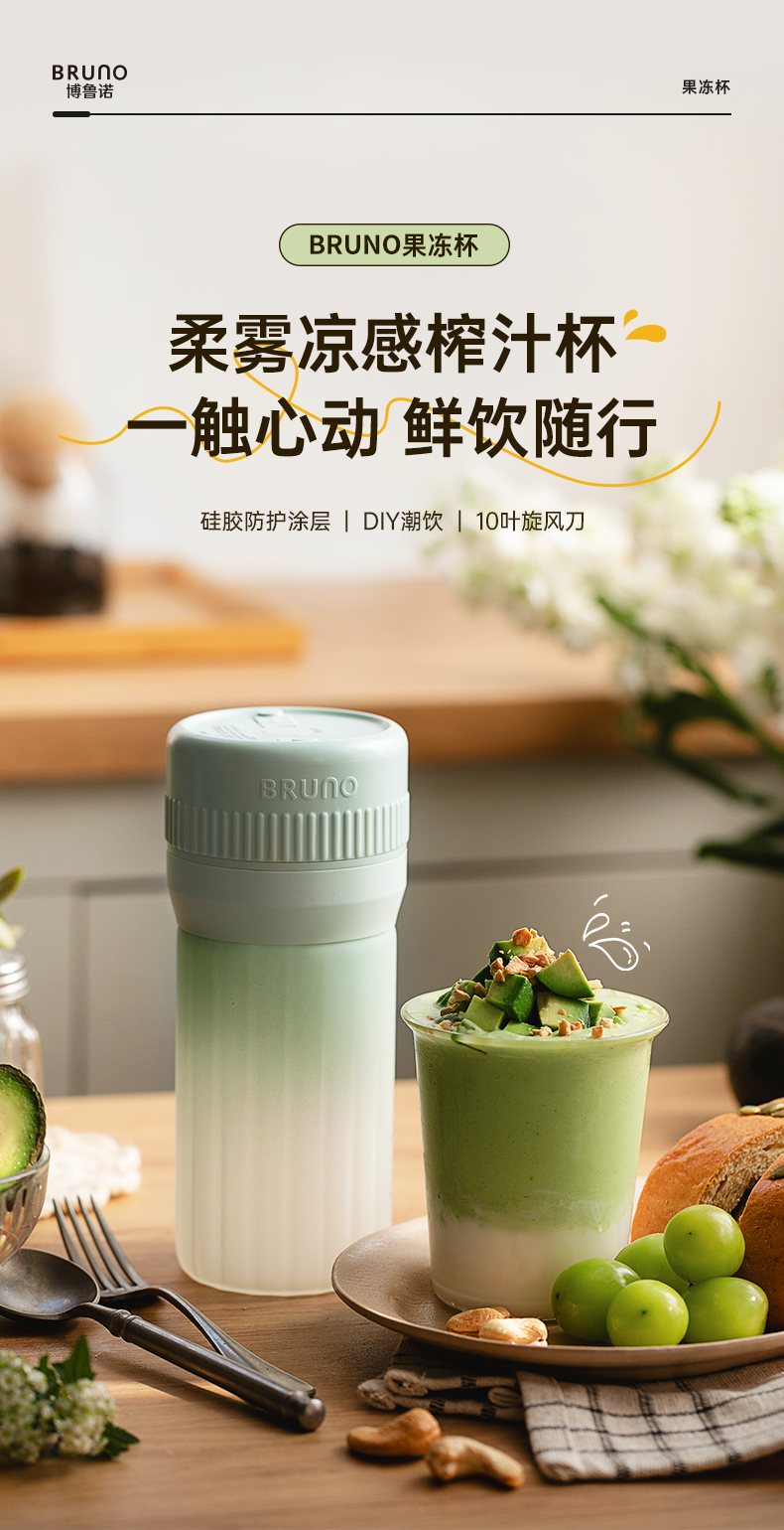 BRUNO榨汁杯多功能榨汁机小型便携式家用玻璃果汁杯新款可碎冰