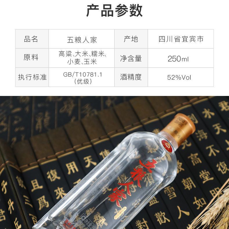 宜宾五粮液股份五粮人家品鉴酒 52度浓香型白酒 整箱250ml*6瓶包邮