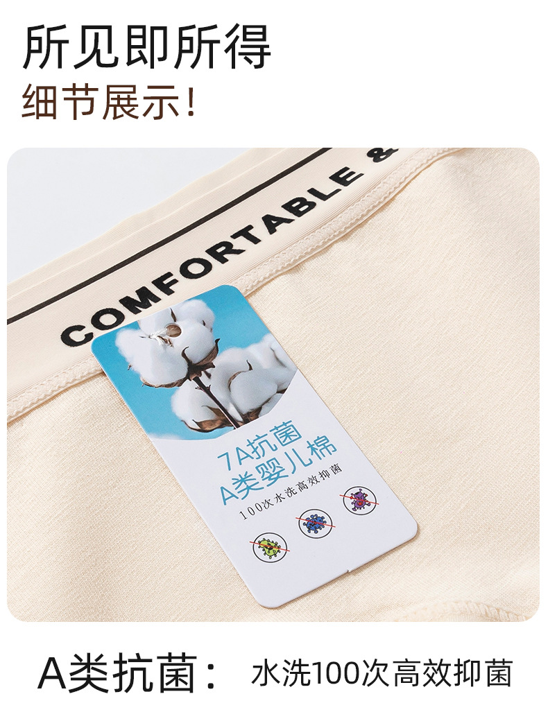 裸感不压身 透气不闷汗 新疆A类婴儿棉女士纯棉内裤 7A级抗菌 全棉纯棉抑菌裆中腰少女内裤