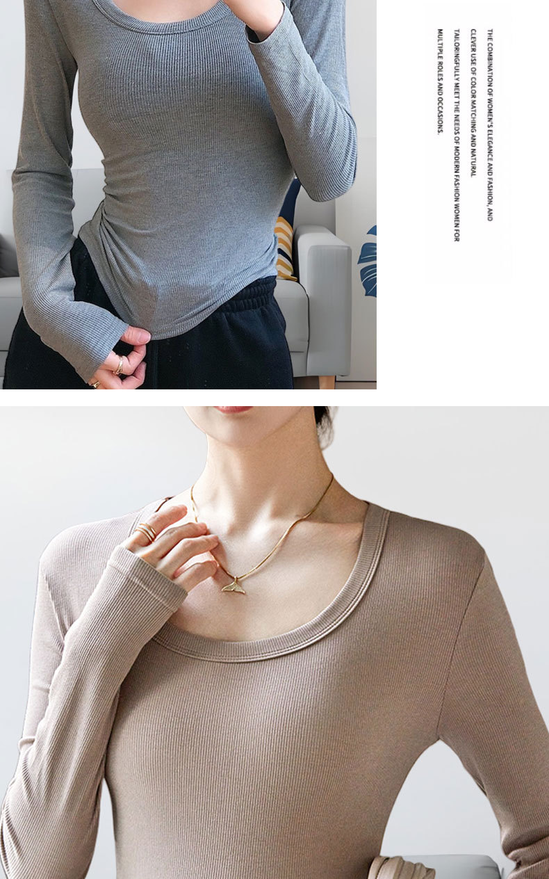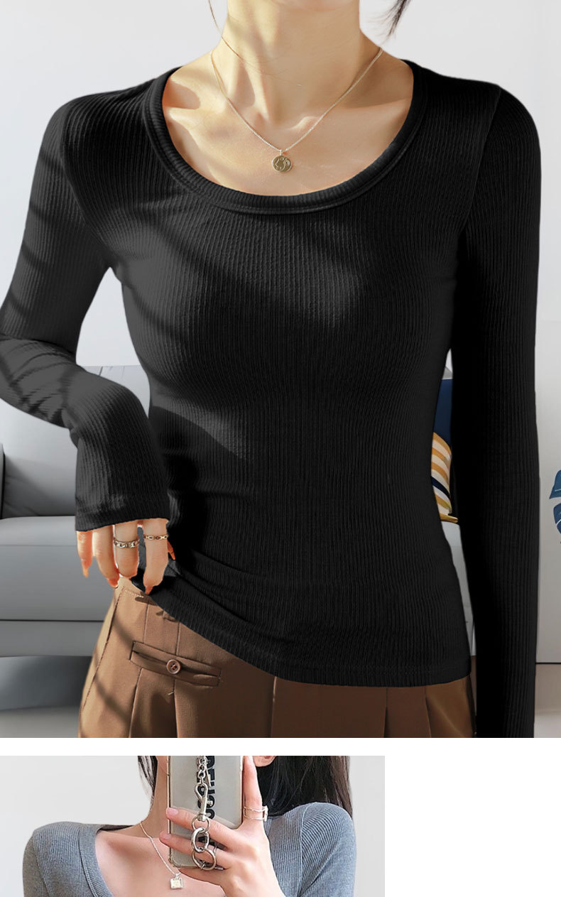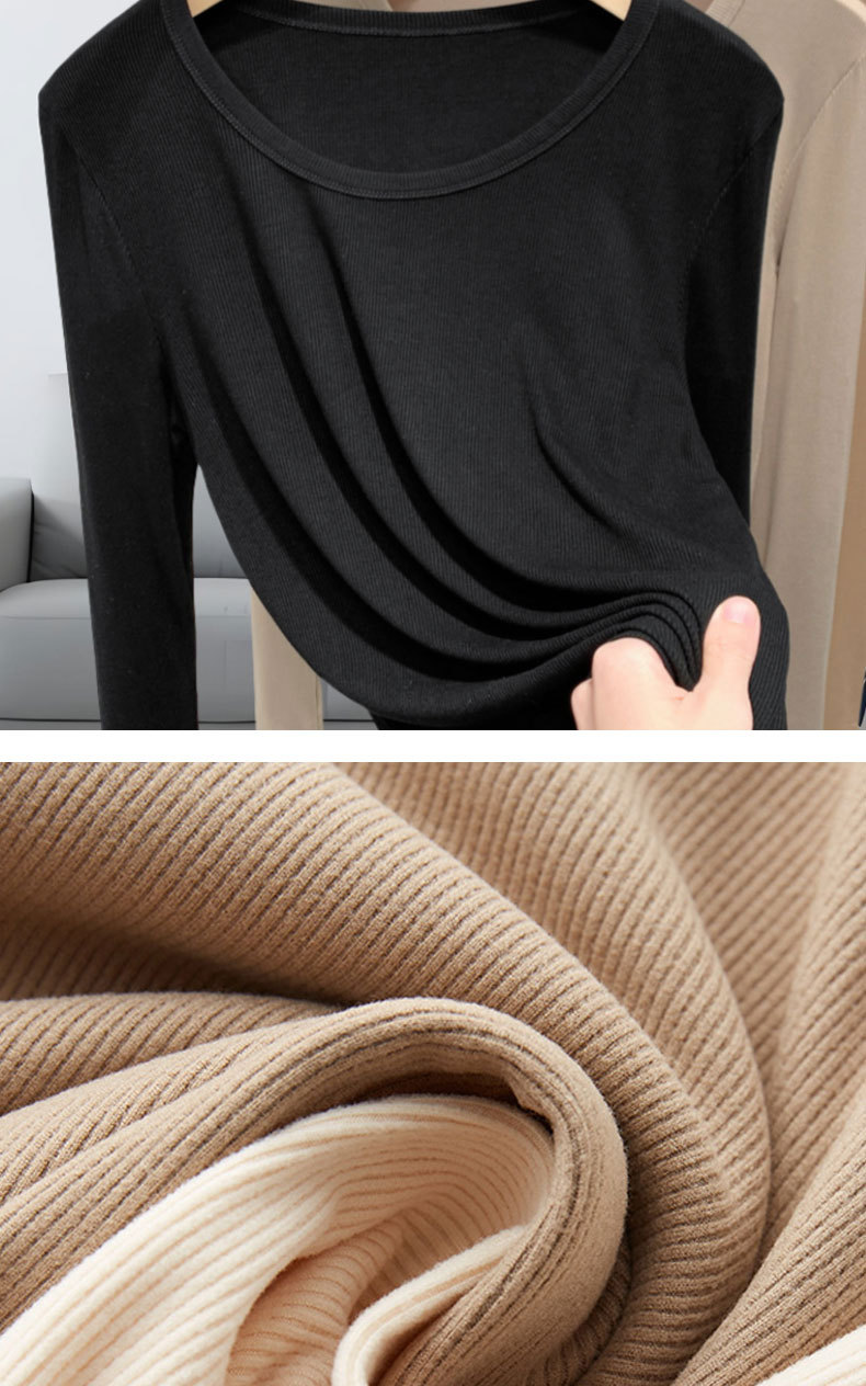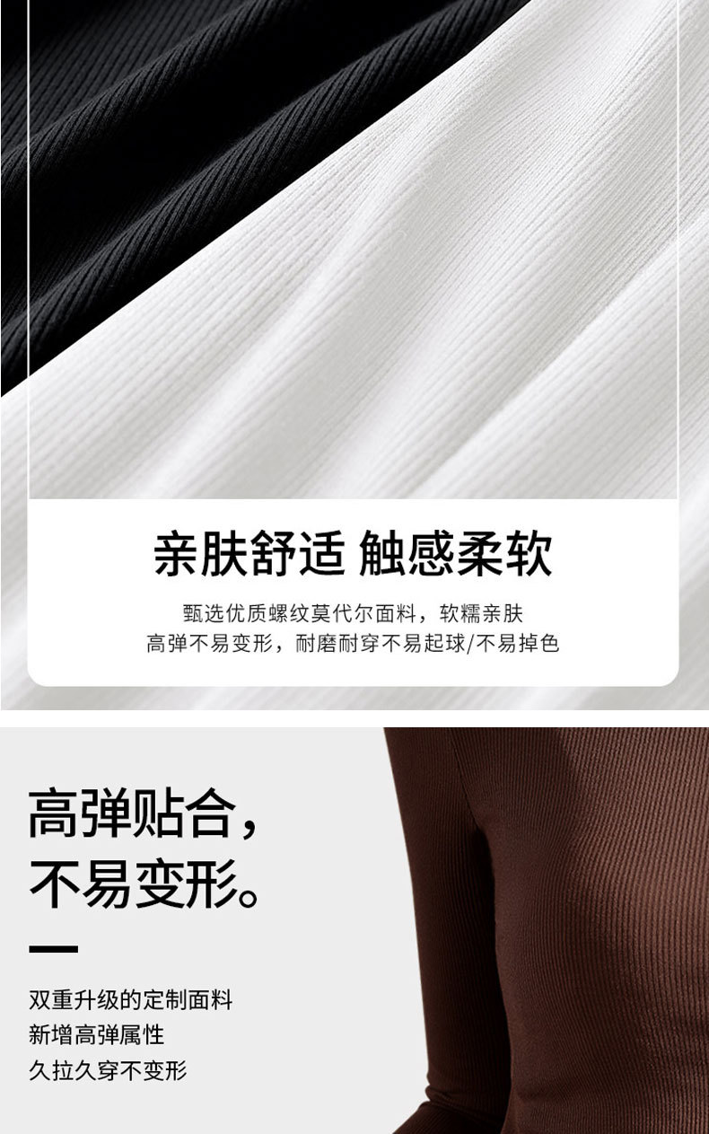 【买一送一】黑色莫代尔打底衫女春秋薄款大圆领长袖t恤纯色低领内搭紧身上衣