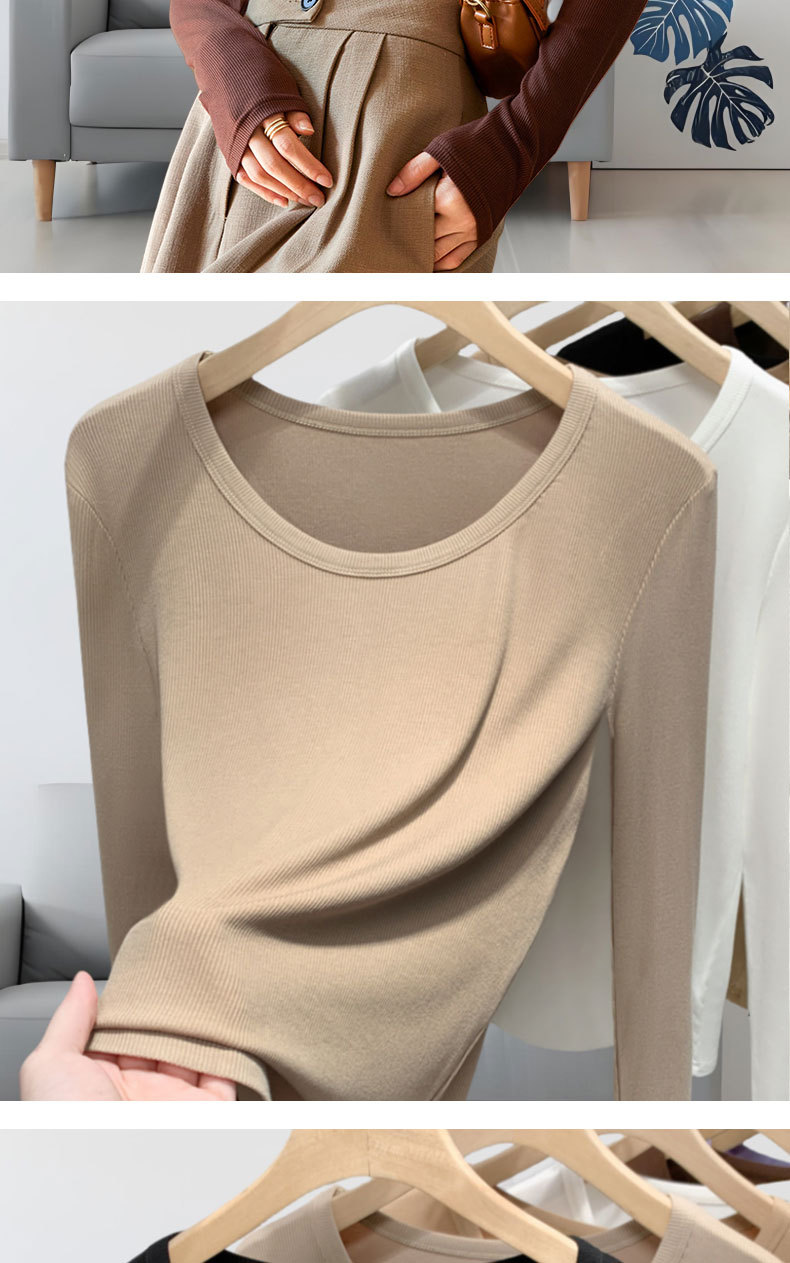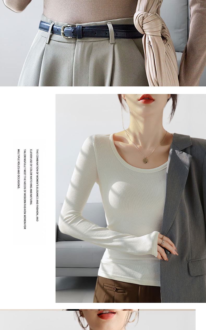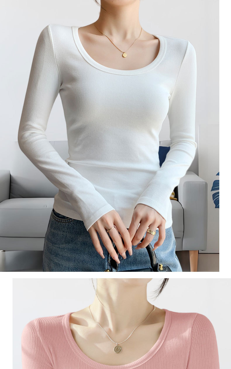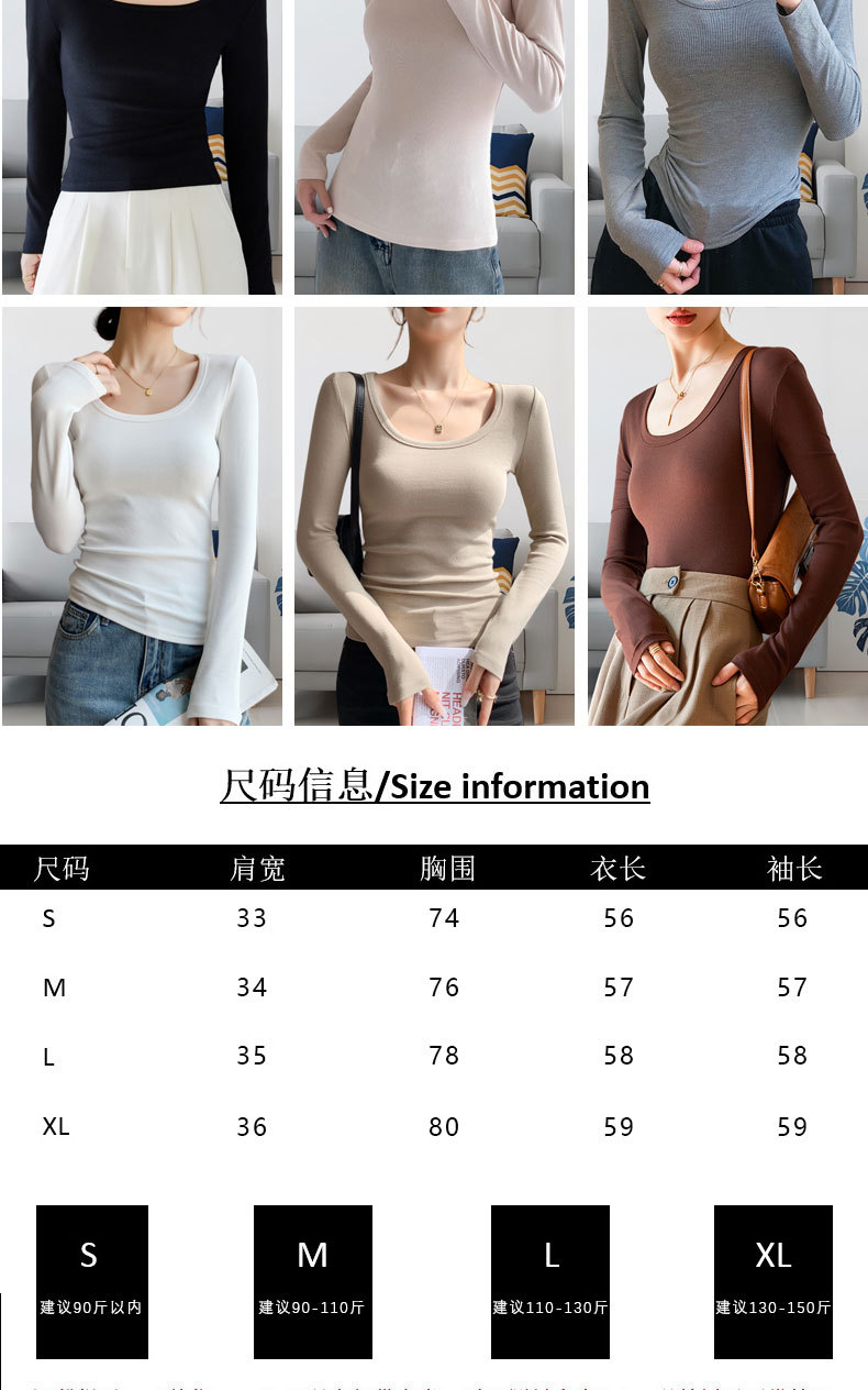 【买一送一】黑色莫代尔打底衫女春秋薄款大圆领长袖t恤纯色低领内搭紧身上衣