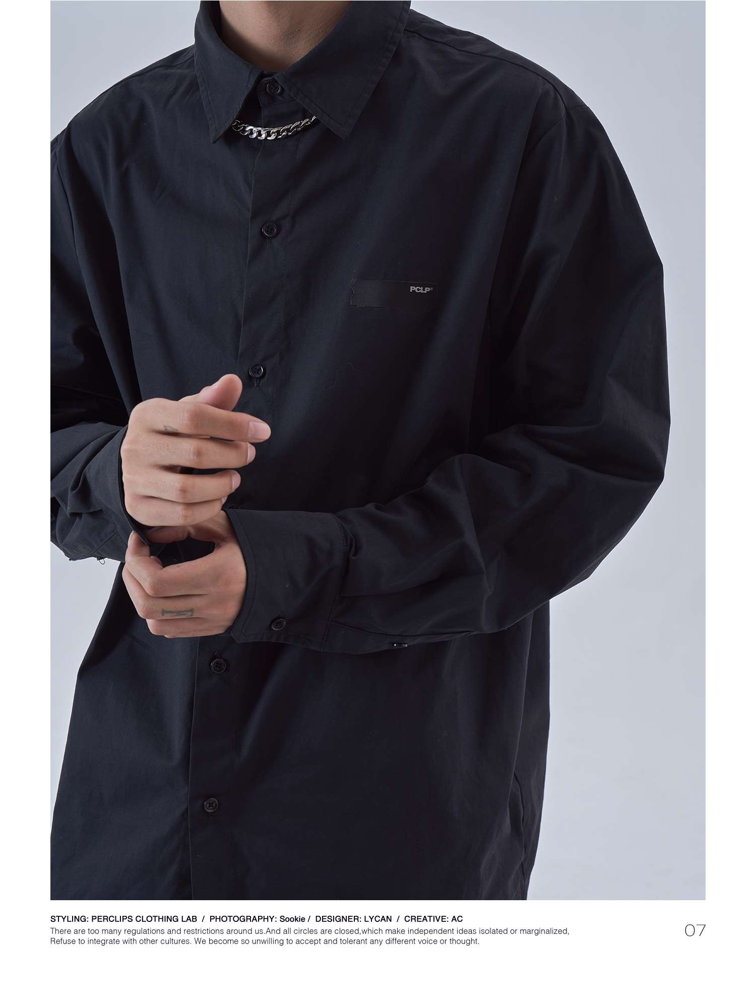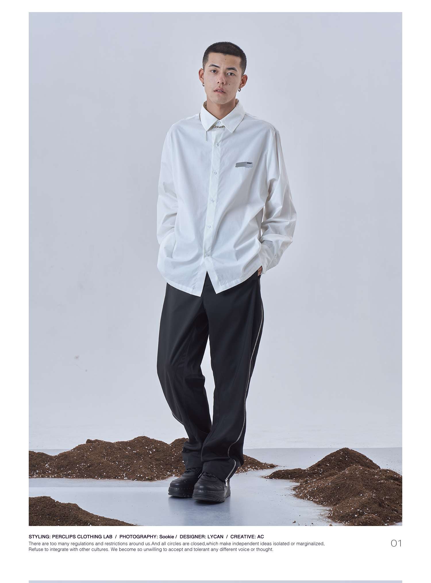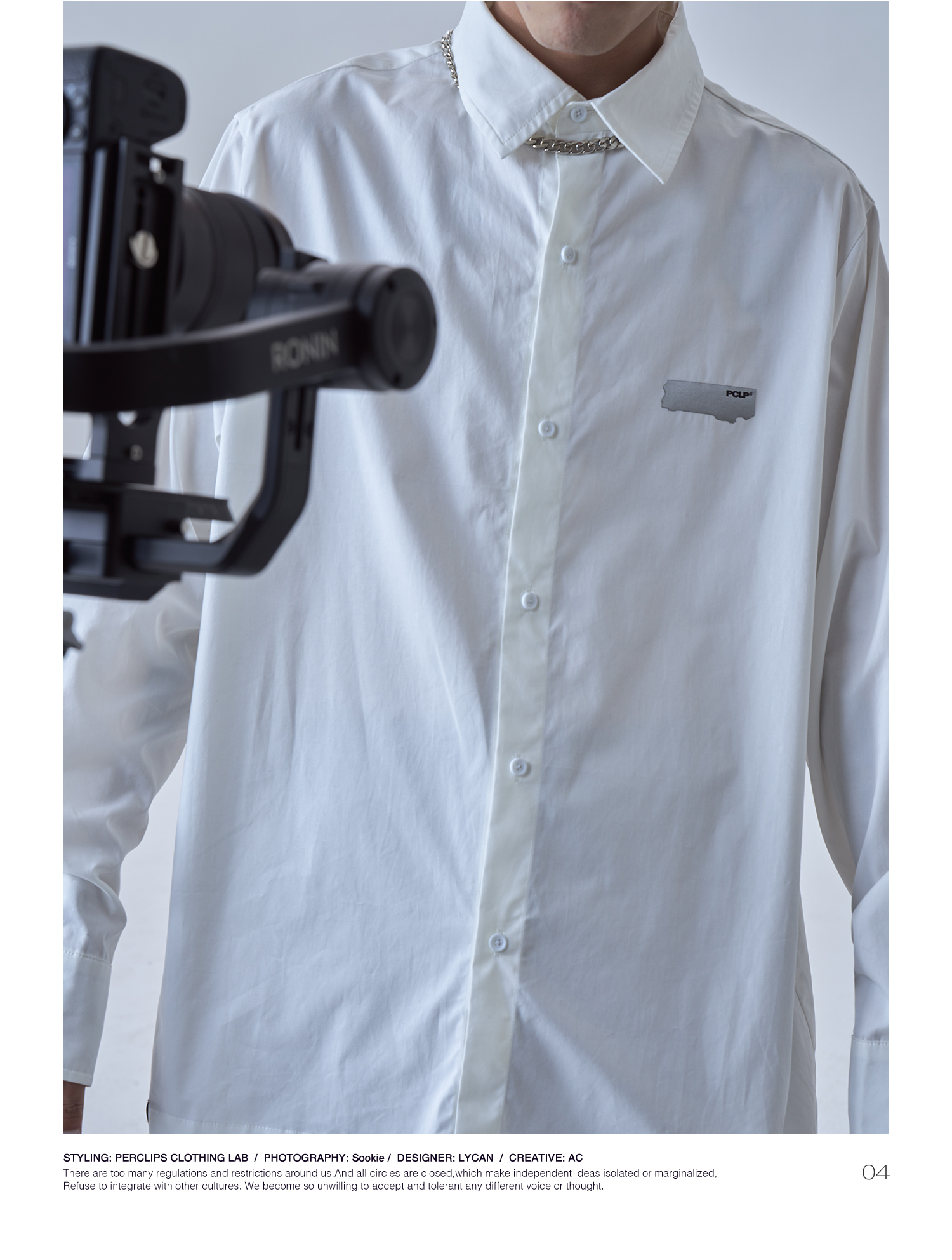 PCLP(PERCLIPS)白色日系衬衫男长袖国潮牌新疆棉休闲内搭打底衬衣