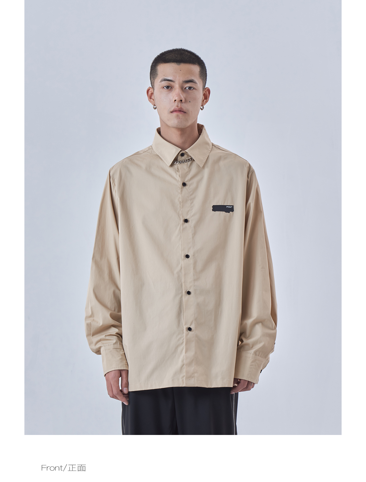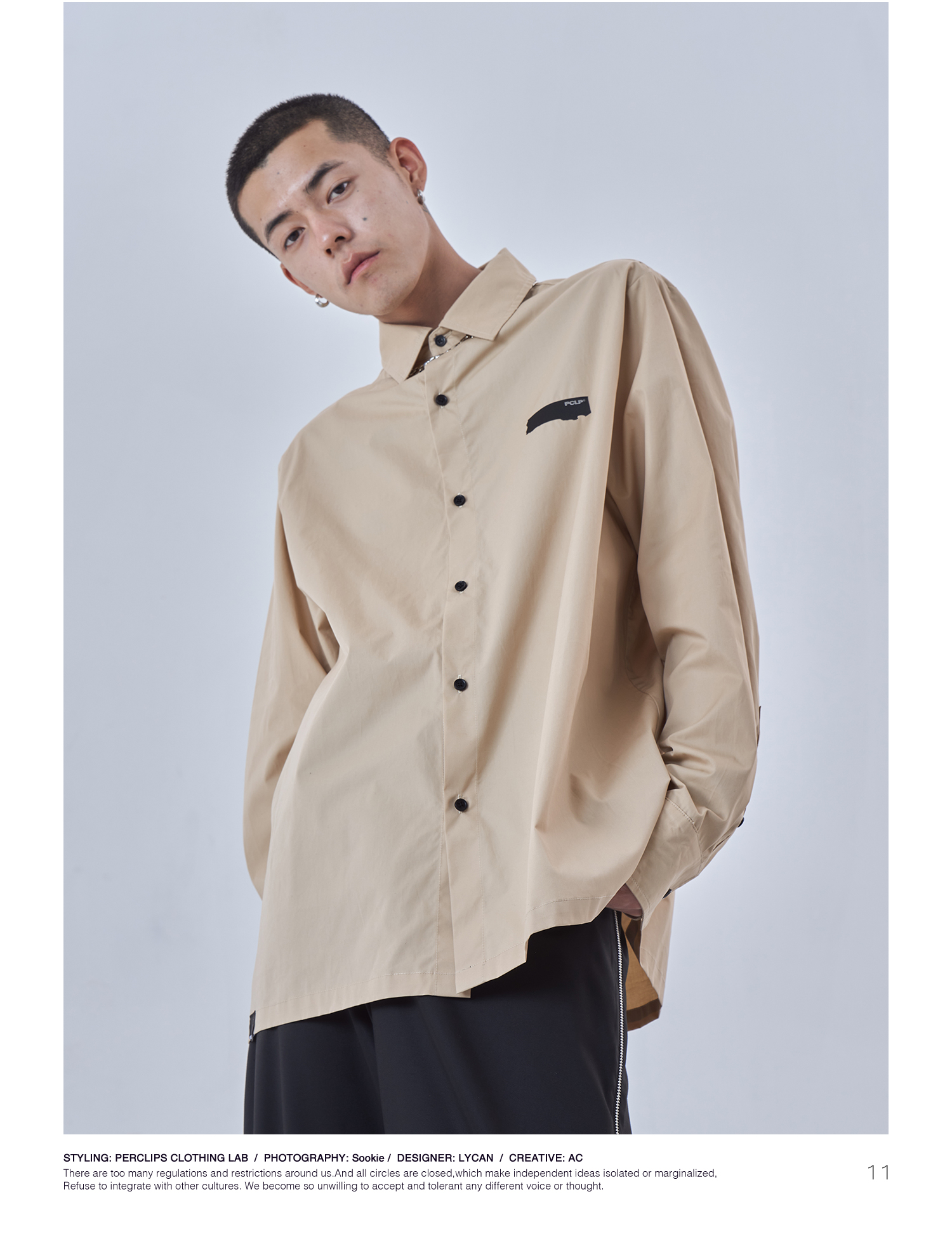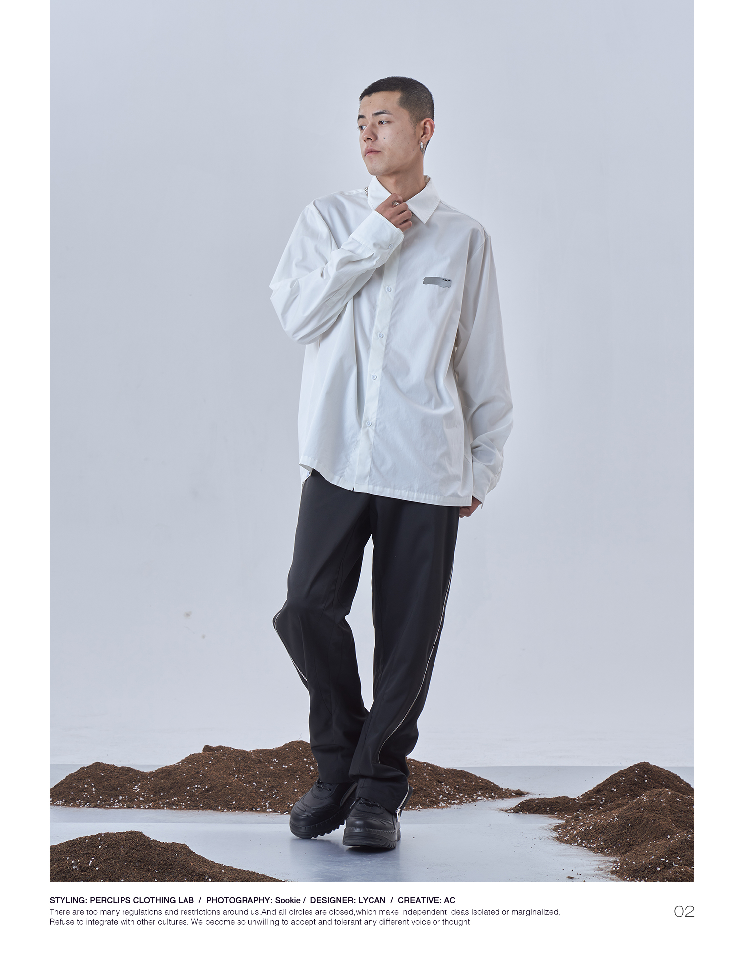 PCLP(PERCLIPS)白色日系衬衫男长袖国潮牌新疆棉休闲内搭打底衬衣