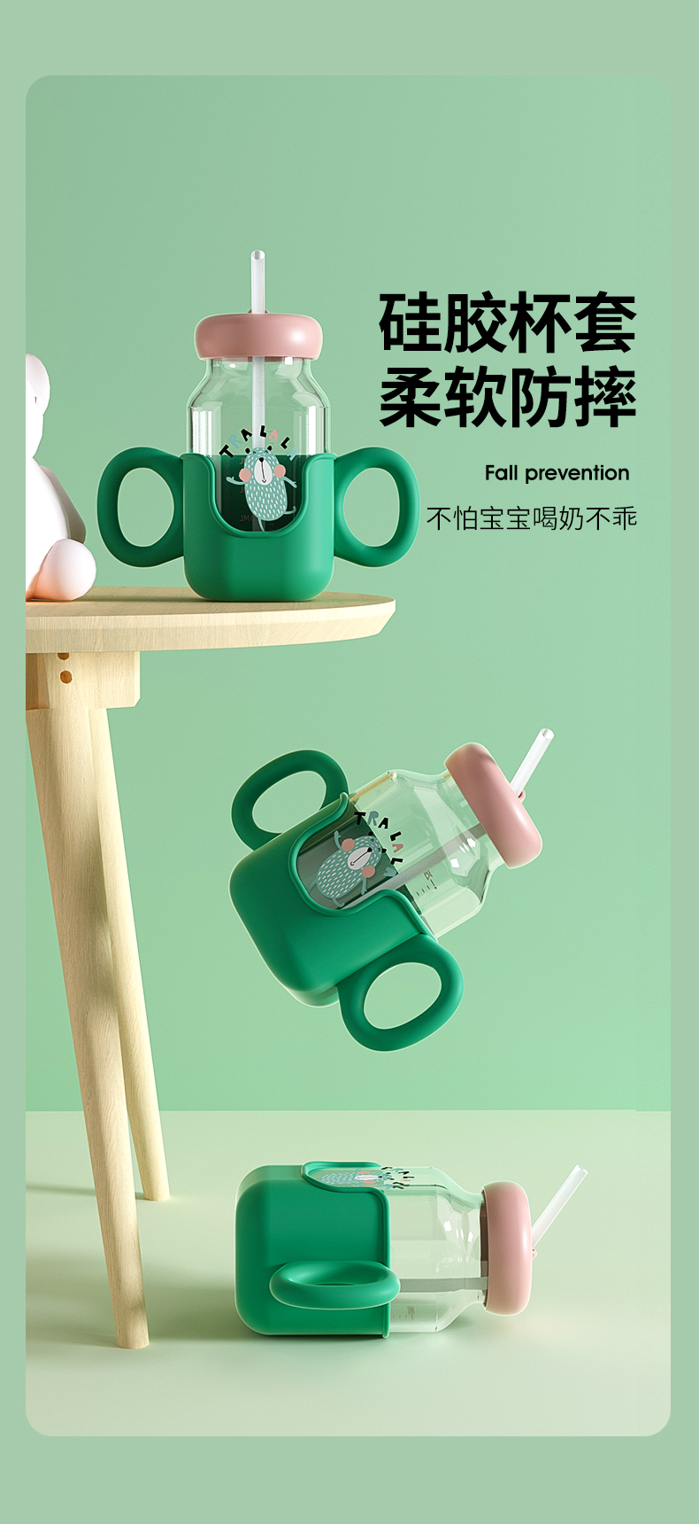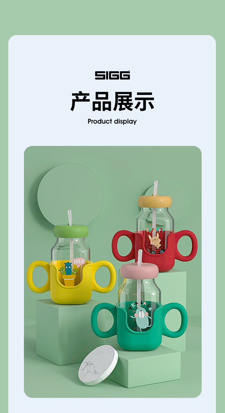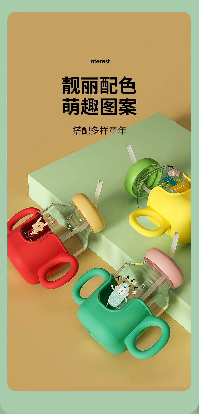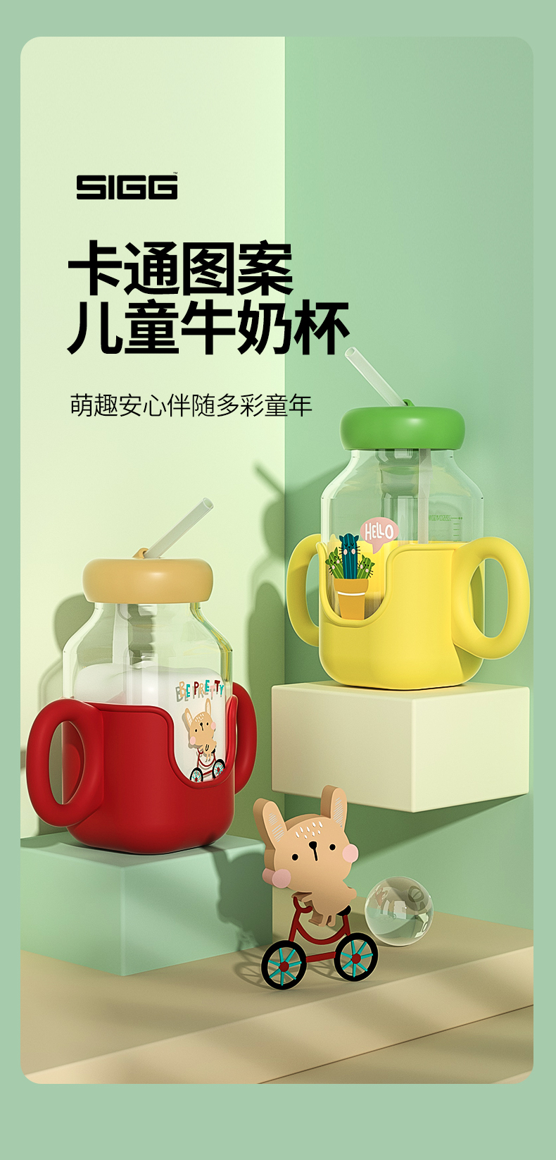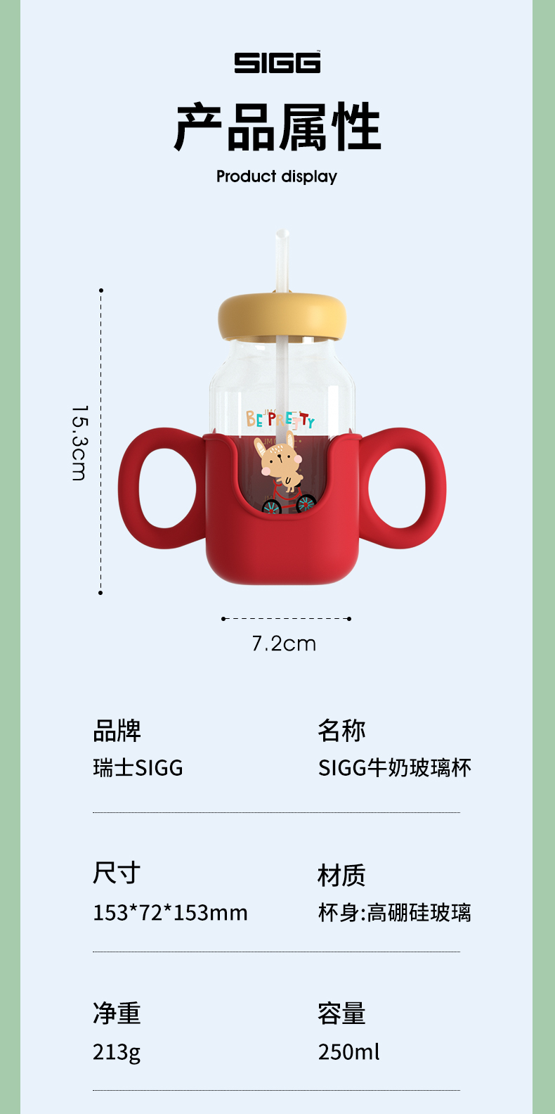 sigg儿童吸管杯带刻度玻璃杯婴儿喝奶粉牛奶杯宝宝学饮杯家用水杯