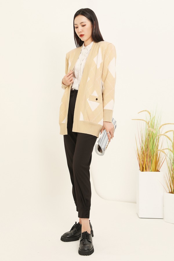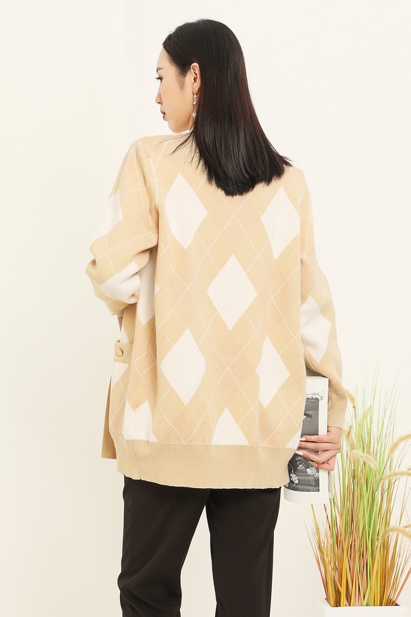 LNNNS 菱形格纹羊毛针织开衫 14684