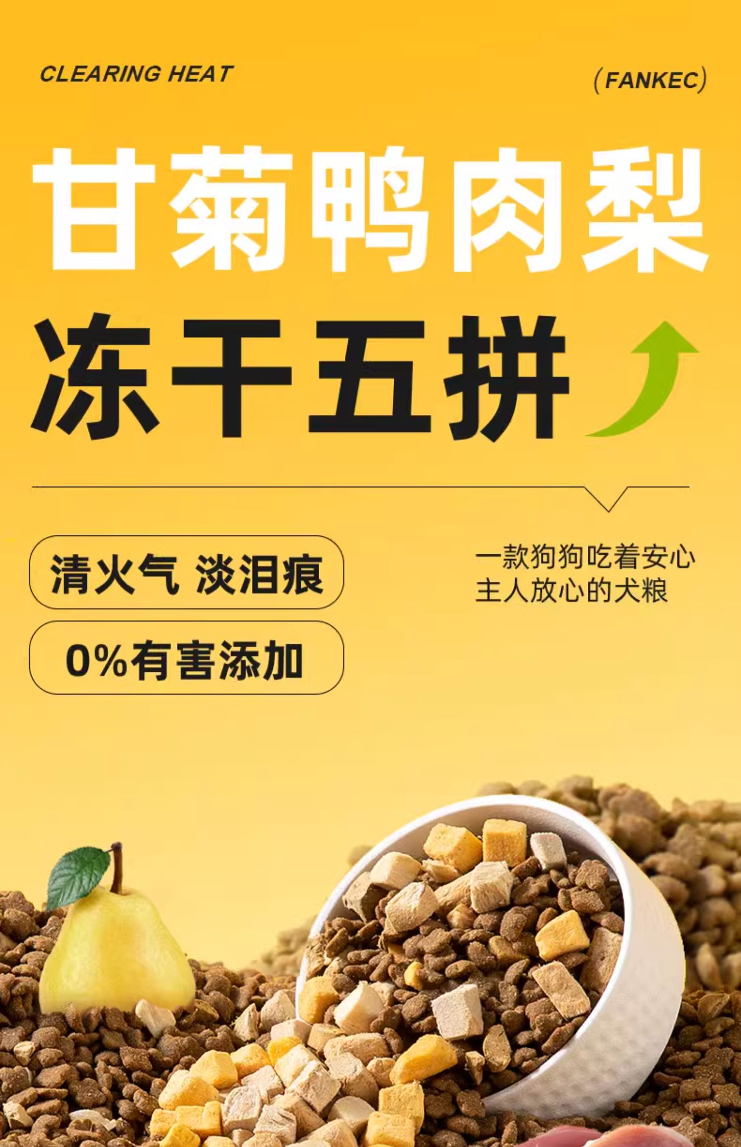 凡可奇 甘菊鸭肉梨狗粮 5kg 冻干五拼鲜肉成犬幼犬通用型犬粮