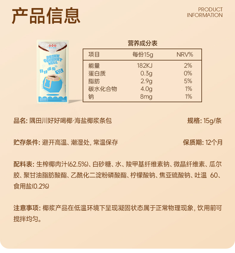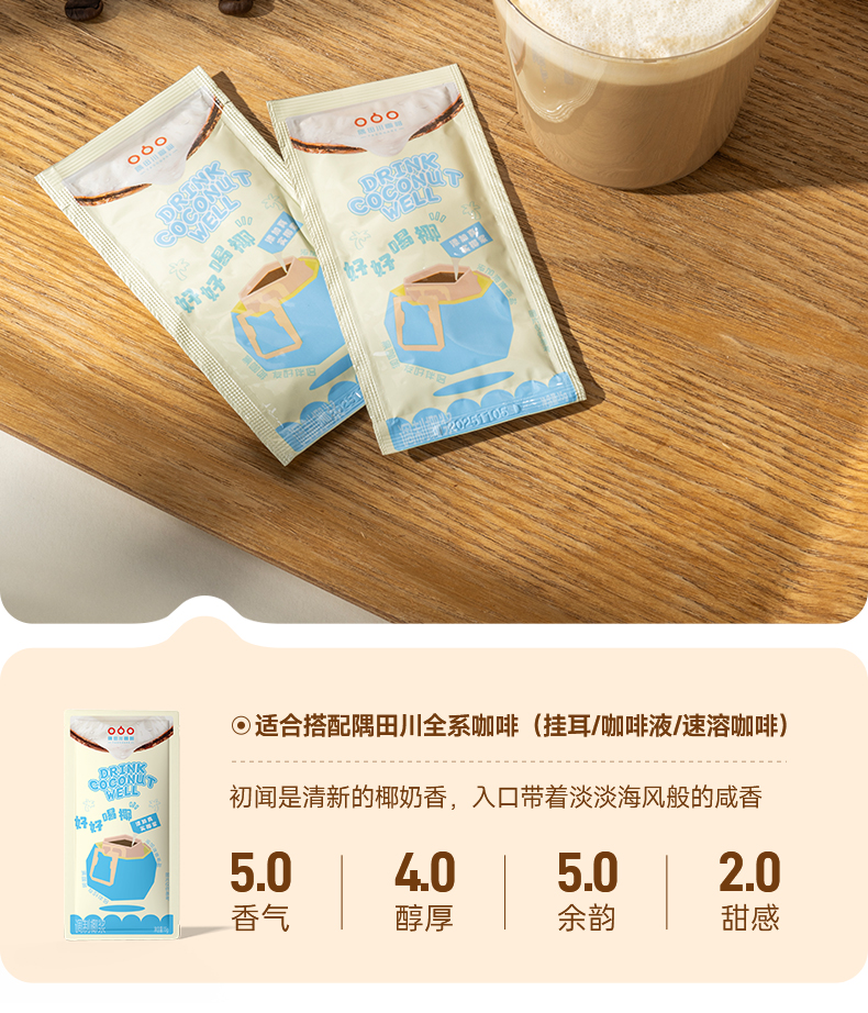 隅田川好好喝椰海盐椰浆生椰拿铁椰汁椰奶厚椰乳咖啡专用伴侣15g