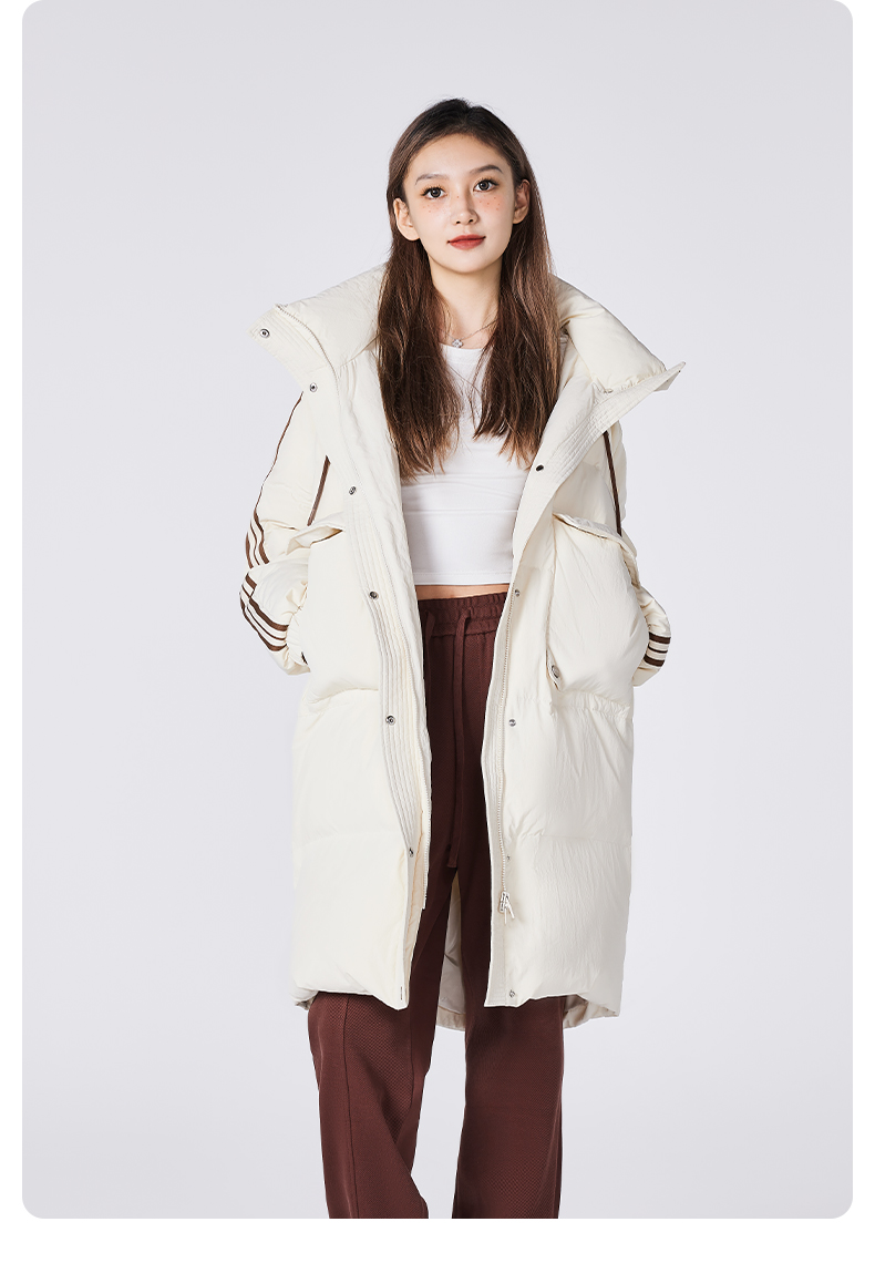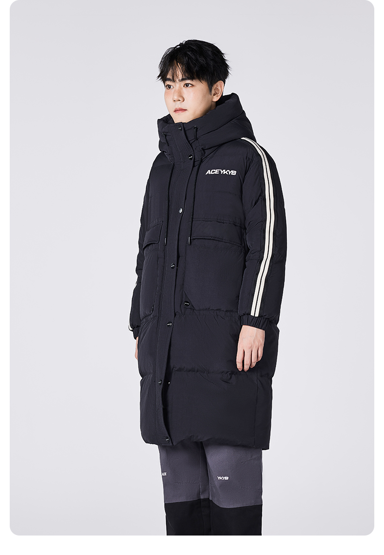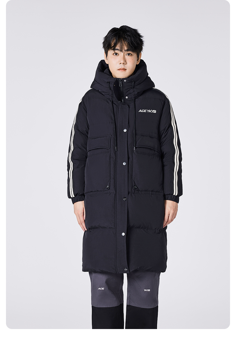 YKYB黄子韬长款羽绒服连帽潮流百搭撞色防风防水宽松加厚保暖外套