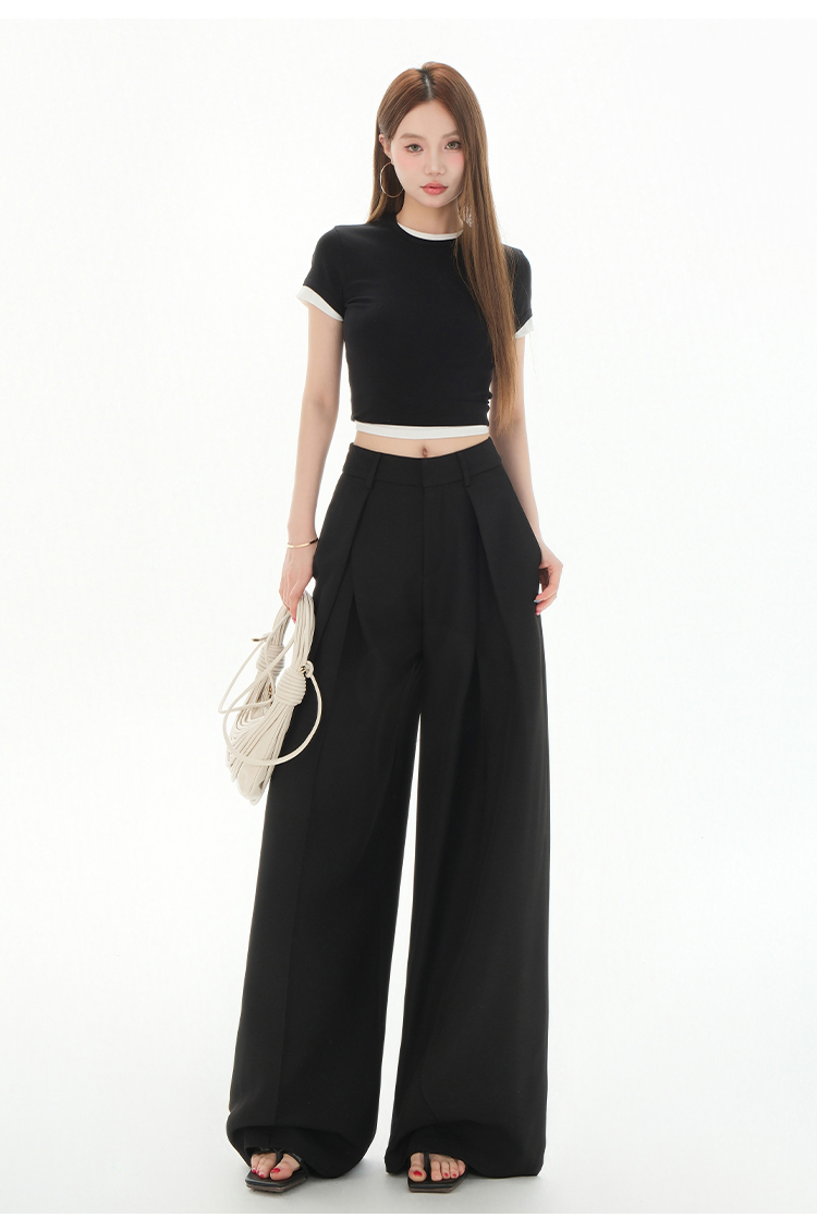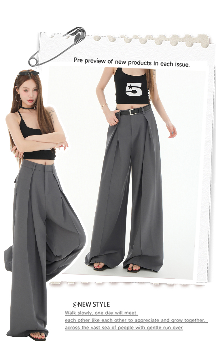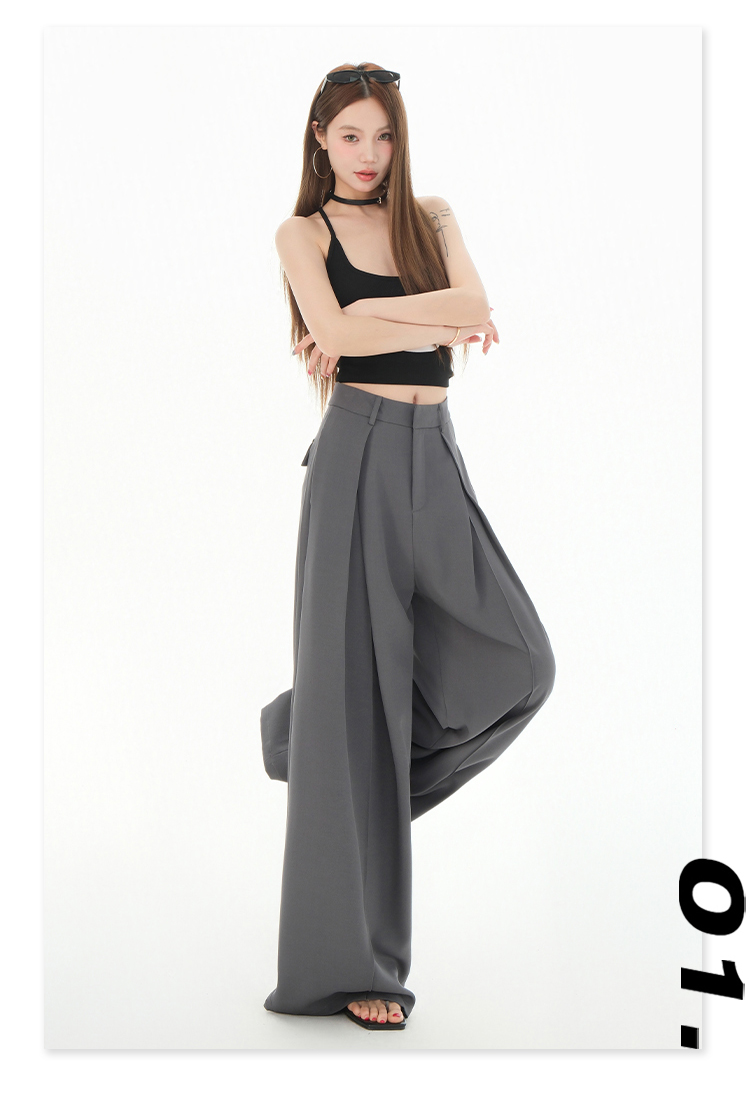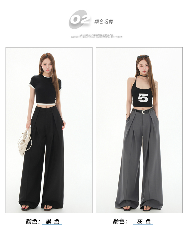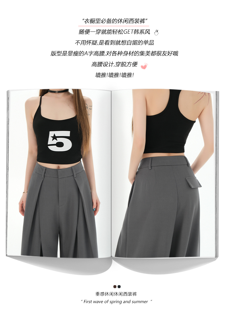 罗蒙女士春夏休闲西裤高腰宽松显瘦阔腿长裤休闲通勤女九分裤