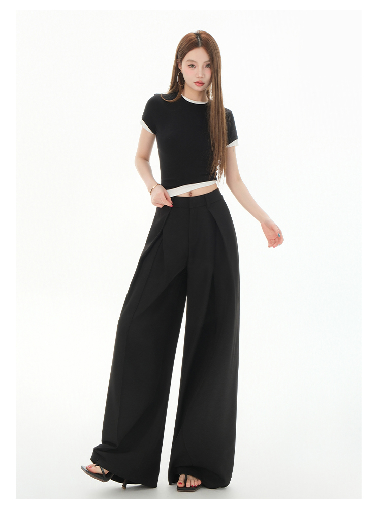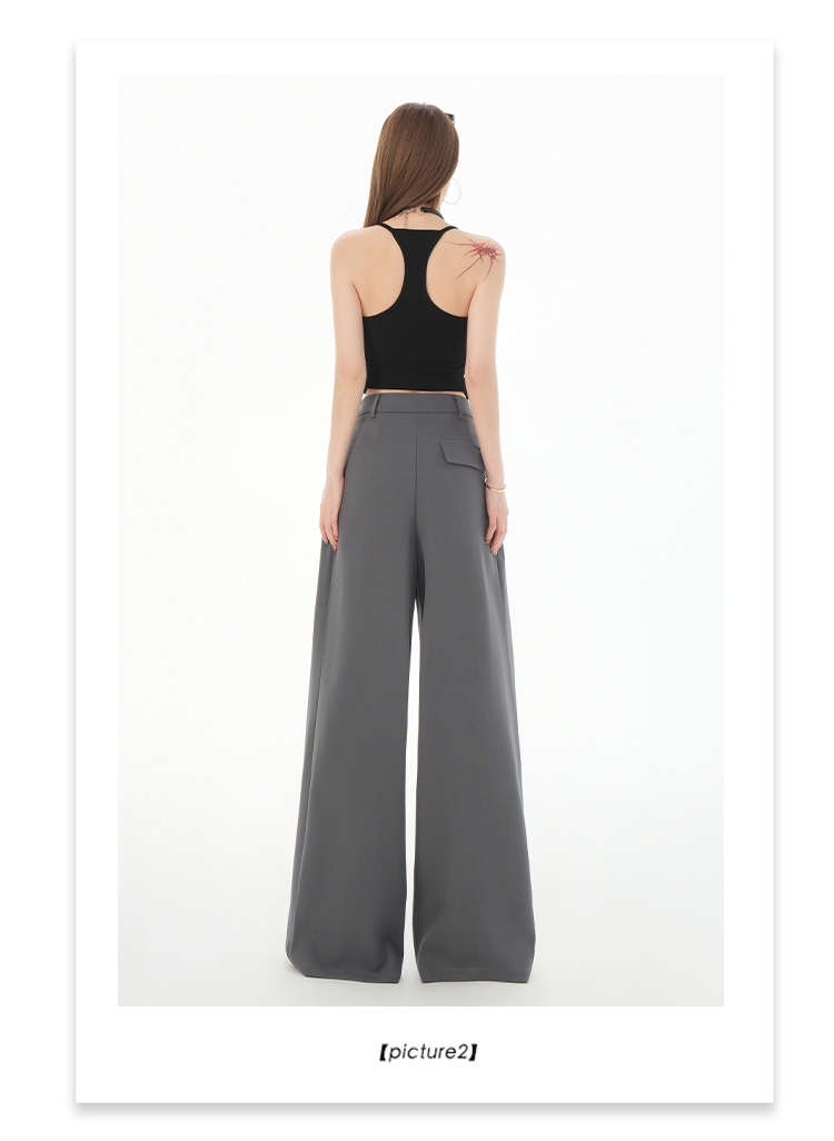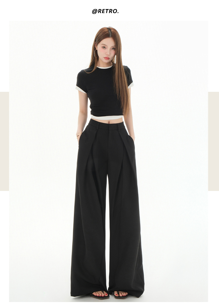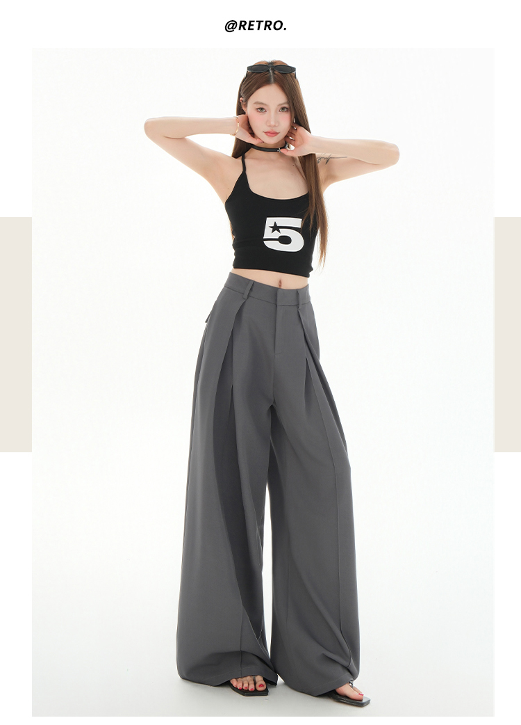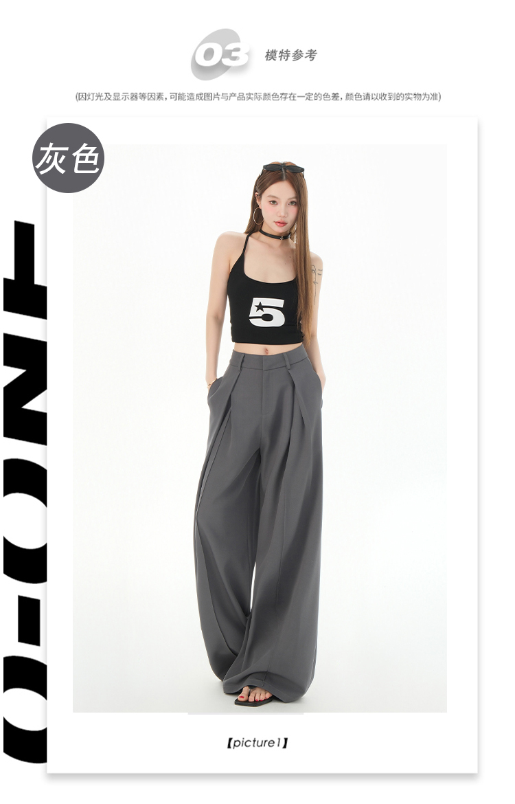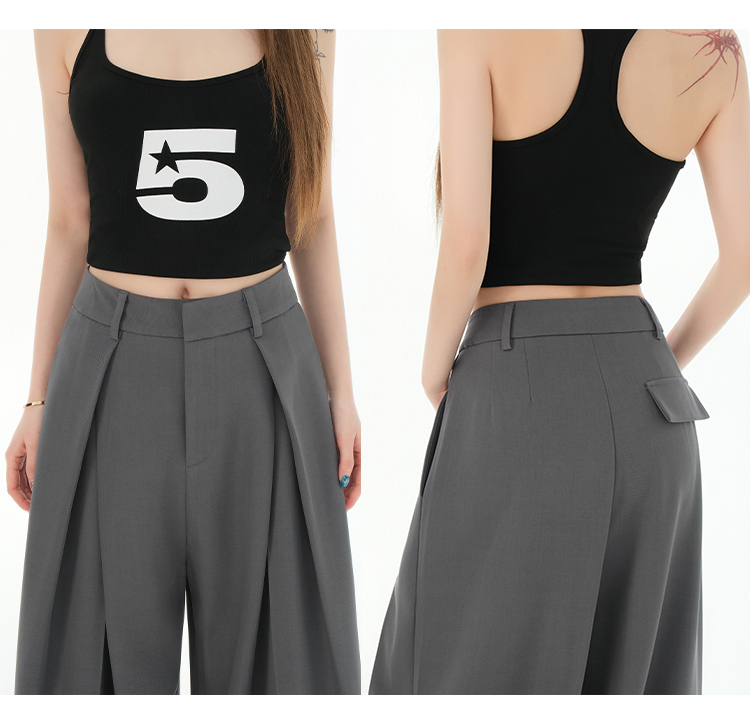 罗蒙女士春夏休闲西裤高腰宽松显瘦阔腿长裤休闲通勤女九分裤