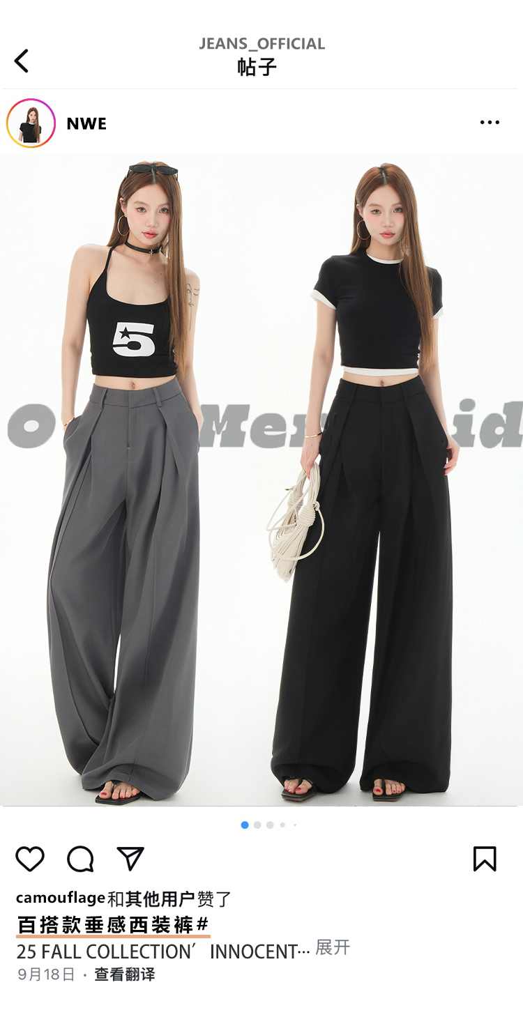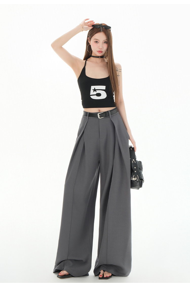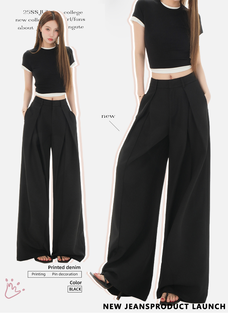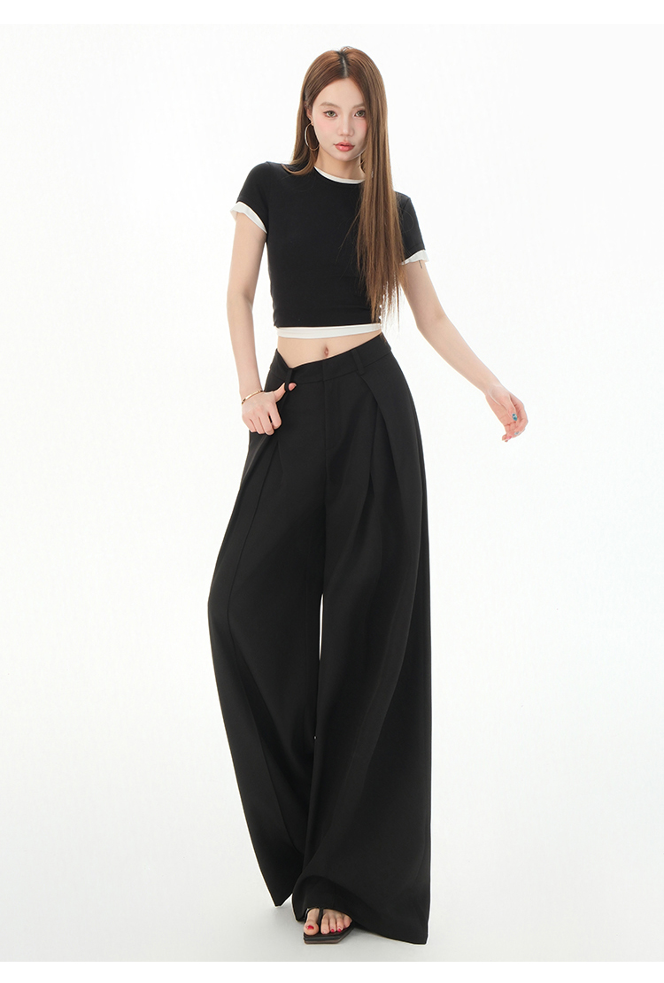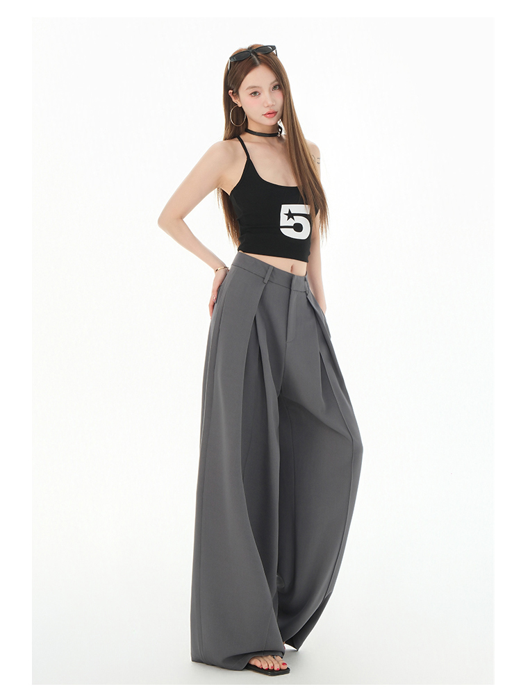 罗蒙女士春夏休闲西裤高腰宽松显瘦阔腿长裤休闲通勤女九分裤