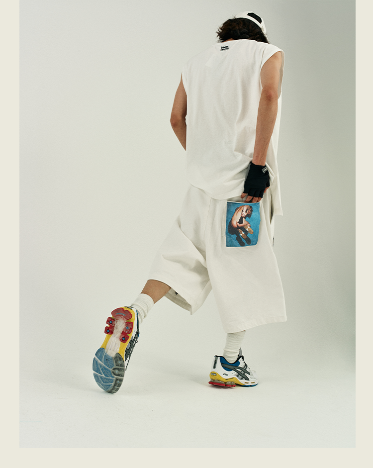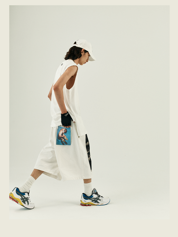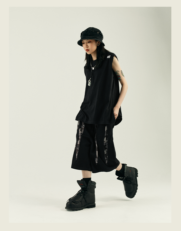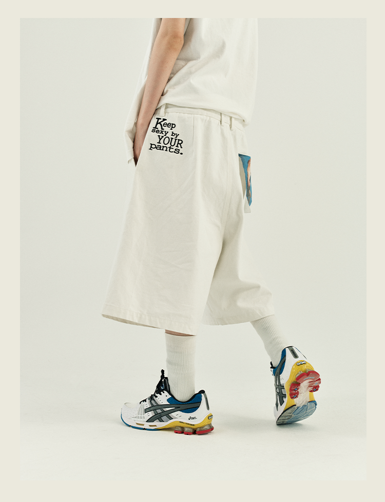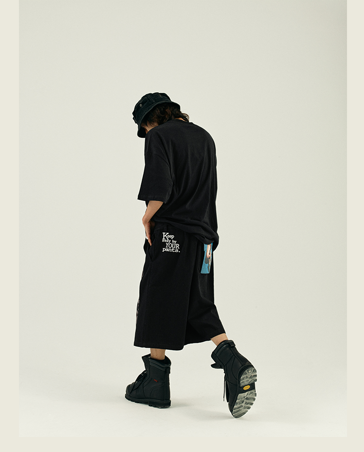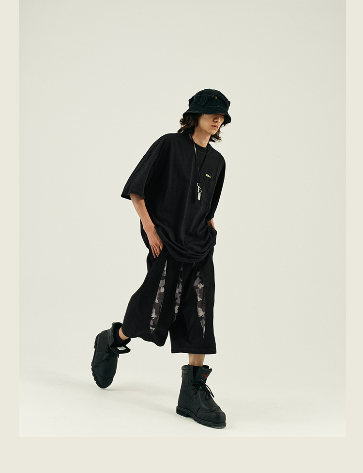 POH 复古美式街头嘻哈五分中裤子宽松百搭印花迷彩网眼牛仔短裤男