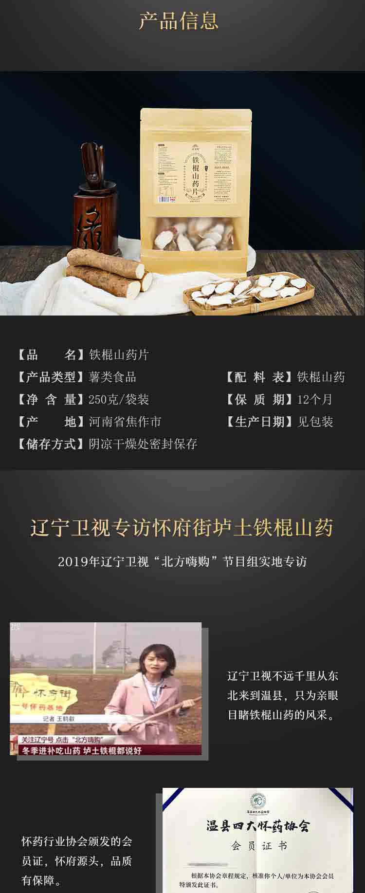 怀府街垆土铁棍山药原切片(250克*1袋)