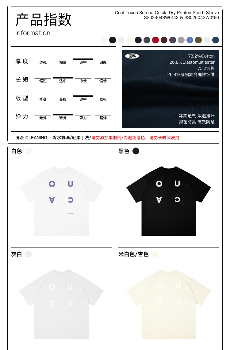 0neup凉感索罗娜防晒速干 印花短袖T恤
