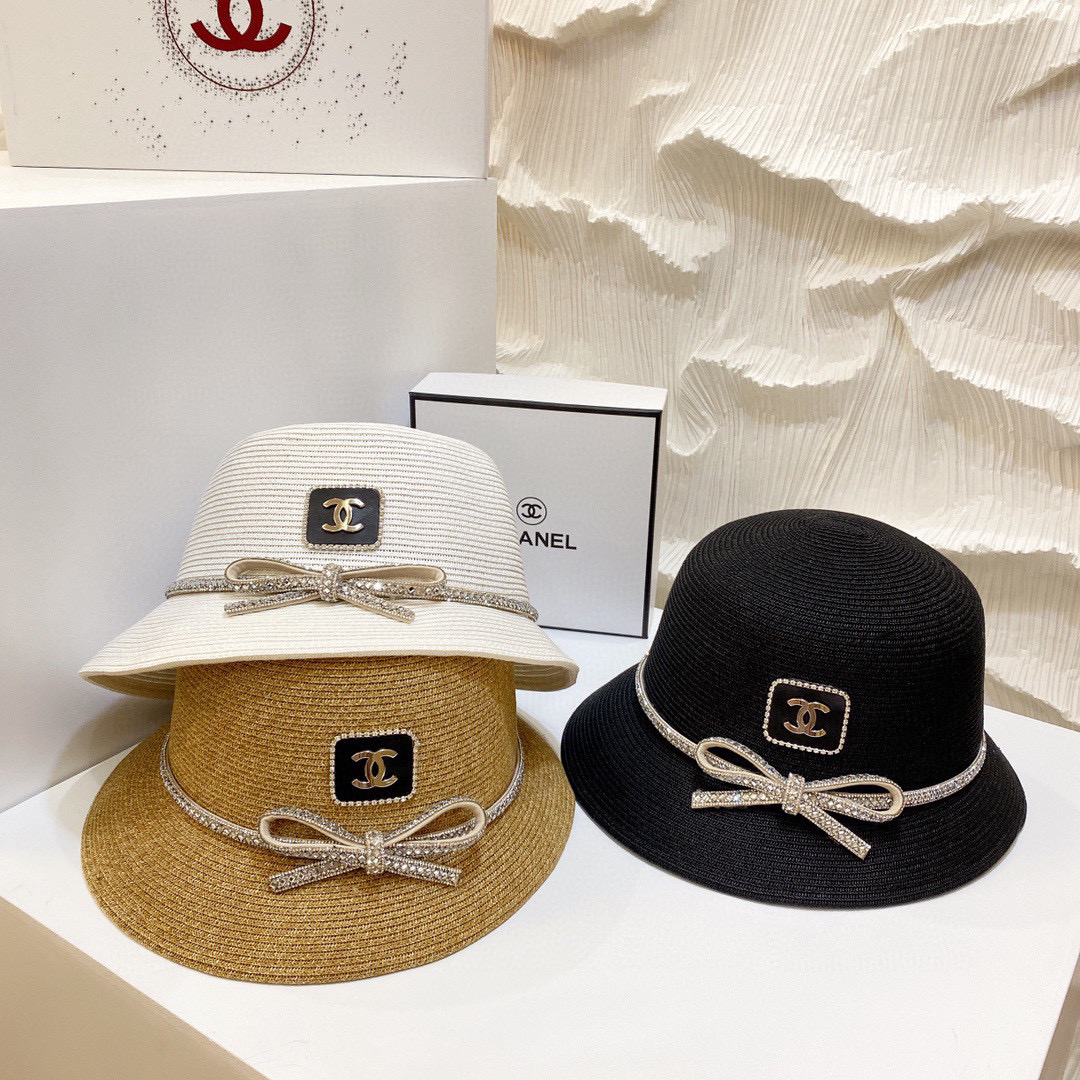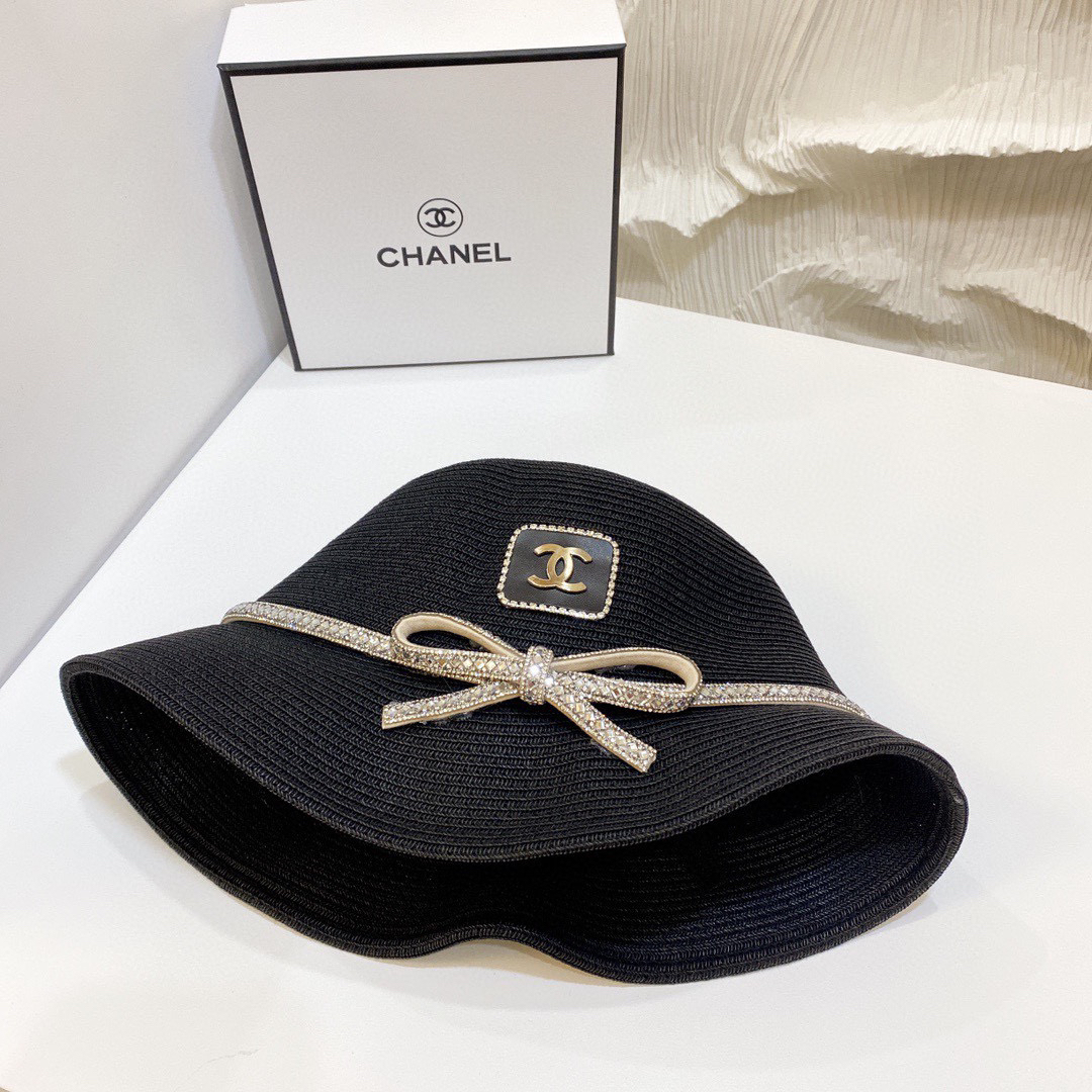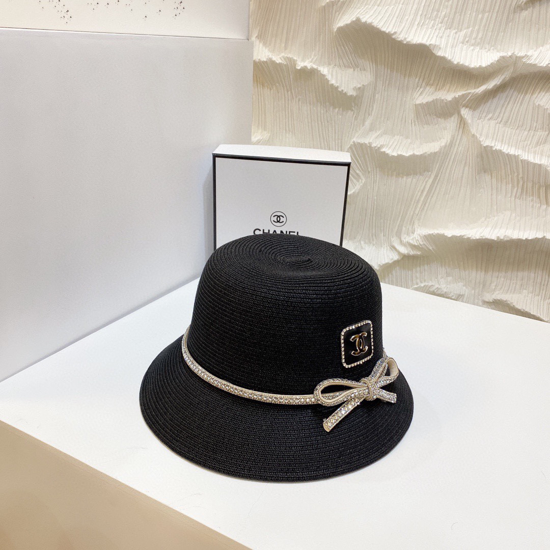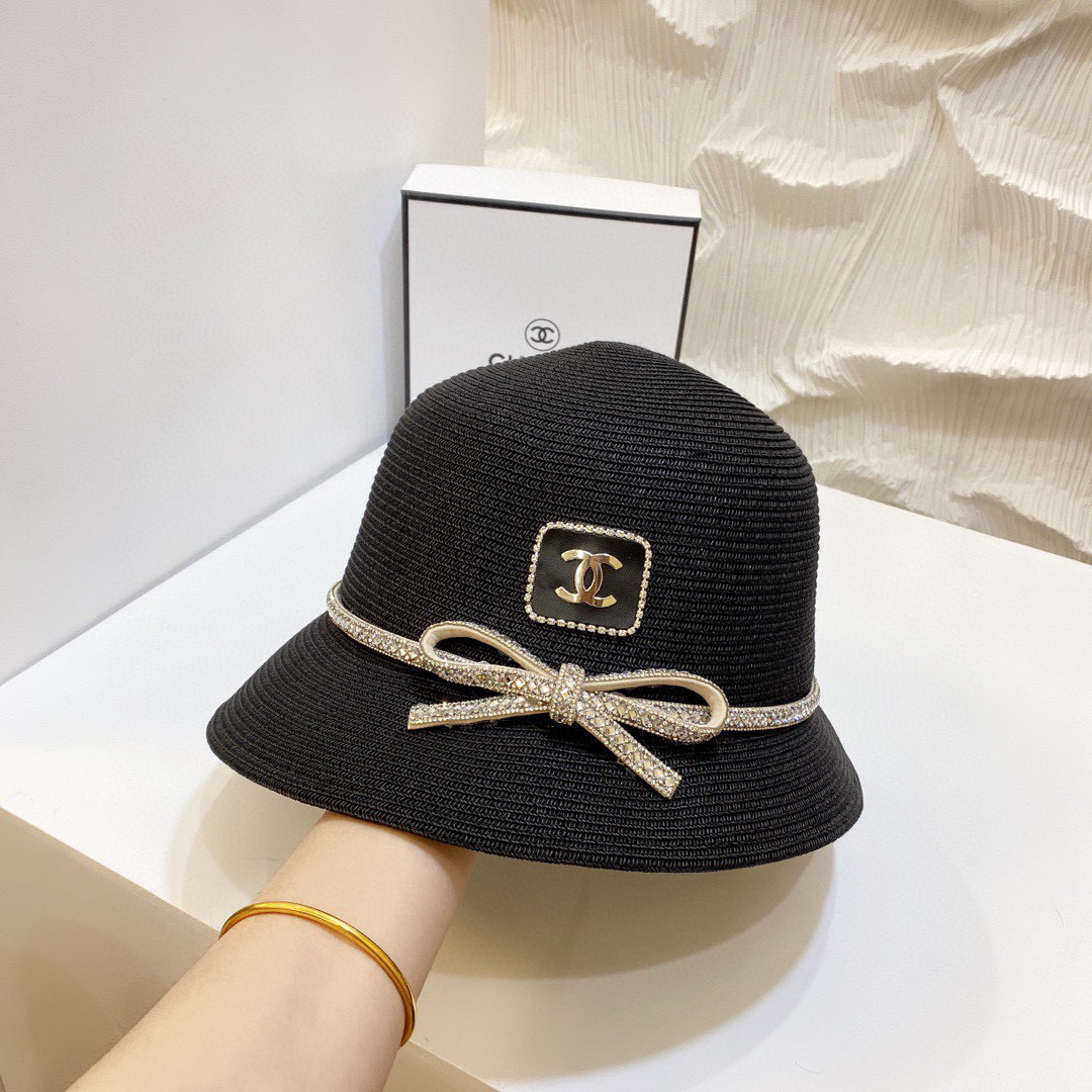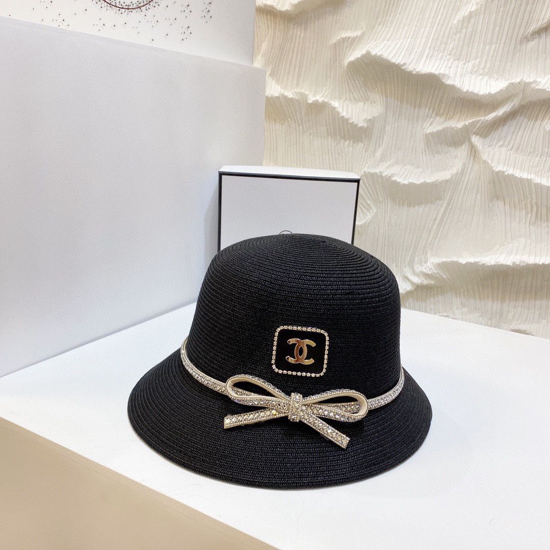 168包邮配防尘袋【CHANEL香奈儿】2021新款柔软水钻蝴蝶结草编草帽礼帽🤩细节控,简约大方,可折叠,百搭单品~出街首选,新款帽型超美腻,新品上架