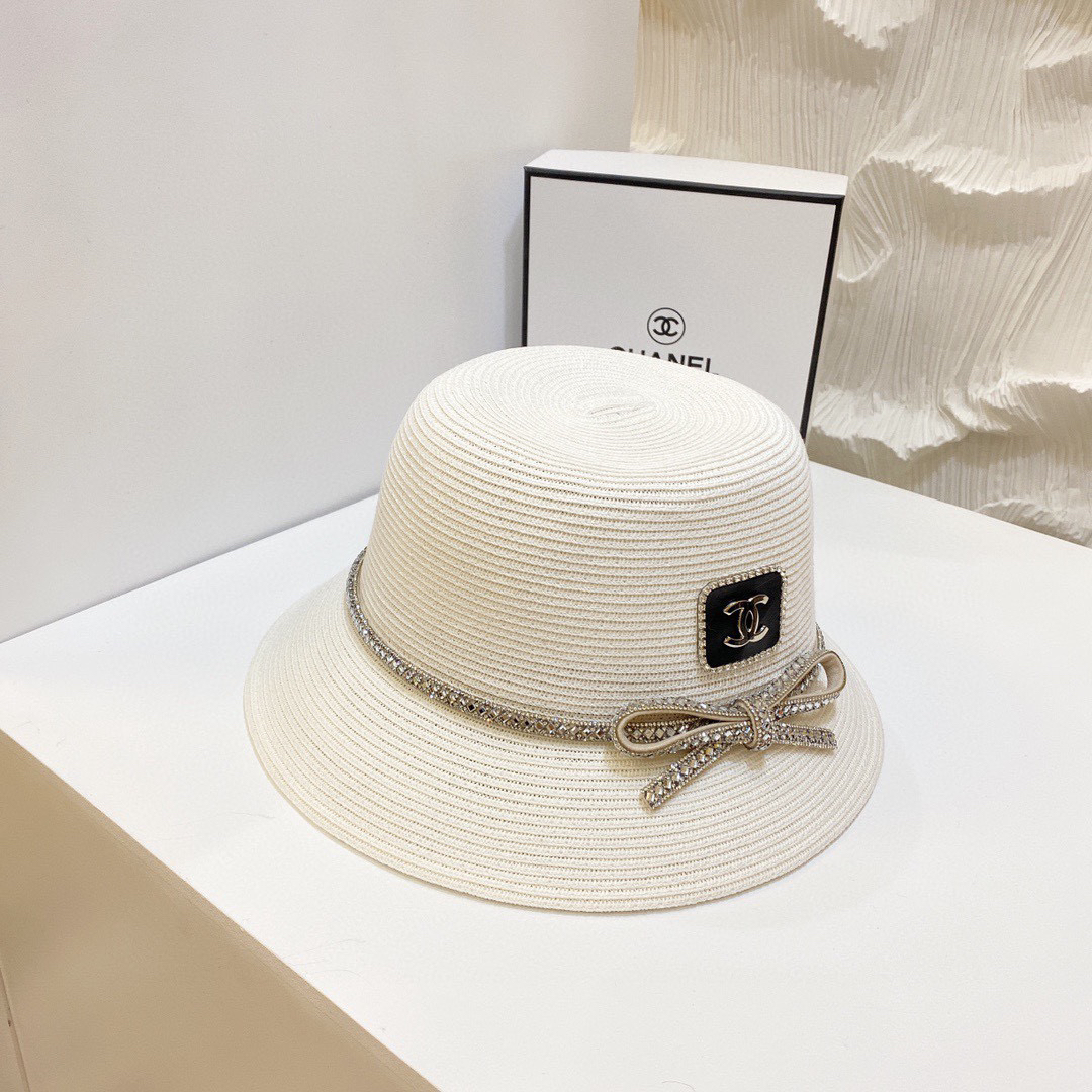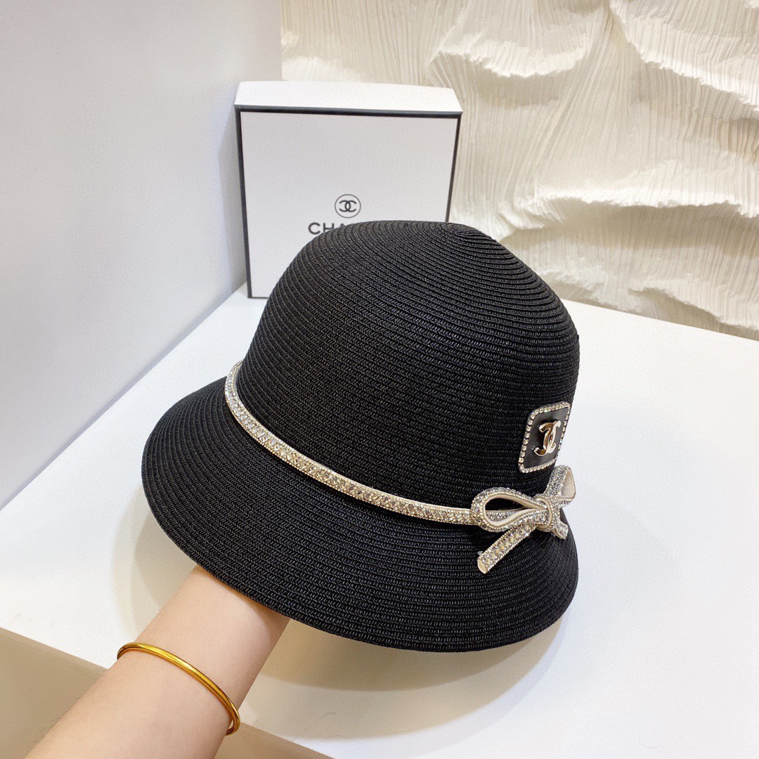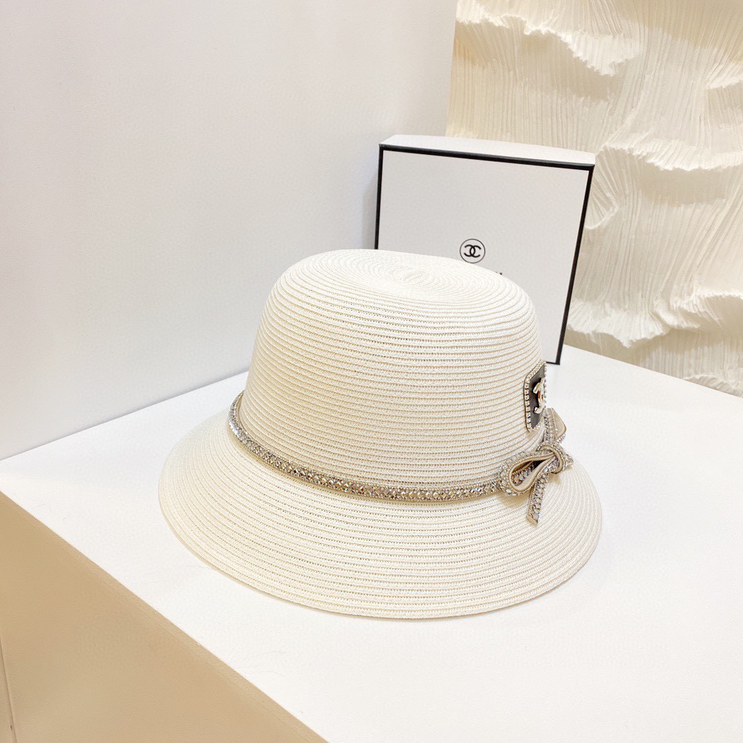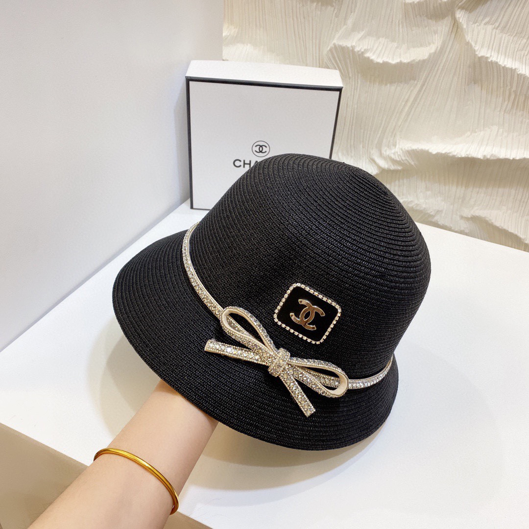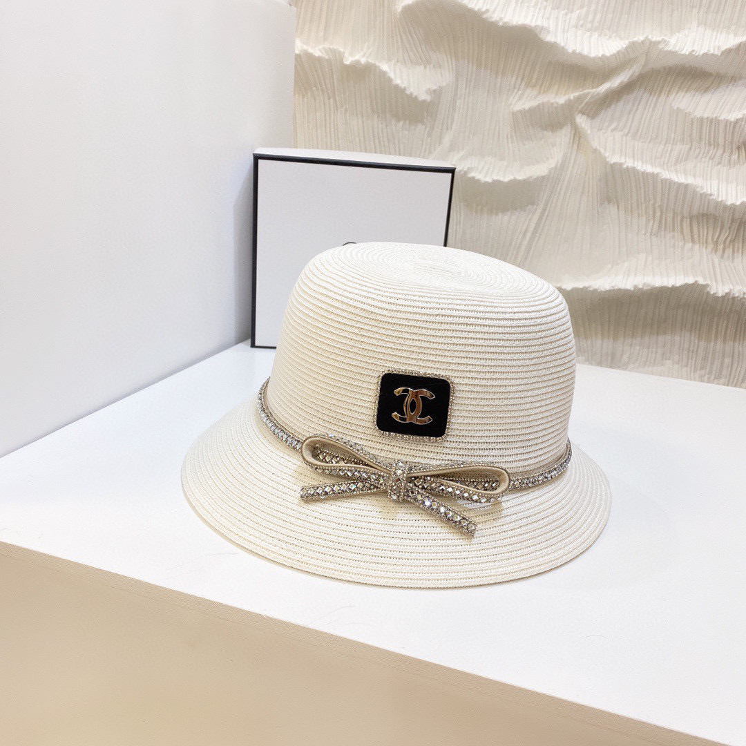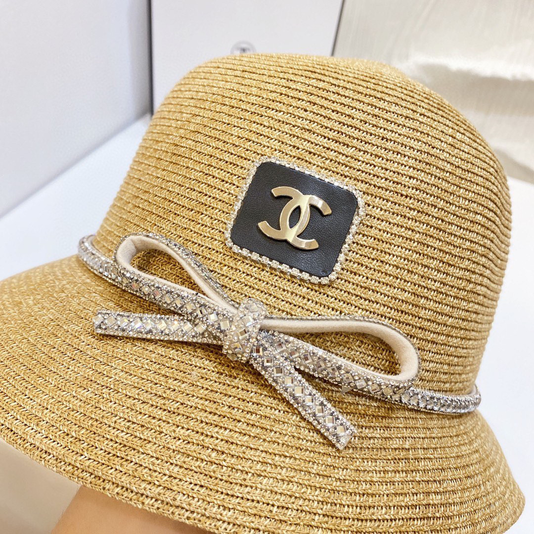 168包邮配防尘袋【CHANEL香奈儿】2021新款柔软水钻蝴蝶结草编草帽礼帽🤩细节控,简约大方,可折叠,百搭单品~出街首选,新款帽型超美腻,新品上架