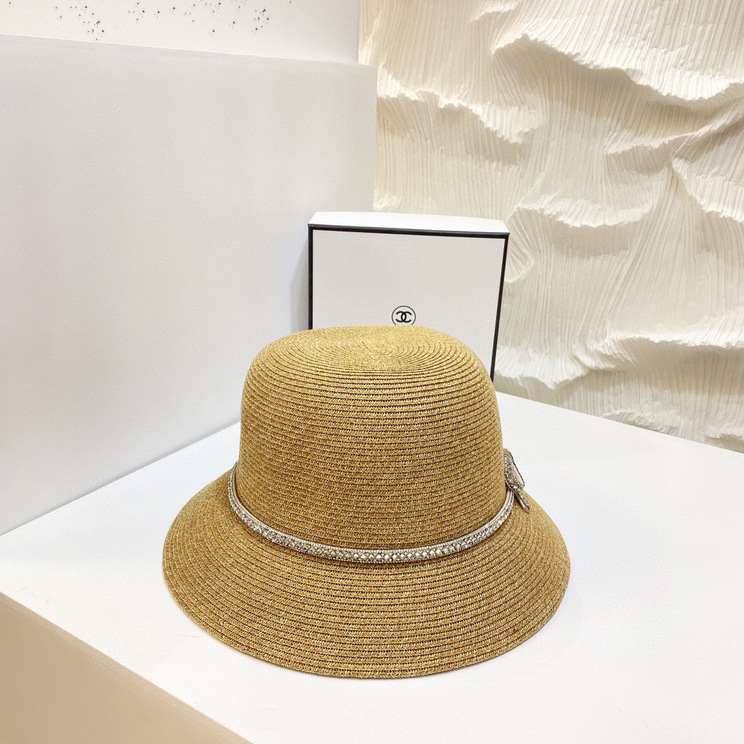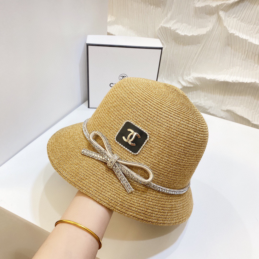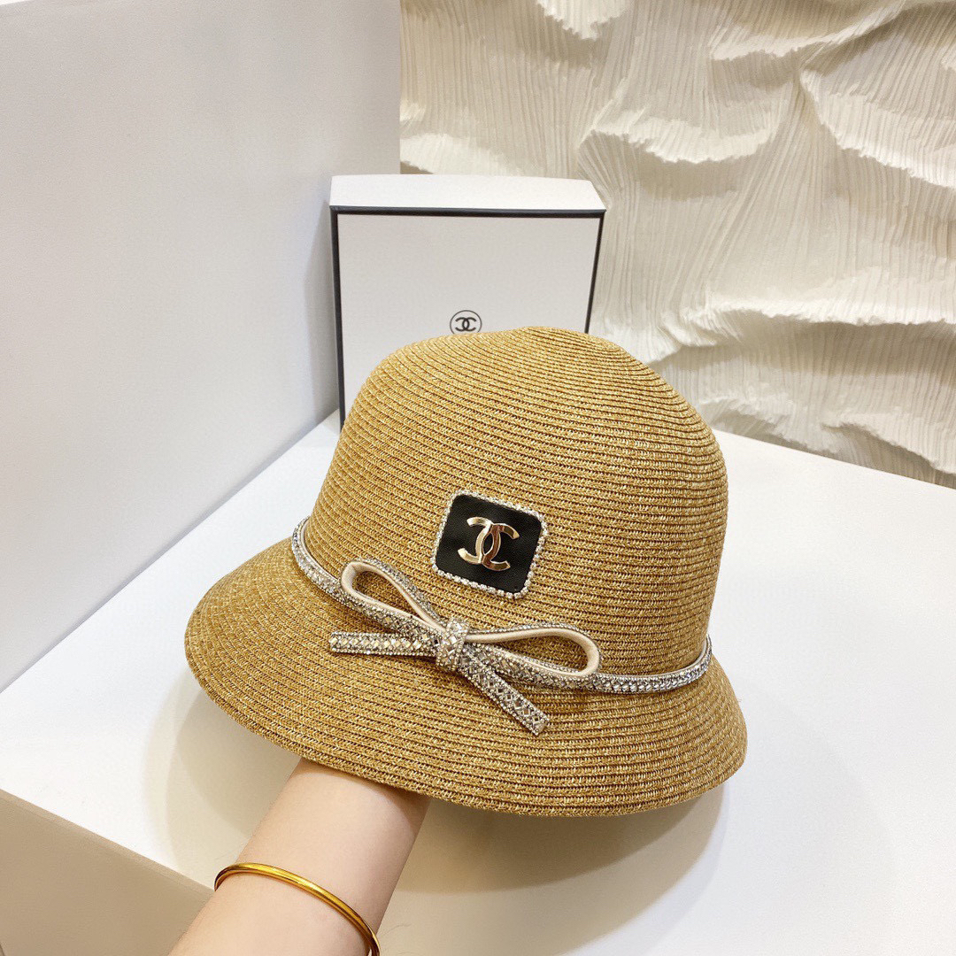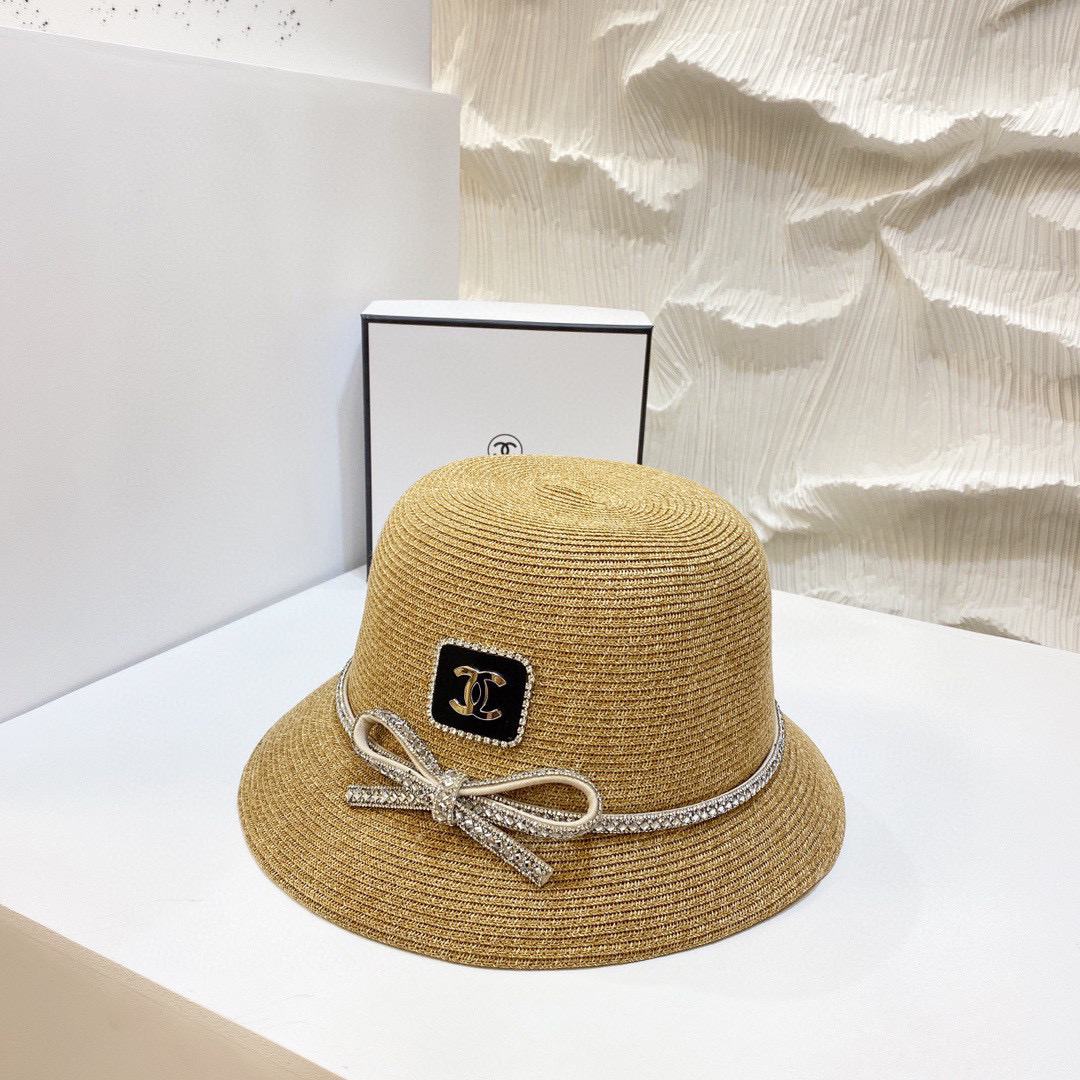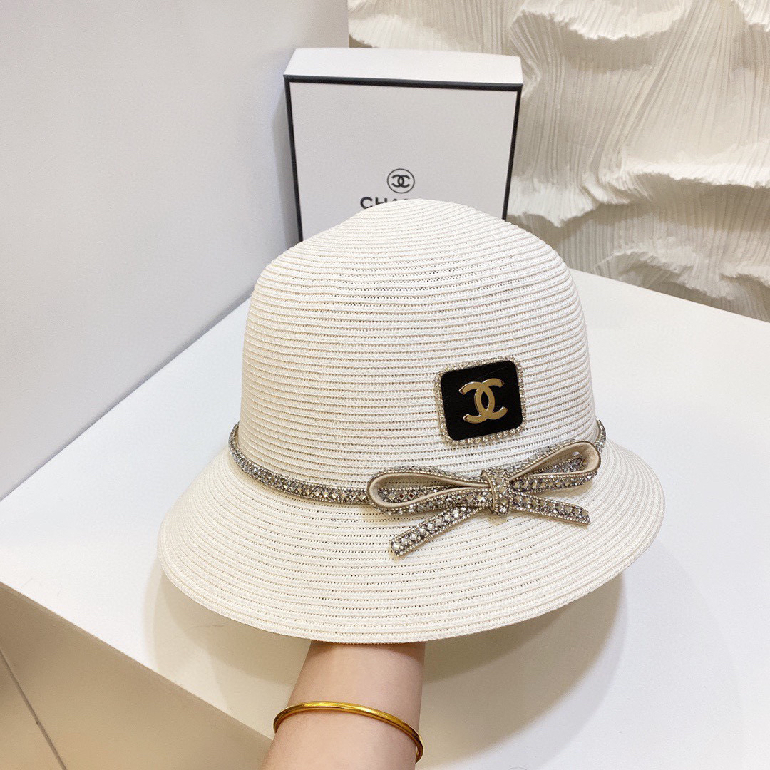 168包邮配防尘袋【CHANEL香奈儿】2021新款柔软水钻蝴蝶结草编草帽礼帽🤩细节控,简约大方,可折叠,百搭单品~出街首选,新款帽型超美腻,新品上架