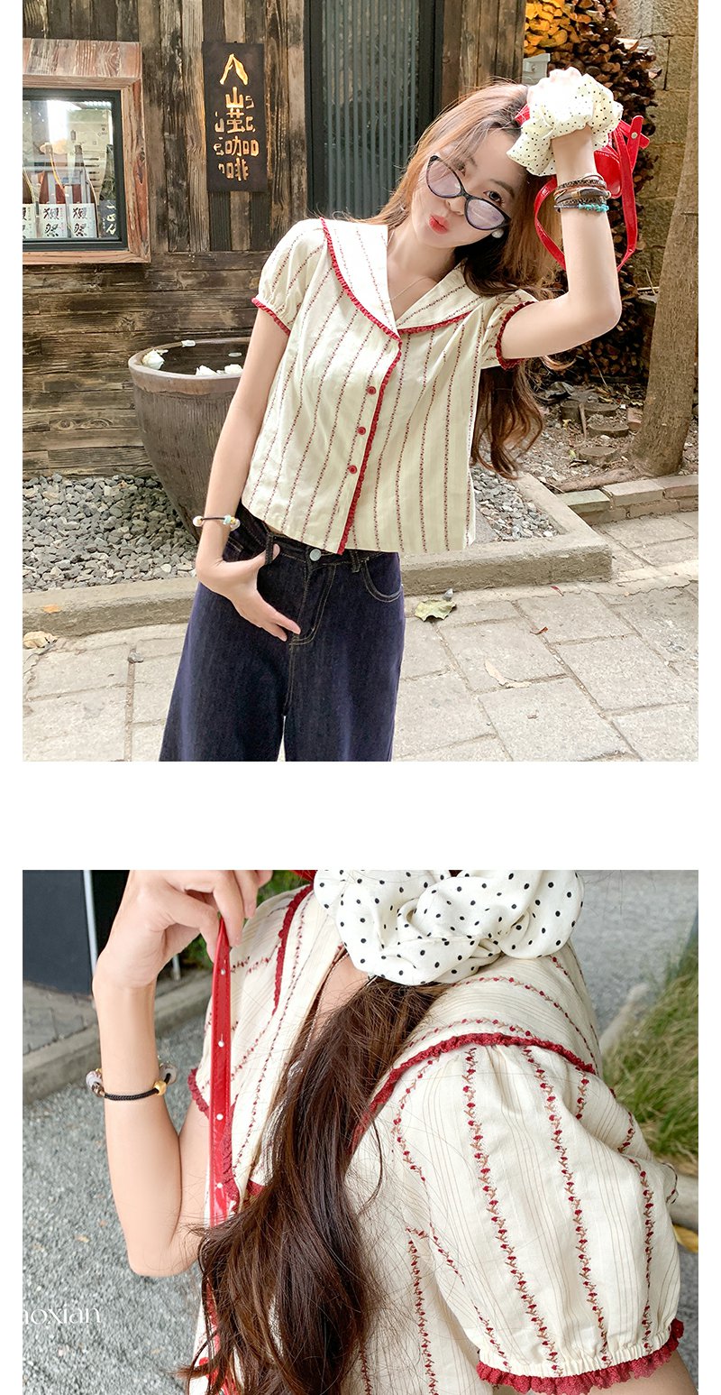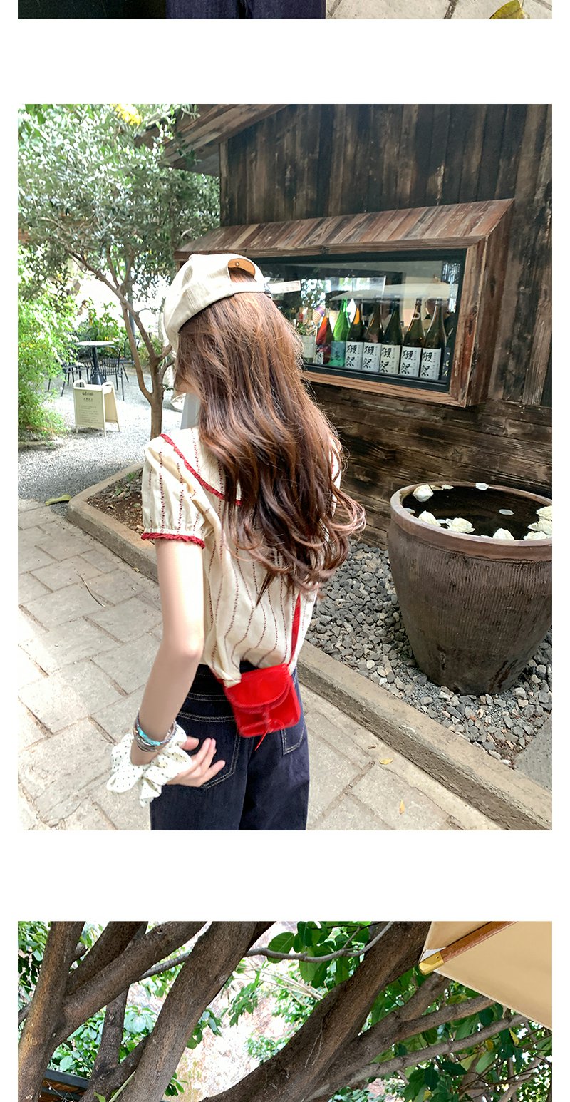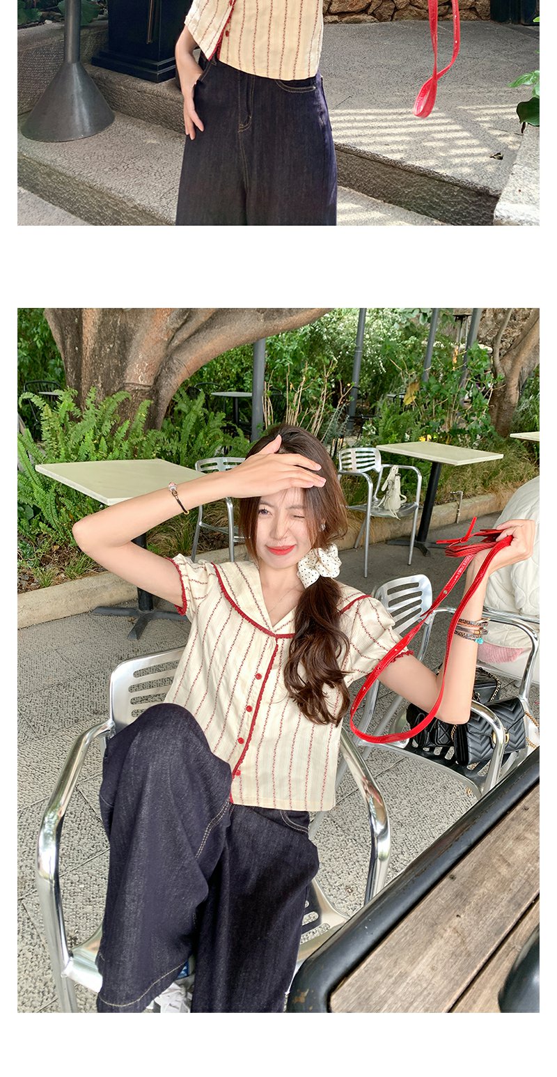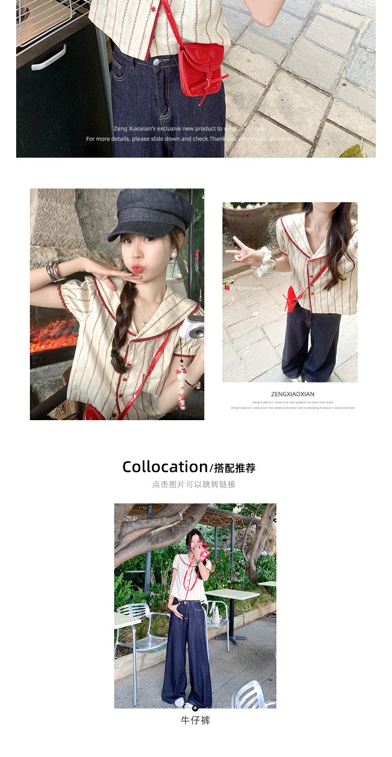 <曾小咸推荐>现货秒杀!翻领红色边泡泡袖短款衬衫 日常179.99 立减90 秒杀89.99!